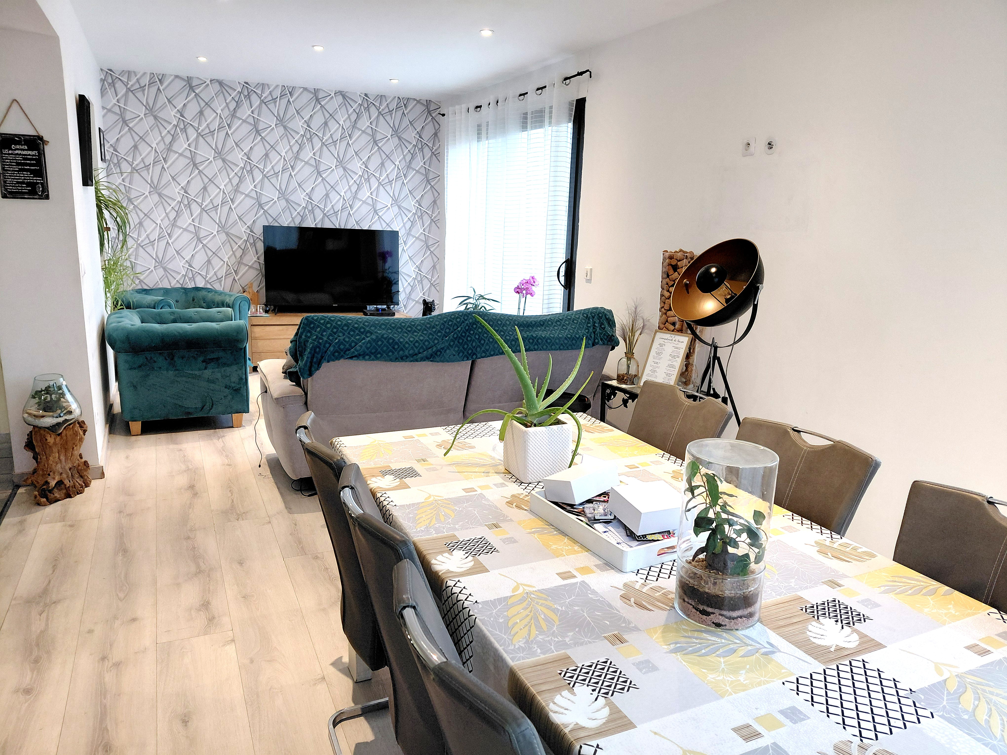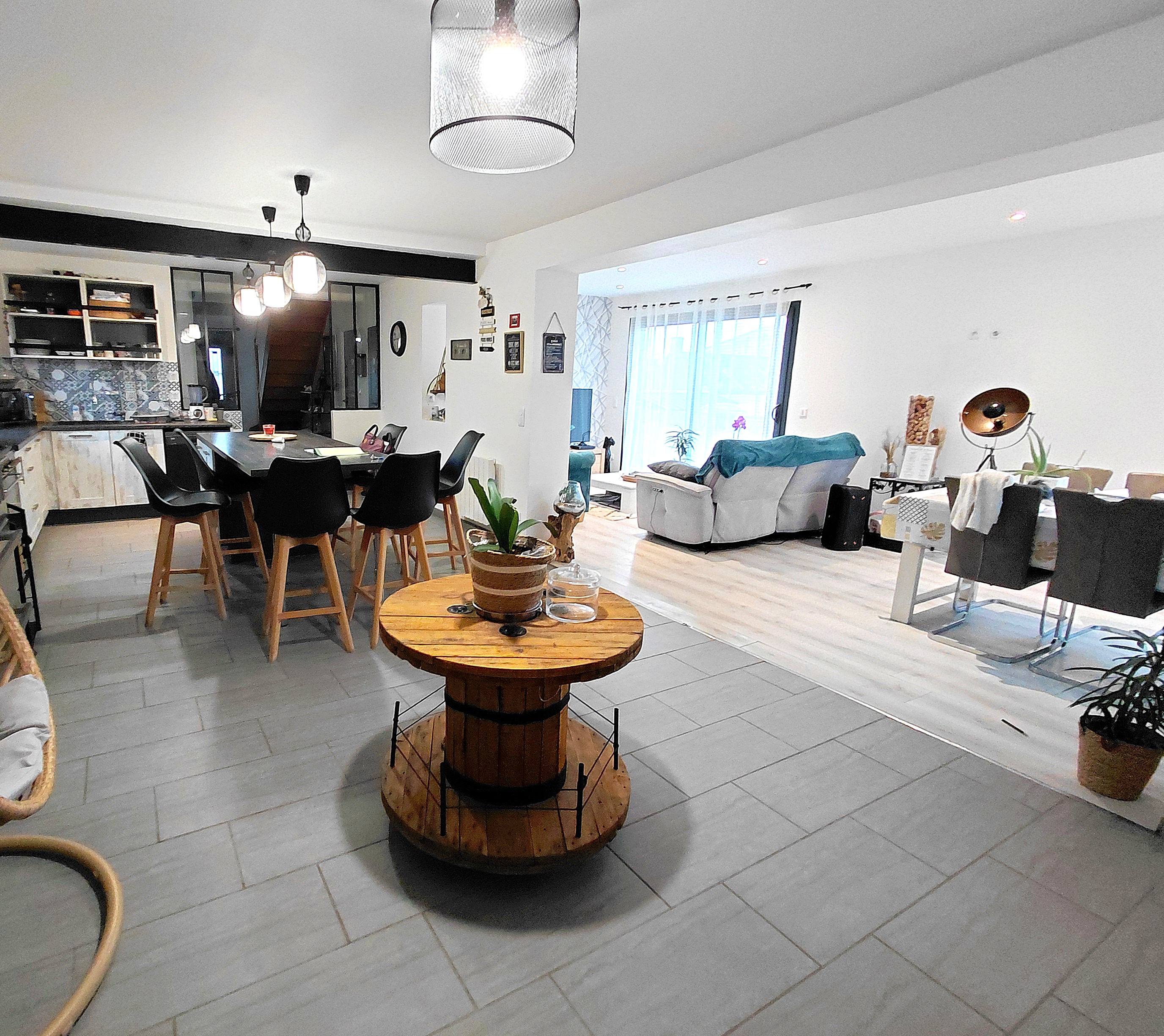 Une entrée, un grand séjour avec cuisine ouverte équipée et aménagée de plus de 50m²,