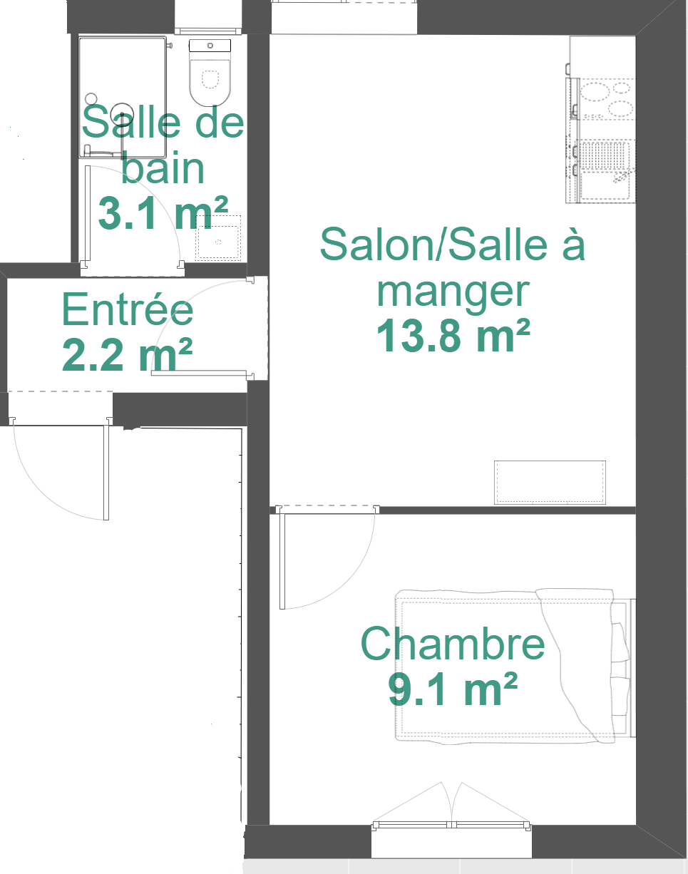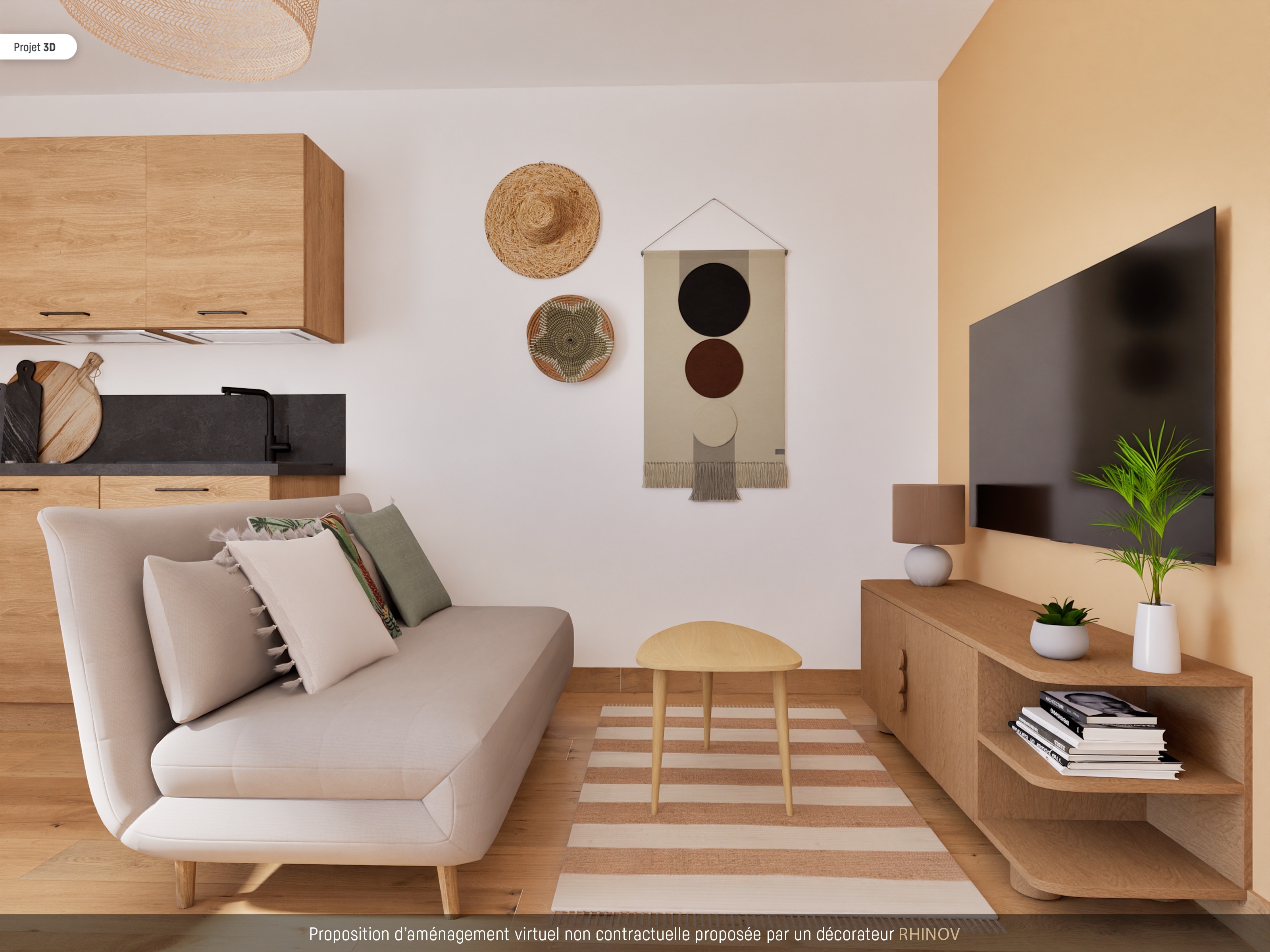 cuisine aménagée ouverte, une salle d'eau avec wc et une chambre.