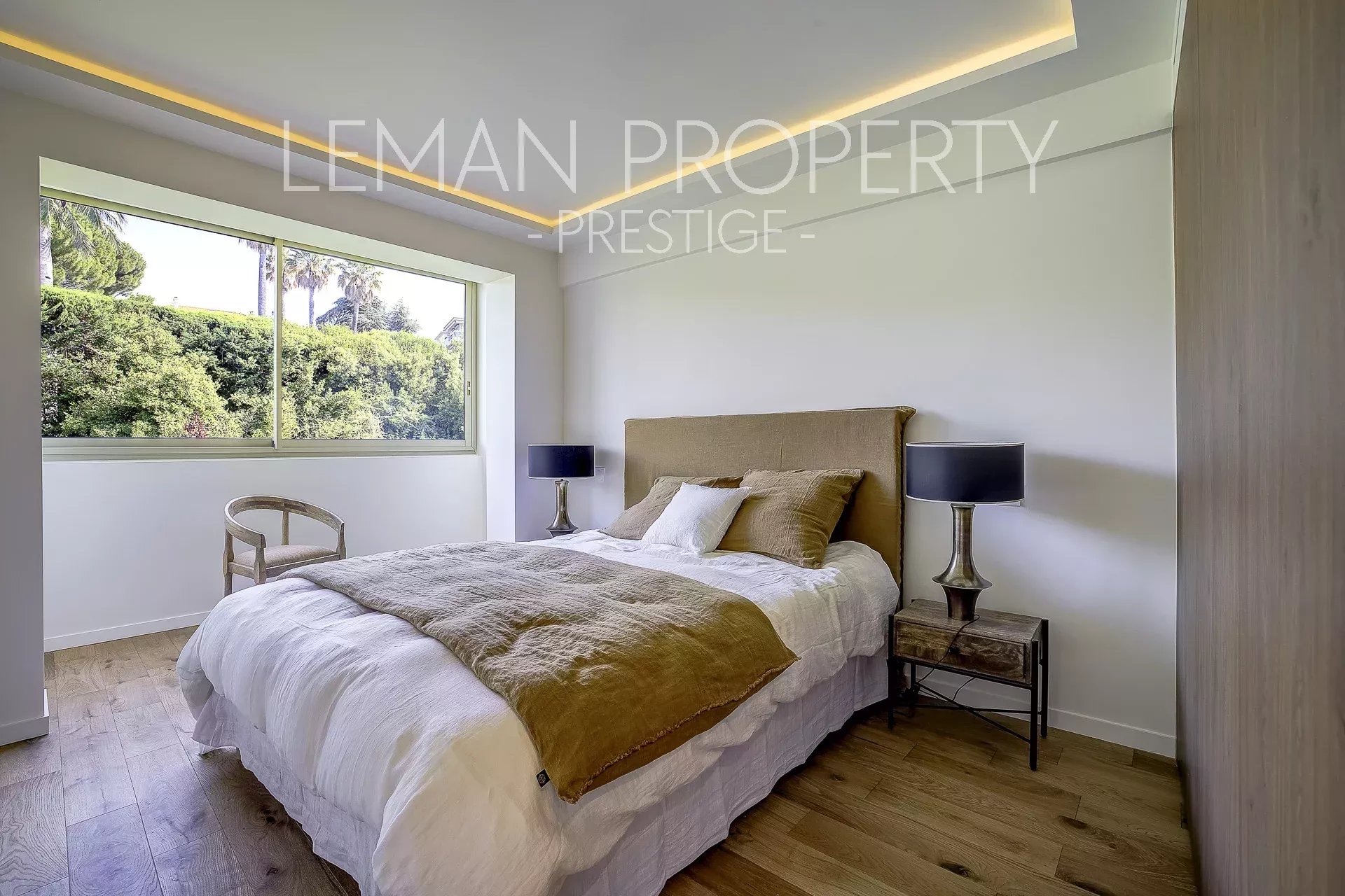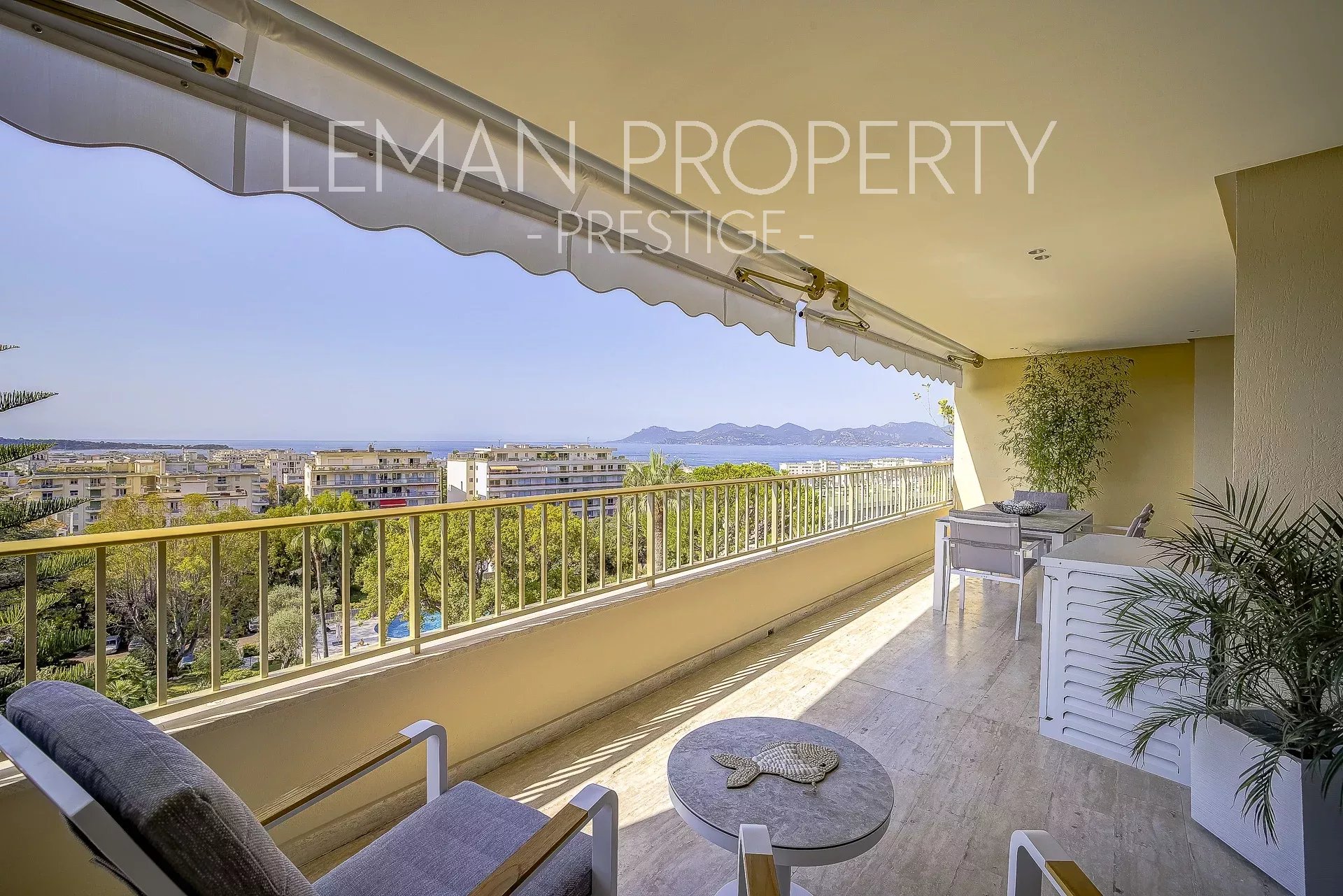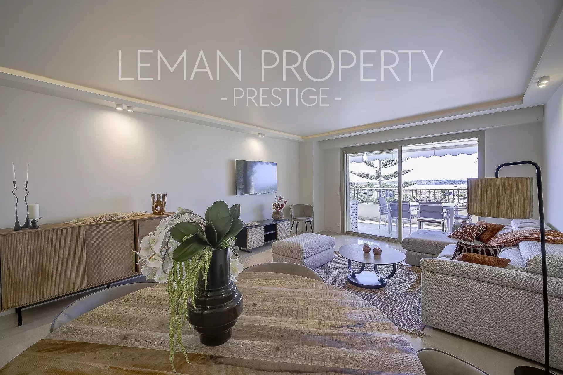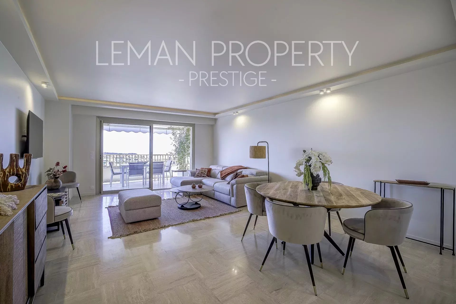 Dans l’une des résidences les plus prestigieuses de Cannes, "Le Rocher Saint- Georges" avec jardin et piscine, au 5ème et avant dernier étage, splendide 4 pièces totalement rénové, bénéficiant d'une large terrasse avec vue mer panoramique. Le bien se compose d’une entrée avec WC invités, lumineux séjour, chambre maître côté mer avec salle de douche/wc, dressing, seconde chambre avec une salle de bain/wc et dernière chambre avec salle de douche/wc, belle cuisine indépendante entièrement aménagée et équipée Un garage fermé et une cave complètent cet ensemble. Résidence fermée et gardiennée Charges annuelles courantes : 7200€/an soit 600€/mois. Pas de procédure en cours - Les honoraires sont à la charge des vendeurs