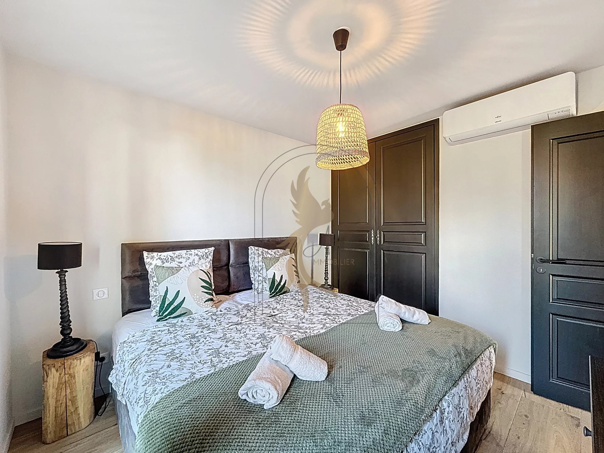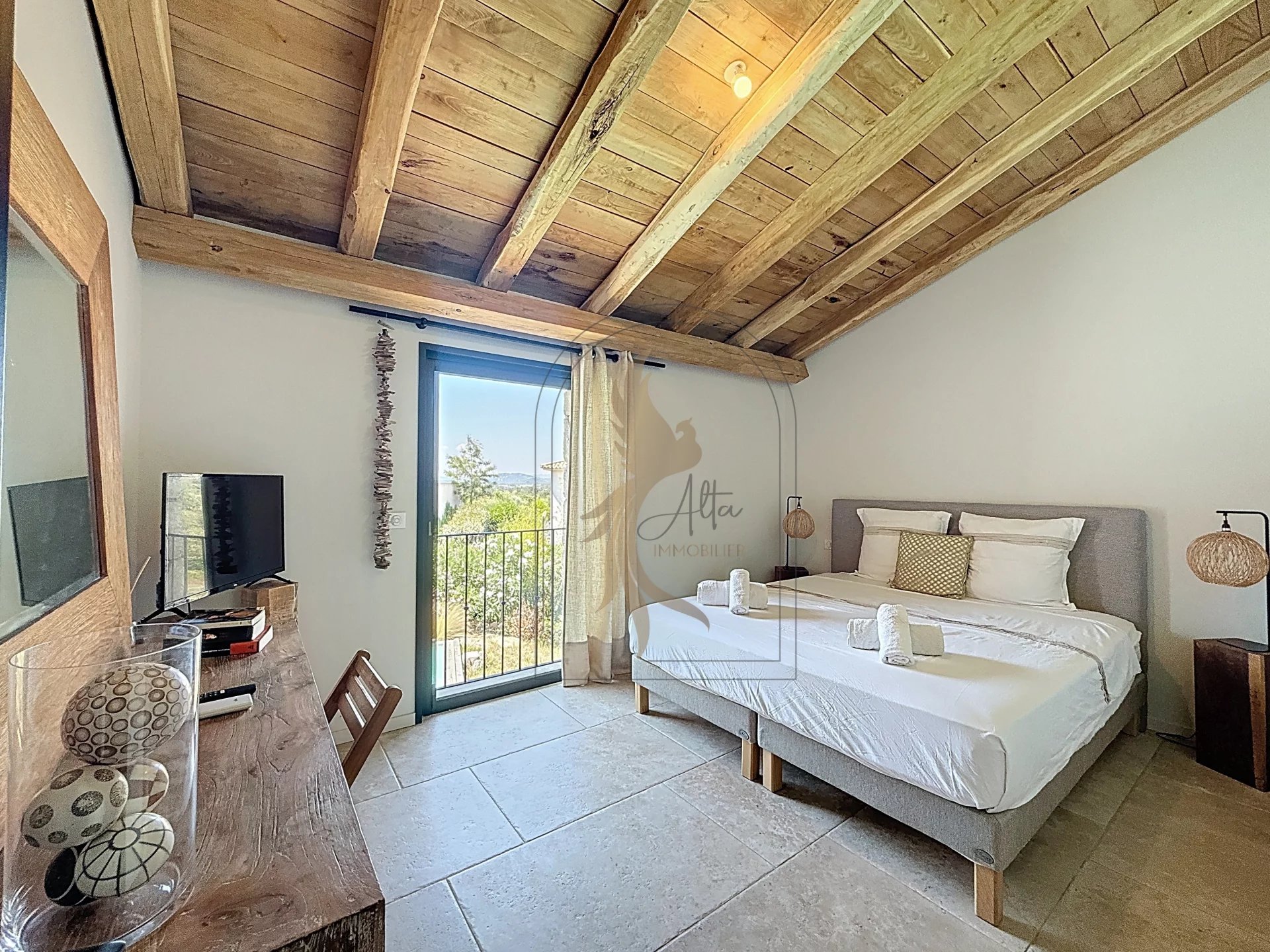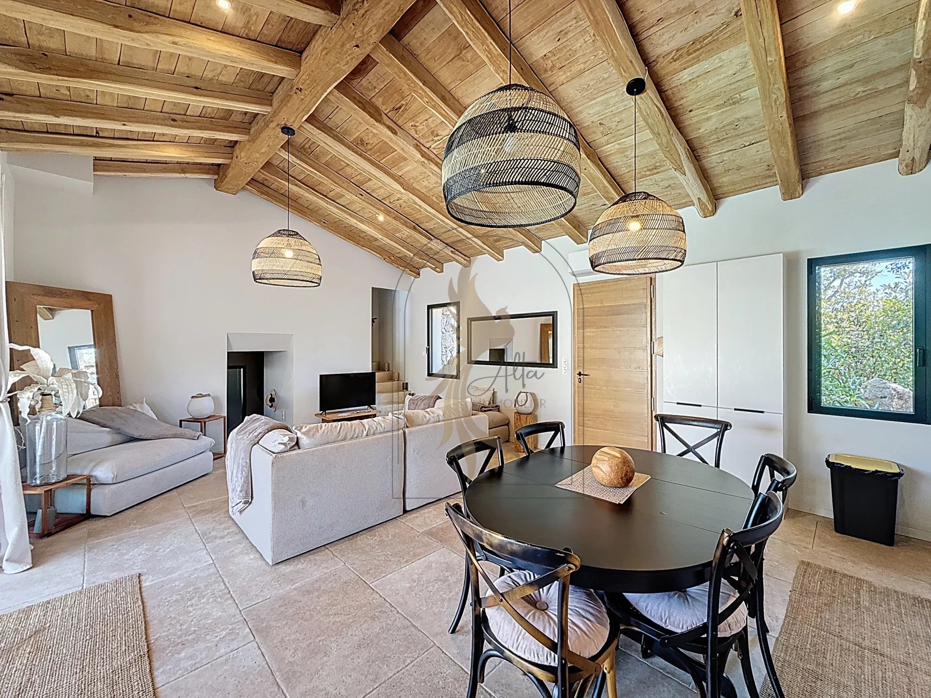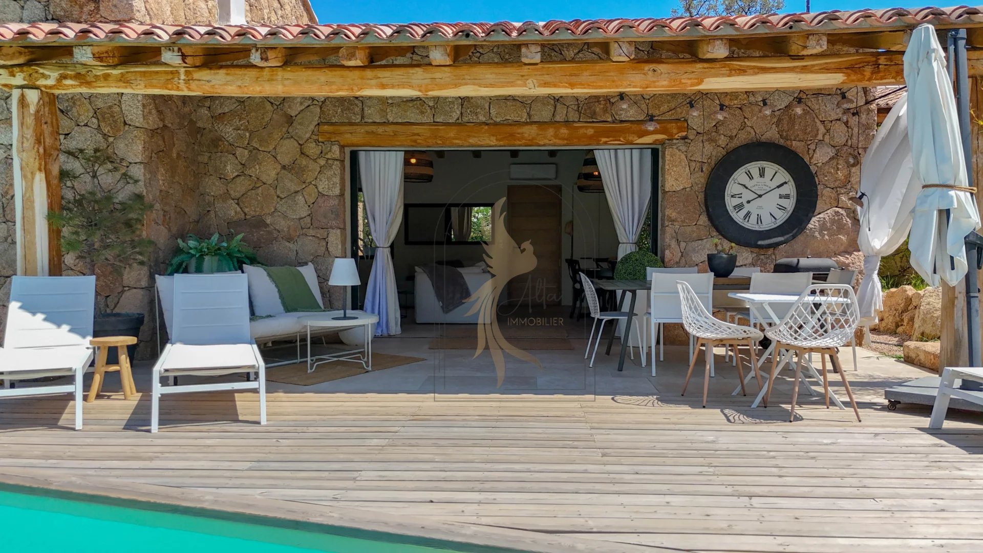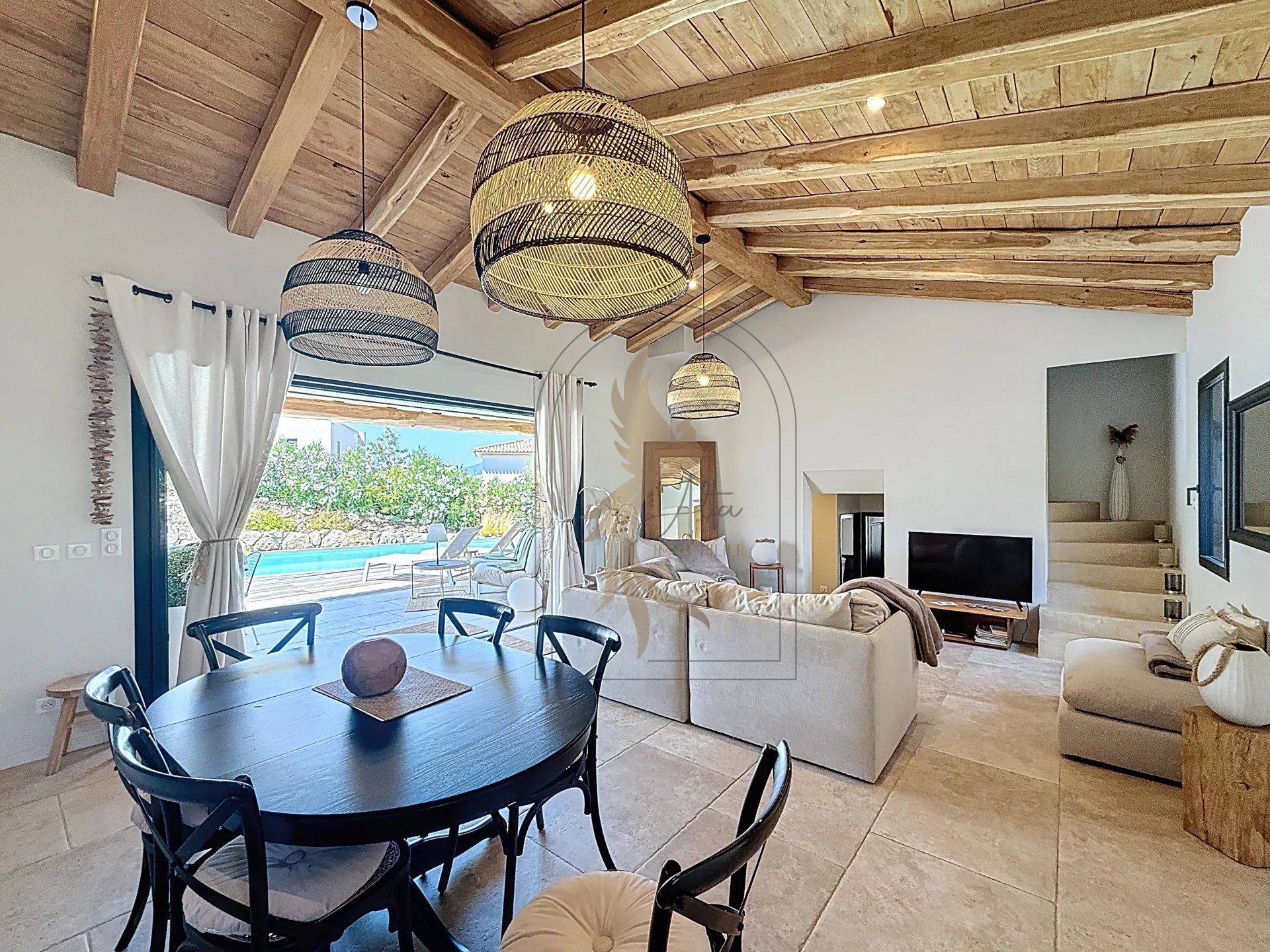 À cinq minutes de la plage du Cabanon Bleu, au sein d’un clos résidentiel de prestige composé de huit habitations de style bergerie en pierre de taille, cette villa offre un cadre de vie exceptionnel. Les prestations haut de gamme et la qualité des matériaux confèrent à ce bien un charme et un confort inimitables. Tout a été pensé avec soin, dans les moindres détails, afin de vous offrir une villégiature de rêve. La villa se compose d’un vaste salon-séjour baigné de lumière, avec poutres apparentes et charpente cathédrale, ouvert sur une cuisine entièrement équipée. De grandes baies vitrées à galandage prolongent l’espace de vie vers une belle terrasse semi-couverte et un jardin arboré. Le niveau inférieur accueille deux chambres lumineuses, une salle d’eau commune et un WC séparé. À l’étage, la suite parentale dispose d’un dressing, d’un WC indépendant et d’une salle de bains. En rez-de-jardin, une buanderie et une pièce de 22 m² offrent un espace supplémentaire pouvant servir de bureau, de salle de jeux ou de dortoir. Côté extérieur, vous profiterez d’une piscine de 7 x 3 mètres, entourée d’une terrasse en ipé de plus de 30 m², ainsi que d’une terrasse semi-couverte de 21 m². Le jardin, aménagé avec goût, est soigneusement planté et arboré. Deux places de stationnement extérieures complètent ce magnifique pied-à-terre de charme.