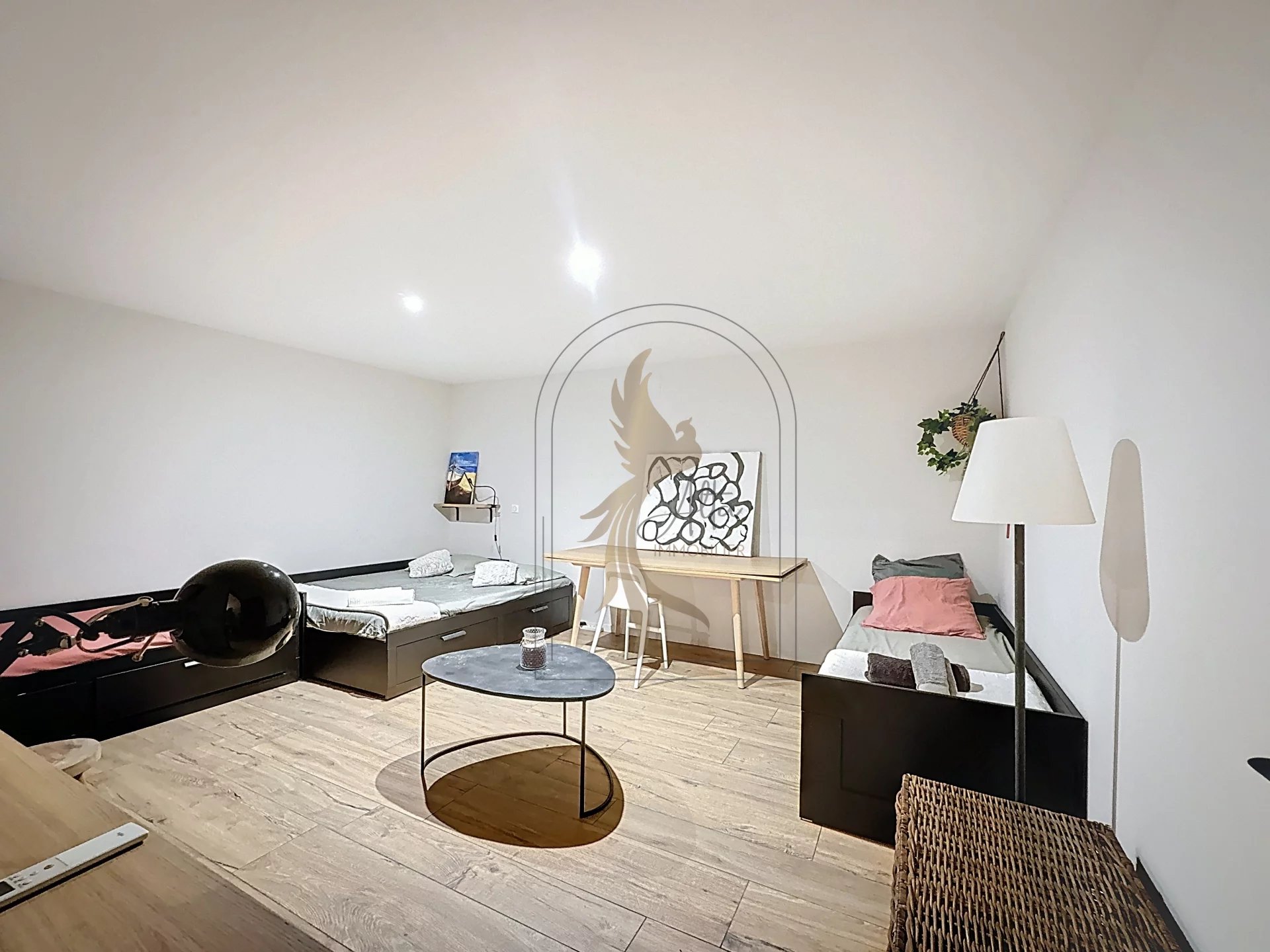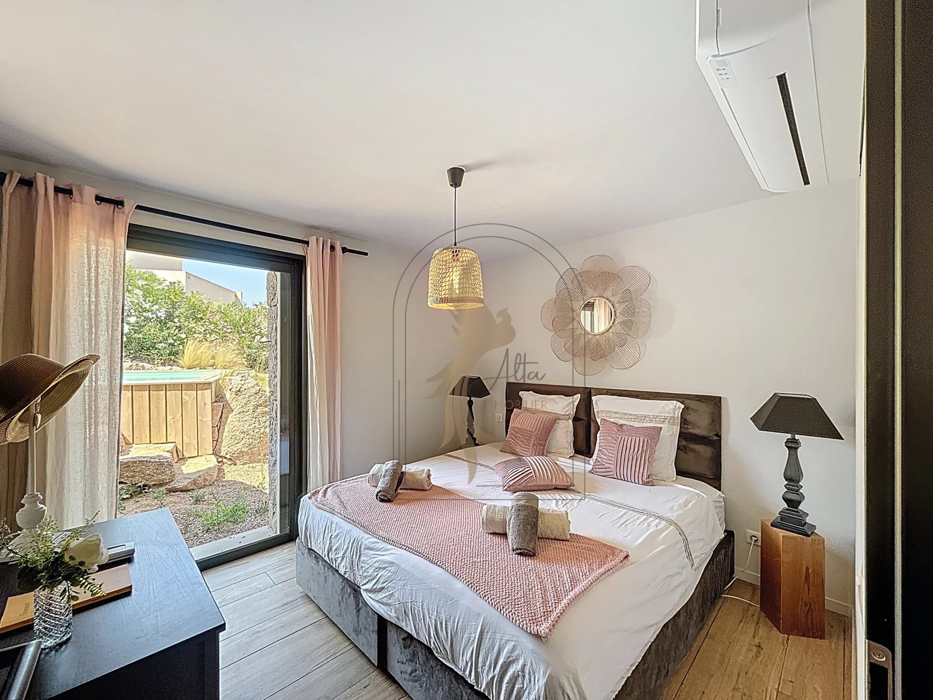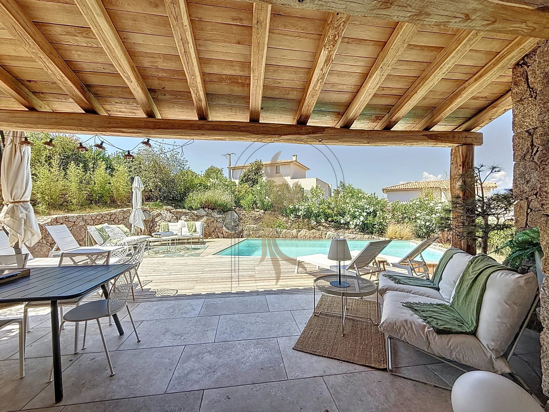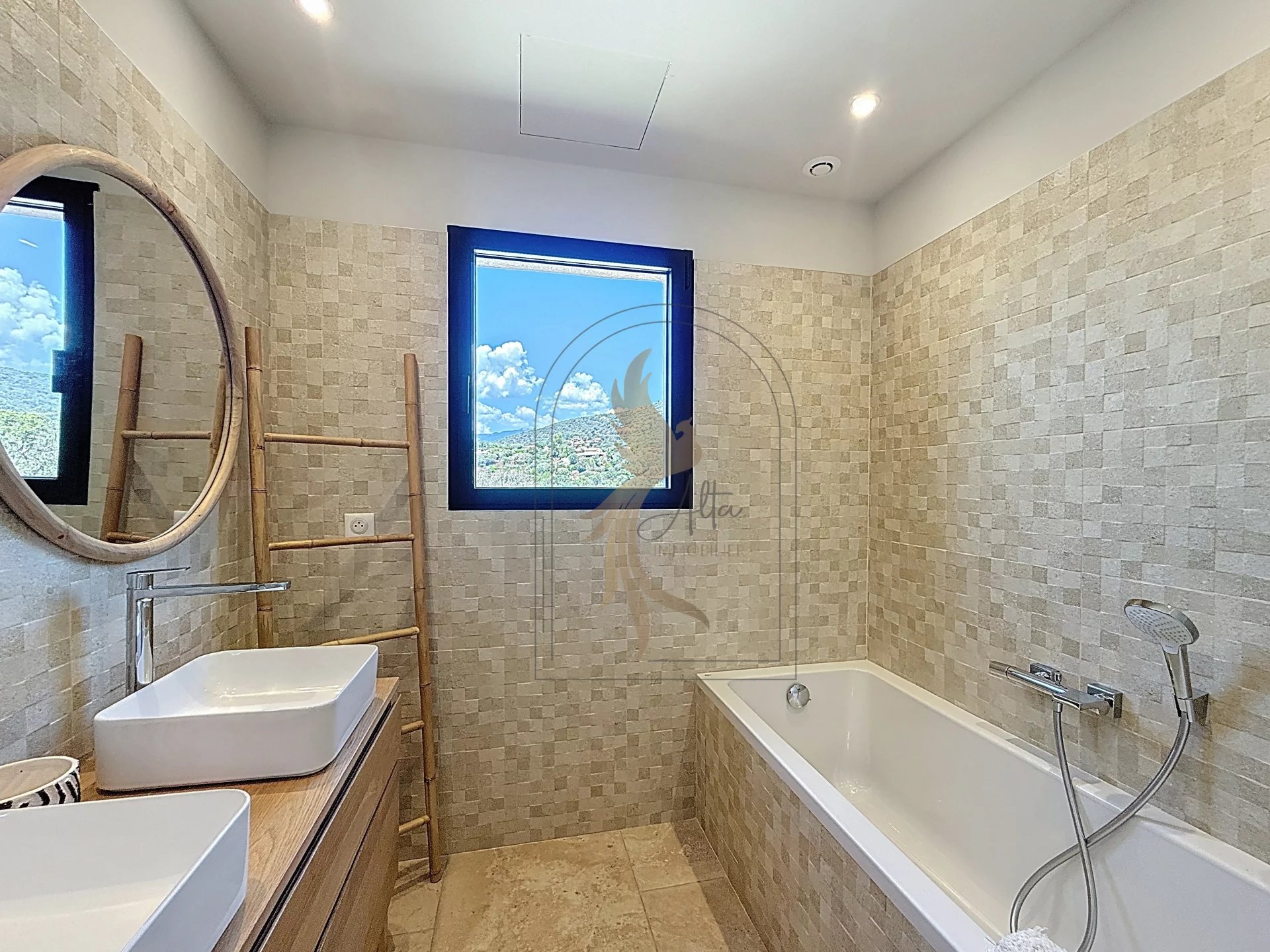 À cinq minutes de la plage du Cabanon Bleu, au sein d’un clos résidentiel de prestige composé de huit habitations de style bergerie en pierre de taille, cette villa offre un cadre de vie exceptionnel. Les prestations haut de gamme et la qualité des matériaux confèrent à ce bien un charme et un confort inimitables. Tout a été pensé avec soin, dans les moindres détails, afin de vous offrir une villégiature de rêve. La villa se compose d’un vaste salon-séjour baigné de lumière, avec poutres apparentes et charpente cathédrale, ouvert sur une cuisine entièrement équipée. De grandes baies vitrées à galandage prolongent l’espace de vie vers une belle terrasse semi-couverte et un jardin arboré. Le niveau inférieur accueille deux chambres lumineuses, une salle d’eau commune et un WC séparé. À l’étage, la suite parentale dispose d’un dressing, d’un WC indépendant et d’une salle de bains. En rez-de-jardin, une buanderie et une pièce de 22 m² offrent un espace supplémentaire pouvant servir de bureau, de salle de jeux ou de dortoir. Côté extérieur, vous profiterez d’une piscine de 7 x 3 mètres, entourée d’une terrasse en ipé de plus de 30 m², ainsi que d’une terrasse semi-couverte de 21 m². Le jardin, aménagé avec goût, est soigneusement planté et arboré. Deux places de stationnement extérieures complètent ce magnifique pied-à-terre de charme.