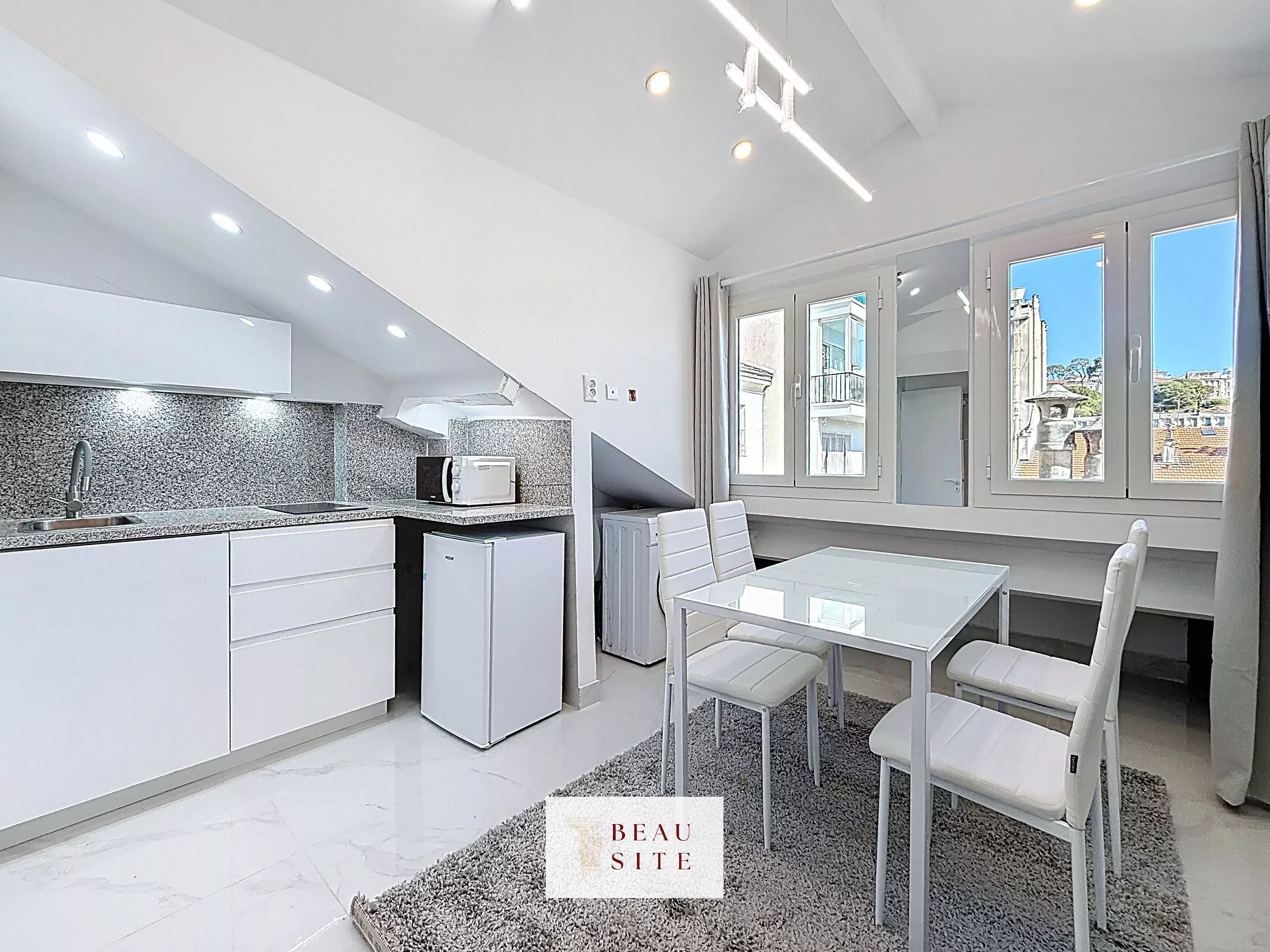 Nice - Wilson : Studio Dernier étage Au sein d’un immeuble bourgeois bien entretenu avec ascenseur, très beau studio rénové en dernier étage, d’environ 15m2 Loi Carrez et 27m2 au sol. L’appartement bénéfice d’une belle vue dégagée sur la colline de Cimiez. Climatisation, double vitrage, cuisine équipée. Idéal pour un investissement locatif ou un premier achat.