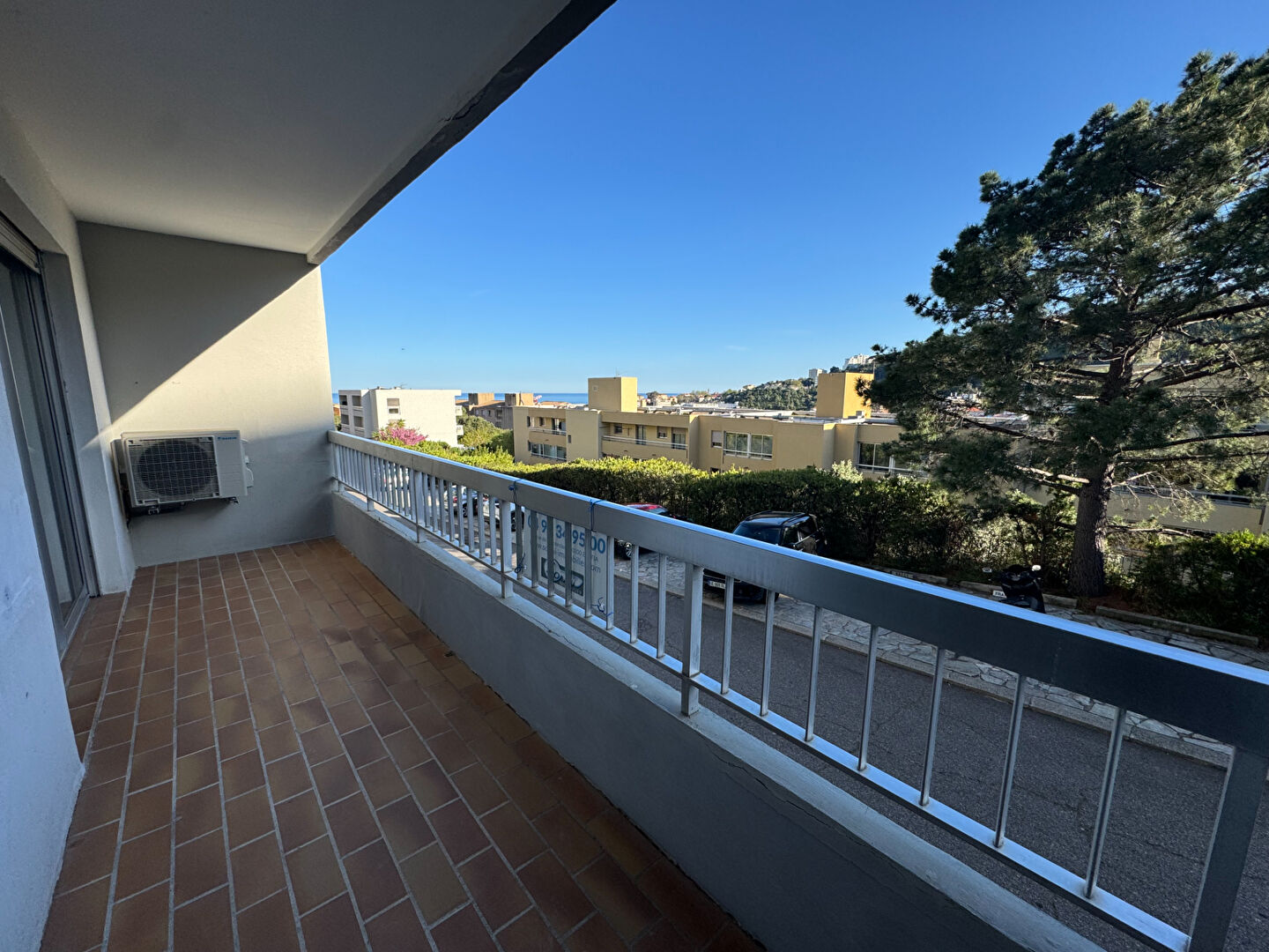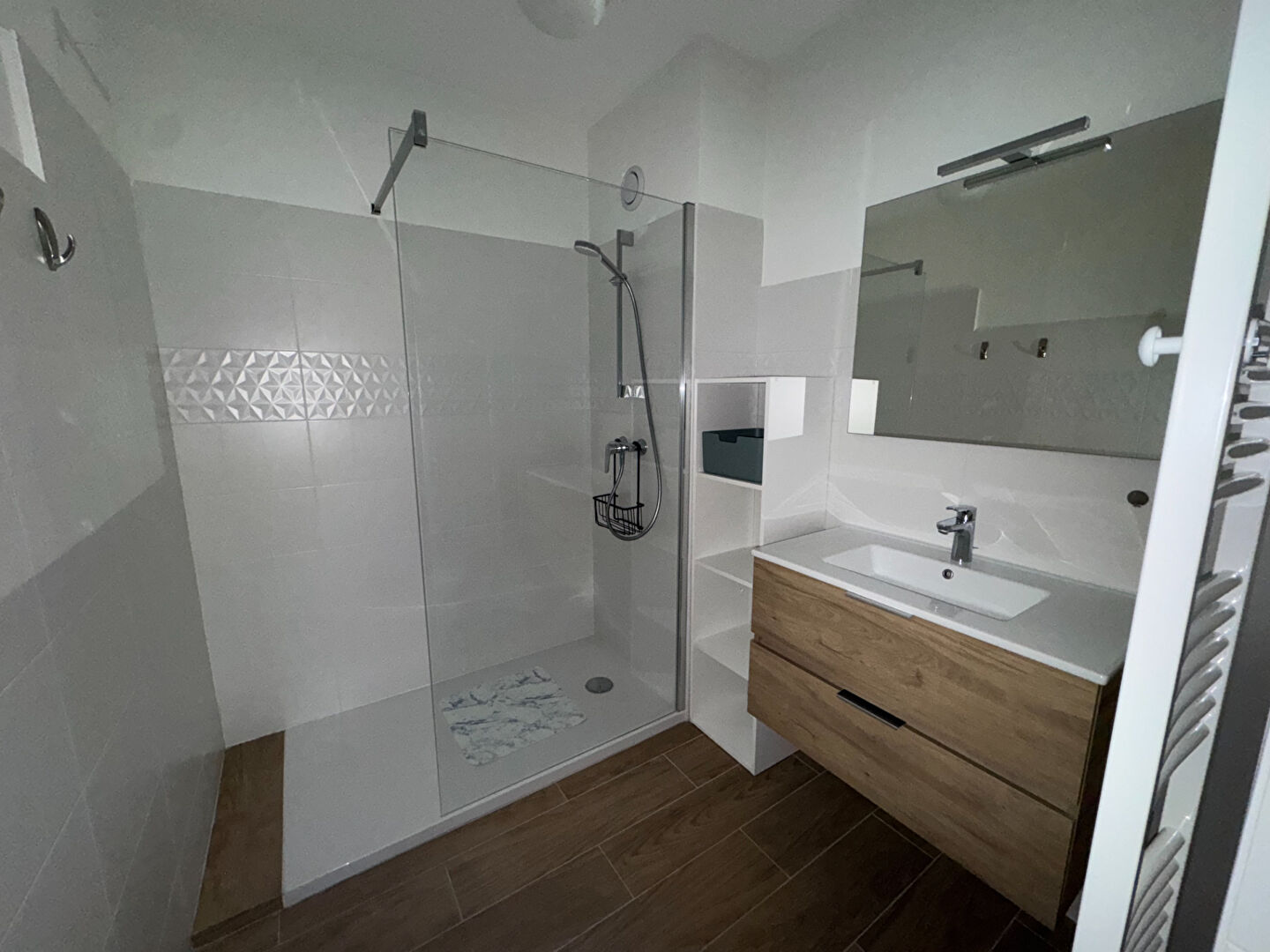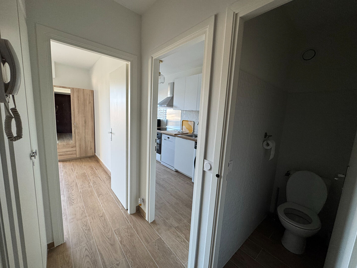 Appartement de Type 1, situé au 1er étage avec ascenseur, composé d'une entrée avec placard, une pièce à vivre climatisée, une cuisine équipée (éléments hauts et bas, four, plaque, hotte, micro-ondes, lave-vaisselle, lave-linge, réfrigérateur), une salle d'eau, un wc, un balcon et une place de parking en extérieur.