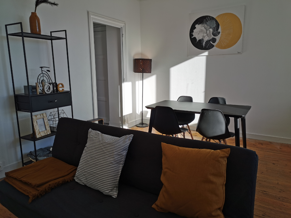 ST ETIENNE MONTPLAISIR / 13 rue paul ronin -Idéal étudiant ou jeune actif -Au 4 ème étage sur 4 ( sans ascenseur) d'une petite copropriété sécurisé avec interphone -F2 de 57m² entièrement meublé (machine à laver, literie, cuisine équipée etc) et refait à neuf en 2020 (électricité, fenêtres, meubles) -Proche de toutes les commodités (boulangerie, pharmacie, supermarché..) et axes autoroutiers -1 chambre séparée de 15m² -Séjour avec canapé convertible -Salle de bain avec douche -WC séparé -Balcon -Appartement traversant très lumineux, vue dégagée -Nombreux rangements -Fenêtres en double vitrage pvc -Chauffage collectif -Possibilité de stationnement gratuit en bas de l'immeuble -Loyer 422 euros + 113 euros charges (chauffage, eau chaude, entretien immeuble, minuterie) DISPONIBLE JUILLET VISITE VIRTUELLE 360° DISPONIBLE SUR DEMANDE