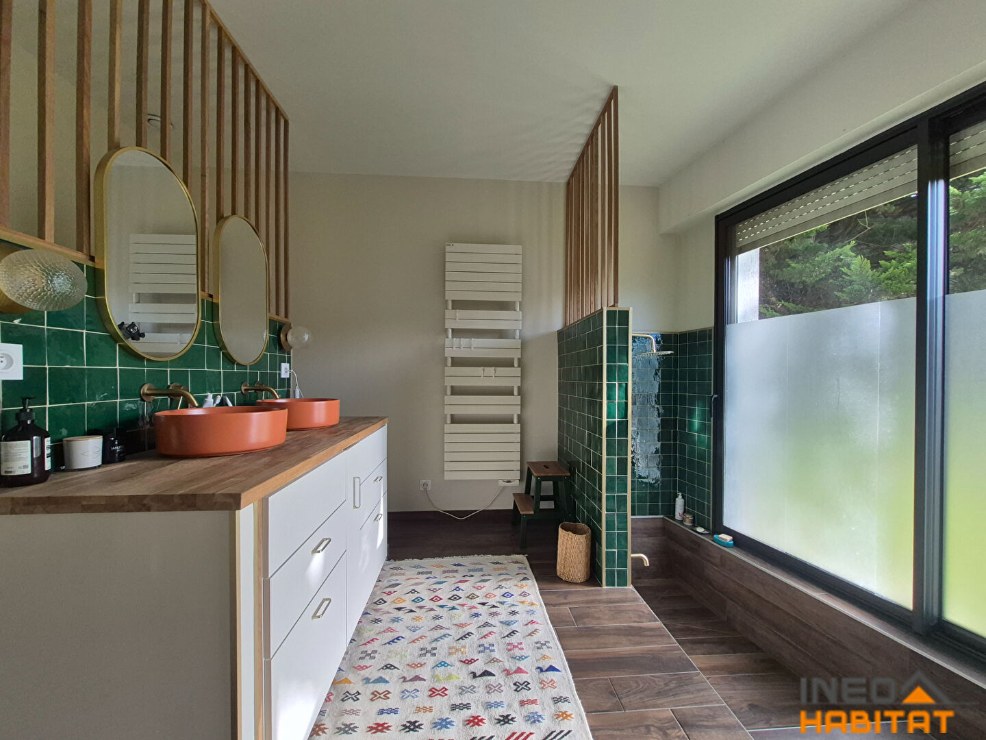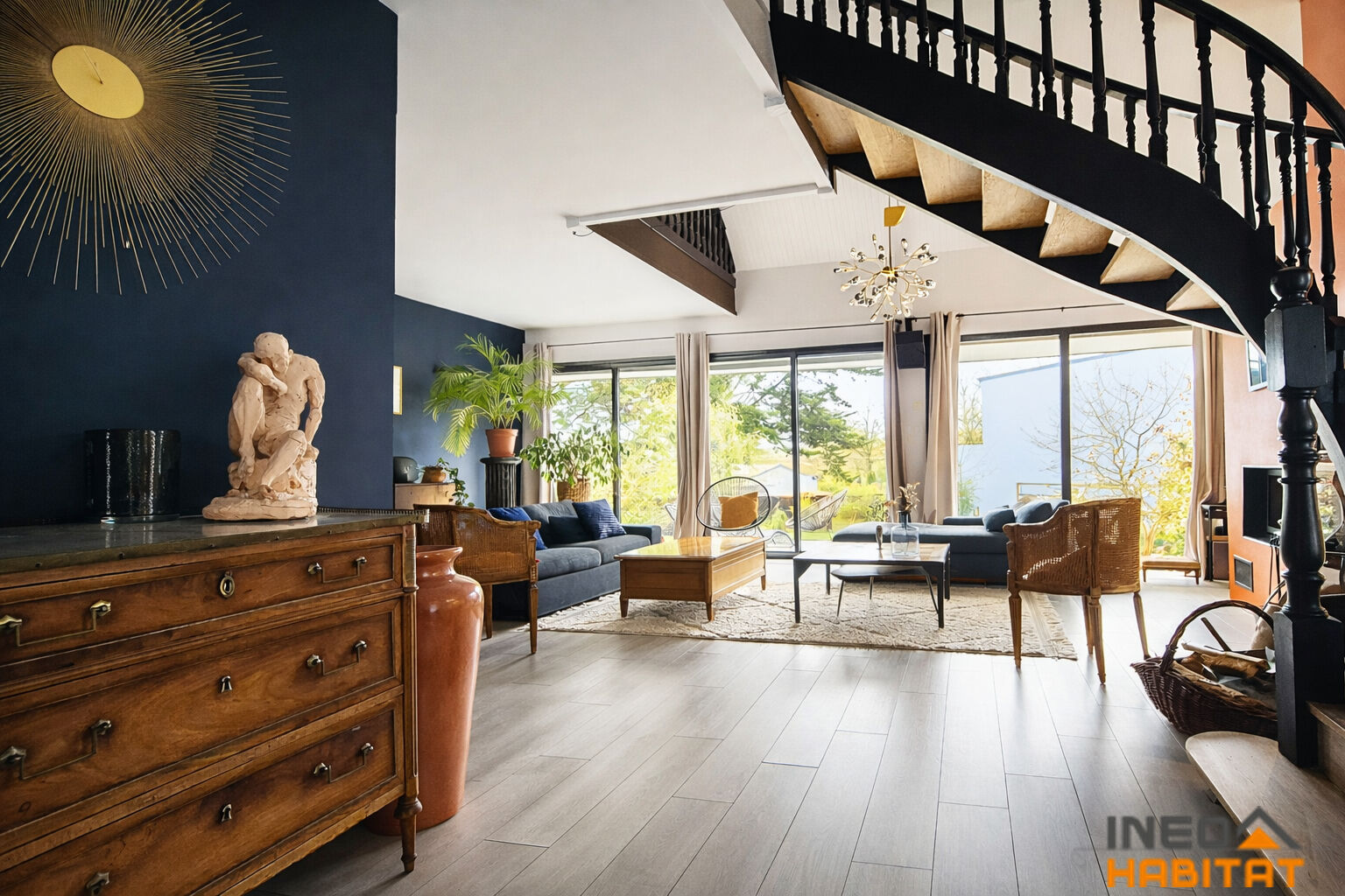 Située à Laillé, dans un environnement calme et recherché, cette spacieuse maison d'architecte construite en 1970 développe environ 307m² habitables sur un magnifique terrain arboré de plus de 1500 m². Le rez-de-chaussée, largement ouvert sur l'extérieur, propose un hall d'entrée, un vaste séjour lumineux agrémenté d'une cheminée avec insert, couloir desservant un espace repas convivial et une grande cuisine aménagée. L'espace nuit de plain-pied comprend deux chambres, une salle d'eau, une lingerie et wc séparés. Un garage complète ce niveau. A l'étage, une mezzanine surplombant le séjour dessert quatre chambres avec rangements, une salle de bains, wc ainsi qu'une suite parentale composée d'une chambre et d'une salle d'eau privative avec wc. La terrasse exposée Sud et le jardin paysager prolongent agréablement les espaces de vie et offrent un cadre verdoyant propice à la détente. Cette maison de caractère séduit par ses volumes généreux, sa luminosité et sa situation privilégiée au sein d'un environnement résidentiel de qualité. Les informations sur les risques auxquels ce bien est exposé sont disponibles sur le site Géorisques : www.georisques.gouv.fr. Retrouvez toutes nos annonces sur notre site : www.ineohabitat.com (4.80 % honoraires TTC à la charge de l'acquéreur.)