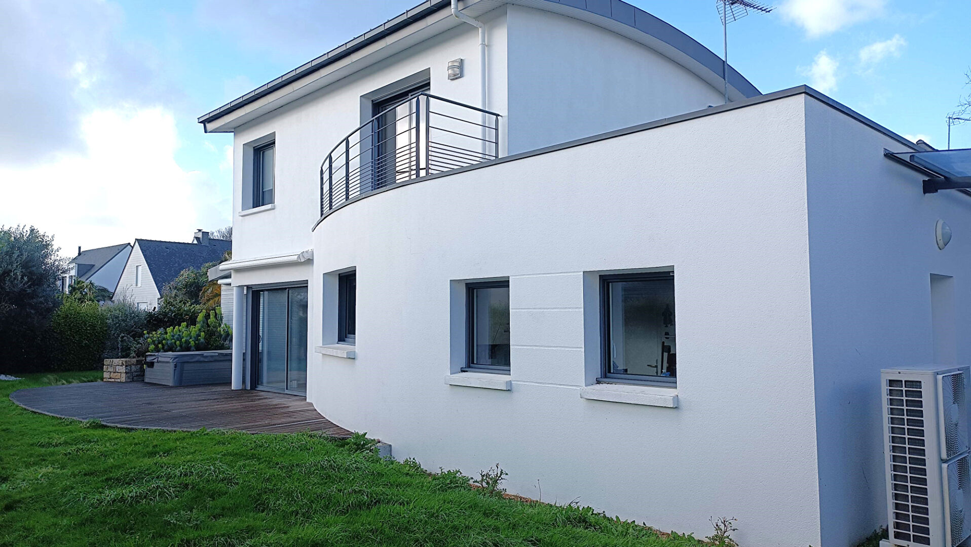 Au coeur de SAINTE-MARINE, belle contemporaine de 130 m² aux prestations de qualité sur un joli jardin clos et paysagé de 553 m² comprenant : hall d'entrée avec placards, belle pièce de vie avec cuisine ouverte aménagée et équipée, buanderie, suite parentale avec salle d'eau privative, WC avec lave-mains- A l'étage : Mezzanine, deux chambres dont une avec balcon - Le petit plus pour profiter d'un moment de détente le spa sur la terrasse ! Vous n'avez plus qu'à poser vos valises ! Garage-Carport- Abri de jardin- portail motorisé. A visiter rapidement ! Les informations sur les risques auxquels ce bien est exposé sont disponibles sur le site www.georisques.gouv.fr Pour plus d'informations, contactez votre Agence Littoral Ouest Immobilier 23 rue de l'Odet 29120 COMBRIT-SAINTE-MARINE au 02 98 87 12 78 (4.50 % honoraires TTC à la charge de l'acquéreur.)