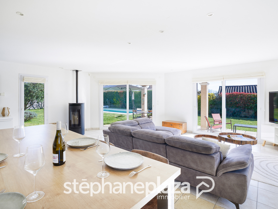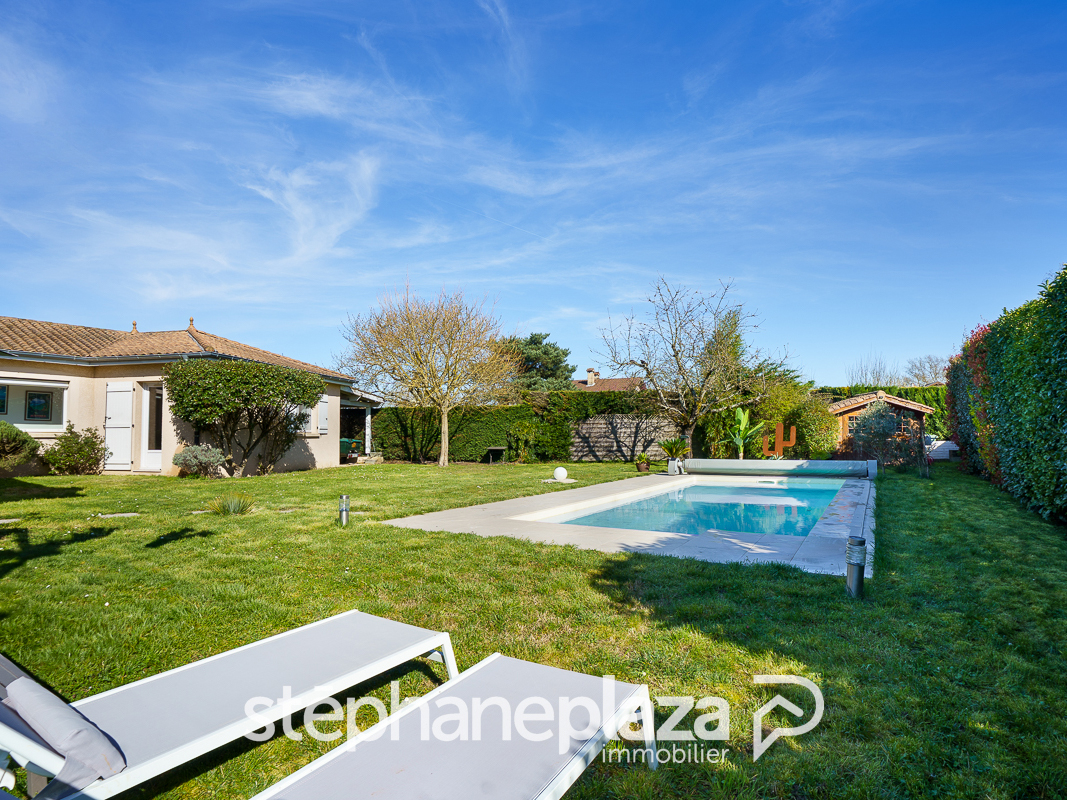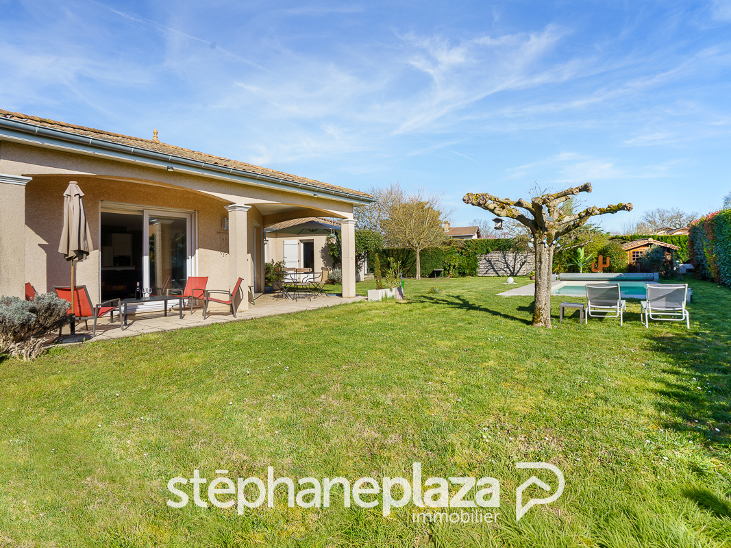 EXCLUSIVITE STEPHANE PLAZA IMMOBILIER. VISITE VIRTUELLE 100% IMMERSIVE de ce bien : A découvrir sur notre site web ou en agence sur Table KINETI ! Vous souhaitez profiter d'une magnifique maison avec piscine sur la commune de Replonges ? Venez découvrir cette superbe maison de plain-pied édifiée sur un terrain clos et arboré de 1061m2, au calme et à seulement 10 minutes de Mâcon. Cette Maison dispose d'une pièce de vie lumineuse et d'une cuisine équipée et aménagée ouvrant sur une terrasse avec accès direct à la piscine, pour profiter pleinement de moments privilégiés en famille ou entre amis. La partie nuit se compose de trois chambres dont une suite parentale avec salle d'eau, d'un wc, d'un bureau et d'une seconde salle de bain avec baignoire. Une buanderie et deux garages complètent ce bien. Prestations complémentaires : Poêle à granulés, volets roulants électriques, portail et garage automatisés. Les informations sur les risques éventuels auxquels ce bien est exposé sont disponibles sur le site Géorisques : www.georisques.gouv.fr **Honoraires à la charge du vendeur. Pour toute information complémentaire, contactez l'agence Stéphane Plaza Immobilier Mâcon au 03 85 20 54 45. Maud BONNIN (EI) Agent Commercial - Numéro RSAC : 832 927 412 - Macon.