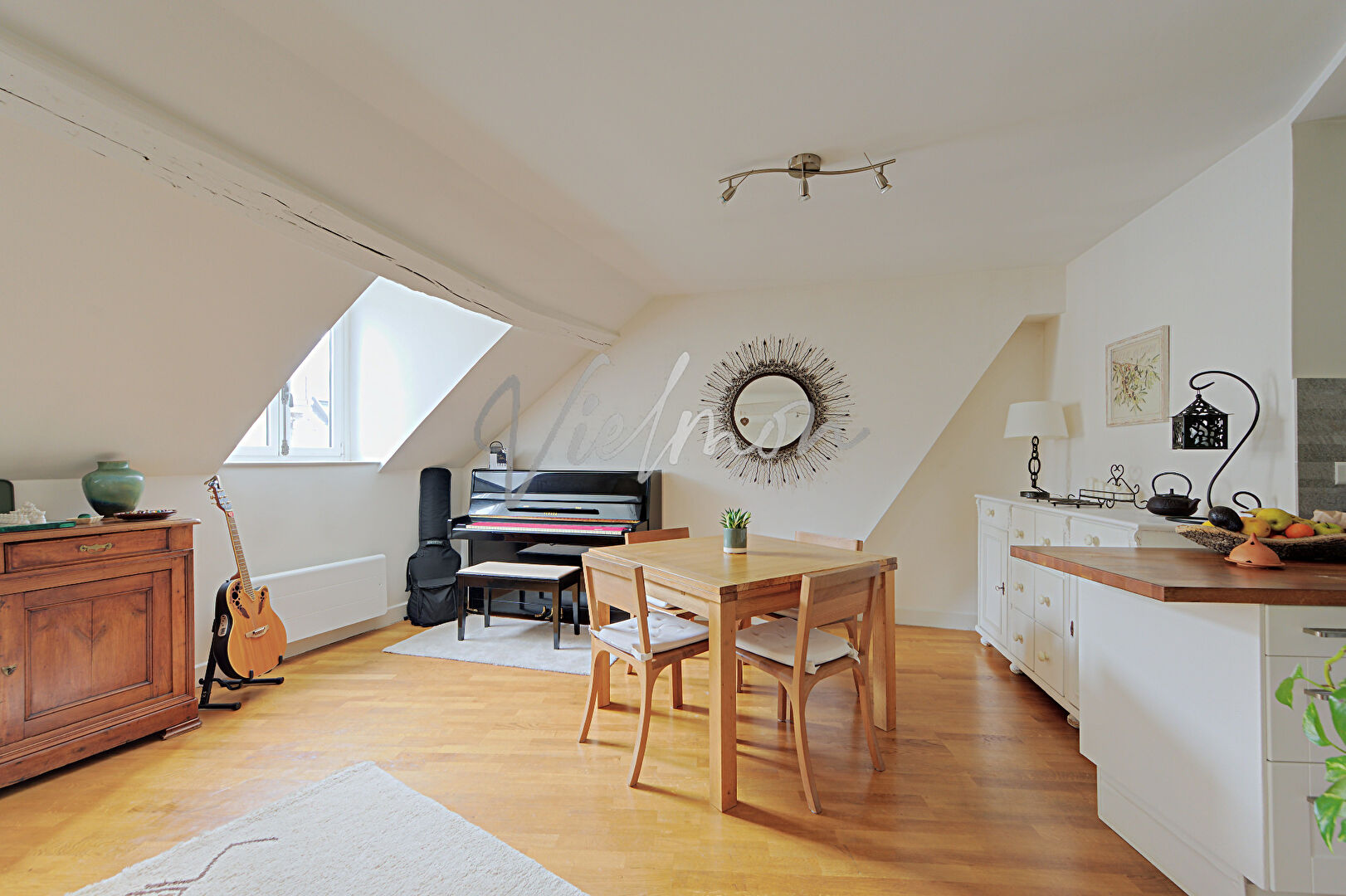 Select By Vielmon vous présente cet appartement de 72 m² Carrez (92 m² au sol) qui se trouve au 3ème et dernier étage d'un immeuble ancien de caractère, idéalement situé à deux pas du Château, du RER A et des commerces, Il se compose d'une entrée desservant une salon séjour d'env 33m² avec cuisine ouverte, de deux chambres de 11 et 13m², d'une salle de bain. En complément, vous trouverez un grenier accessible directement depuis l'appartement qui offre plusieurs espaces aménagés : une chambre supplémentaire ou un coin bureau sous les toits, idéal pour le télétravail ainsi que des espaces de rangement supplémentaires. Un véritable atout rare en centre-ville. Vous serez séduit par son dernier étage au calme et lumineux, son emplacement premium, son cachet de l'ancien, ses volumes atypiques et évolutifs. Petite copropriété au charme authentique. Cave commune disponible Un bien rare, idéal pour les amateurs de charme et de biens atypiques en coeur de ville. A visiter sans tarder ! Annonce rédigée sous la responsabilité de Xavier Laval (EI) - R.S.A.C : 910 405 380 Versailles (TEL : 06 61 41 32 39) Mail : xavier.laval@selectby.fr (3.91 % honoraires TTC à la charge de l'acquéreur.) Copropriété de 9 lots - dont 7 lots habitation. Charges annuelles : 2184 euros.