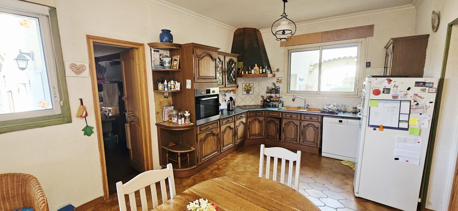 Superbe villa construite en 1985 à l'entrée (coté Narbonne) de la commune très prisée de Vinassan au pied de la clape. Cette dernière possède une superficie habitable de 176 m² (205 m² en comptant les partie mansardée), une véranda de 11 m² et un garage double de 26 m². Le système de chauffage est électrique, avec une climatisation réversible et une cheminée à foyer fermé. L'extérieur arboré et agencé, offre un hâvre de paix, avec une piscine en forme de haricot, un forage ainsi que du stockage.