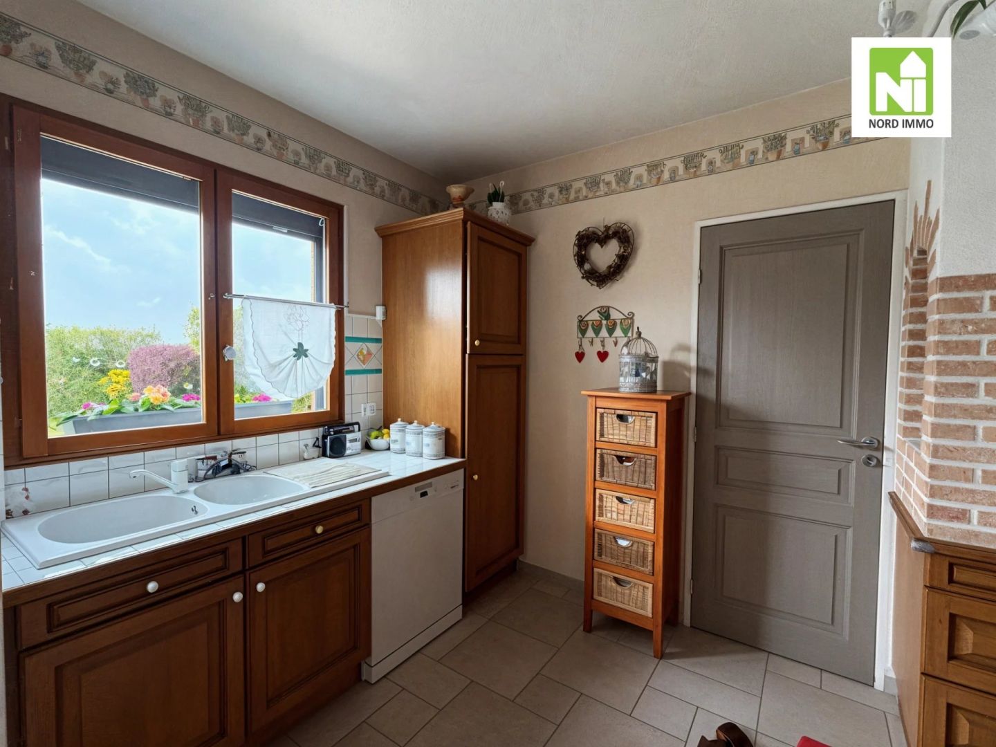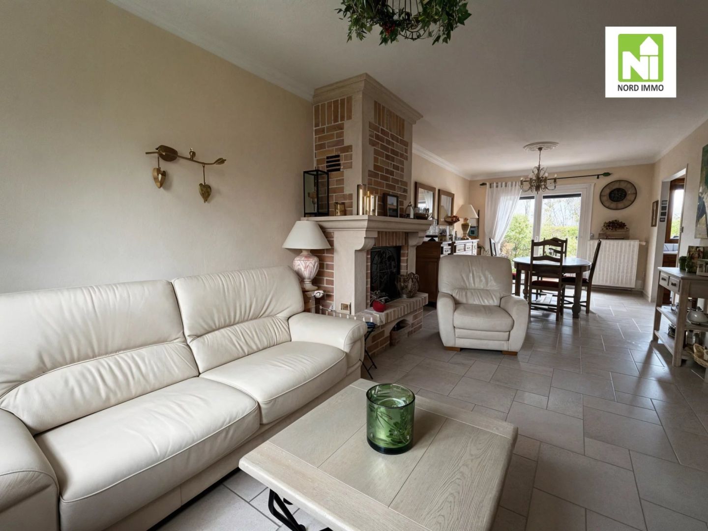 Maison semi mitoyenne - T4 - Cappelle en Pevele Nord immo vous propose à la vente en exclusivité cette maison située dans le centre de Cappelle en Pevele. Dès lentrée vous serez séduit par cette maison très lumineuse composée dune pièce de vie traversant avec sa cheminée feu de bois, une cuisine équipée (plaques, hotte, four, lave vaisselle , frigidaire) semi ouverte sur lespace de vie, le tout donnant directement sur la terrasse et un magnifique jardin avec sa vue sur les champs de la Pévèle. Un Wc séparé ainsi quun grand garage complète ce niveau. Au premier étage, vous trouverez trois belles chambres et une salle de bain. Double vitrage PVC, volets roulants électrique, chaudière gaz de 2015. Deux places de stationnement privatives. ON POSE SES MEUBLES (3.12 % honoraires TTC à la charge de l'acquéreur.)
