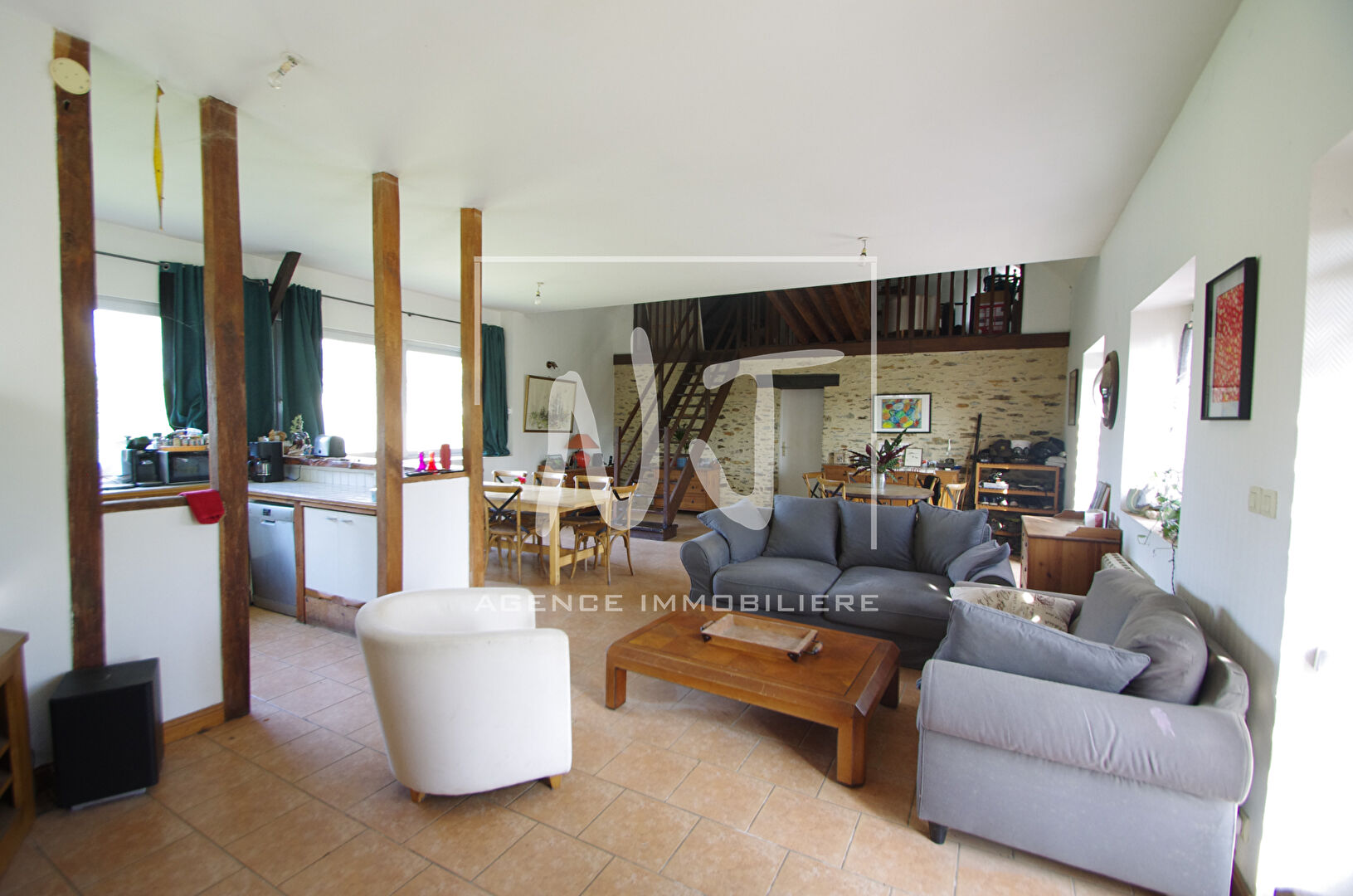 L'agence Nicole Joubert vous propose en exclusivité : Située sur la commune de Segré-en-Anjou Bleu, cette charmante longère d'environ 118 m² vous séduira par son authenticité et son environnement paisible, le tout sur une parcelle d'environ 2 000 m². La maison d'habitation se compose comme suit : Au rez-de-chaussée : une cuisine aménagée et équipée de meubles hauts et bas, semi-ouverte sur un salon-séjour chaleureux agrémenté d'un poêle à bois, un dégagement desservant une chambre, une salle d'eau, des WC ainsi qu'une buanderie. A l'étage : une mezzanine offrant un espace supplémentaire ainsi que deux chambres. Un débarras et un grenier avec potentiel d'agrandissement viennent compléter ce bien. A l'extérieur, vous profiterez d'une belle parcelle cadastrale d'environ 2 000 m², idéale pour les amoureux de nature. Située à 12 minutes de l'Hôtel de Ville de Segré et 46 minutes de la gare SNCF d'Angers Une opportunité rare à découvrir sans tarder ! Pour tout renseignement ou organiser une visite, contactez Anne-Marie TENAILLEAU, agent commercial immatriculé au RSAC 913541660 Référence : 1283M (6.00 % honoraires TTC à la charge de l'acquéreur.) Anne-Marie TENAILLEAU (EI) Agent Commercial - Numéro RSAC : 913541660 - ANGERS.