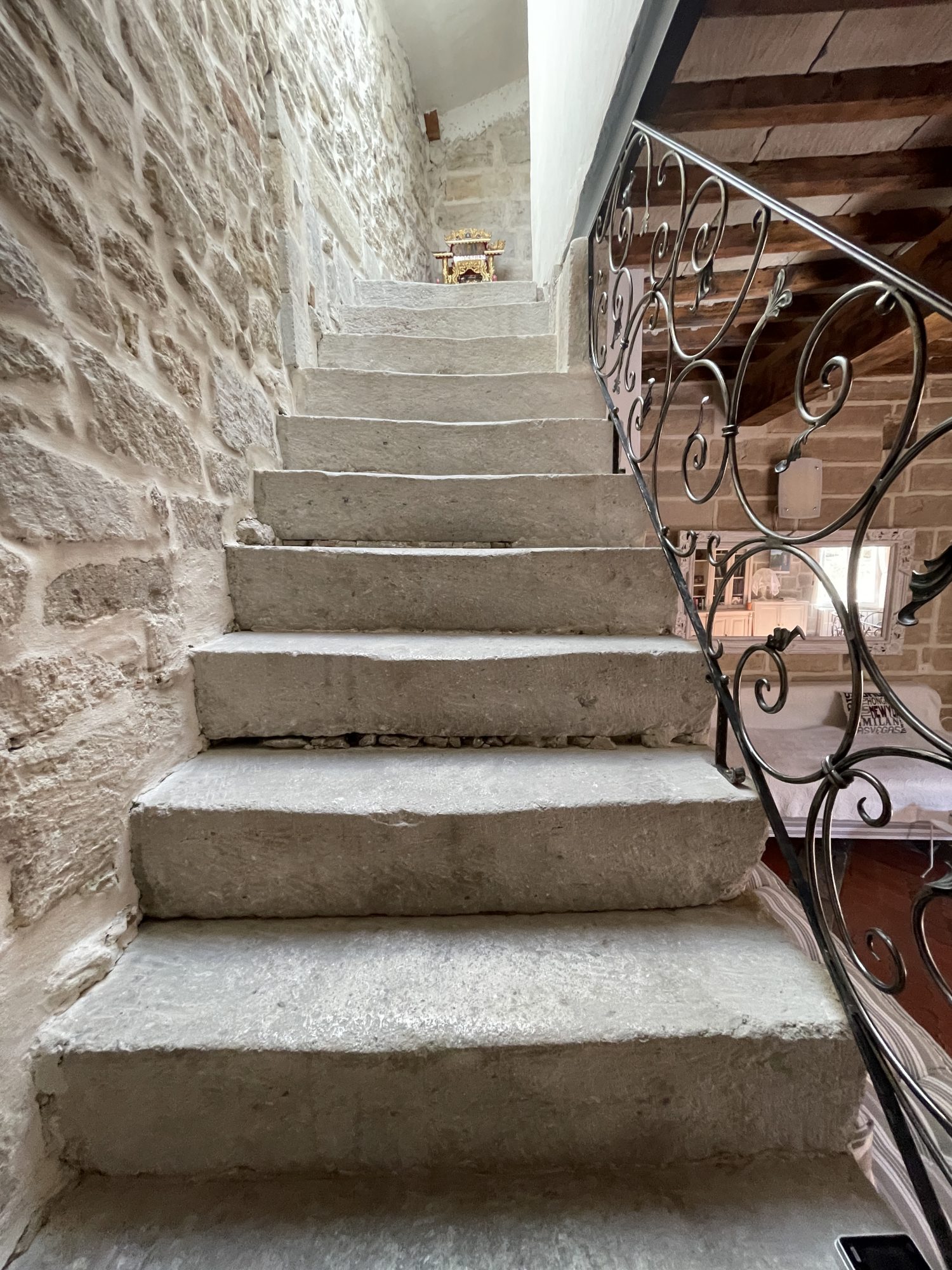 d'une salle de bains, d'une buanderie, de deux wc et d'une grande cave en pierre.