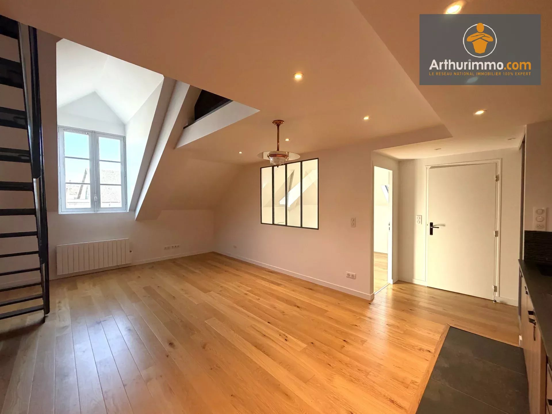 En exclusivité. Compiègne place de l'ancien état major, à 3 minutes de la gare et du centre ville. Cet appartement d'une superficie au sol de 69 m² en excellent état avec de belles prestations et très bien isolé (classé B en consommation énergétique et A en GES) est situé dans une résidence sécurisée avec ascenseur, au deuxième et dernier étage. Il vous offre une cuisine équipée (plaque induction, micro-ondes, lave-linge, lave-vaisselle, réfrigérateur, hotte), un séjour salon, une salle d'eau avec WC et une chambre. A l'étage, une chambre / bureau en mezzanine. De plus, une place de parking privative vous facilitera le stationnement. A visiter ! Libre de suite.