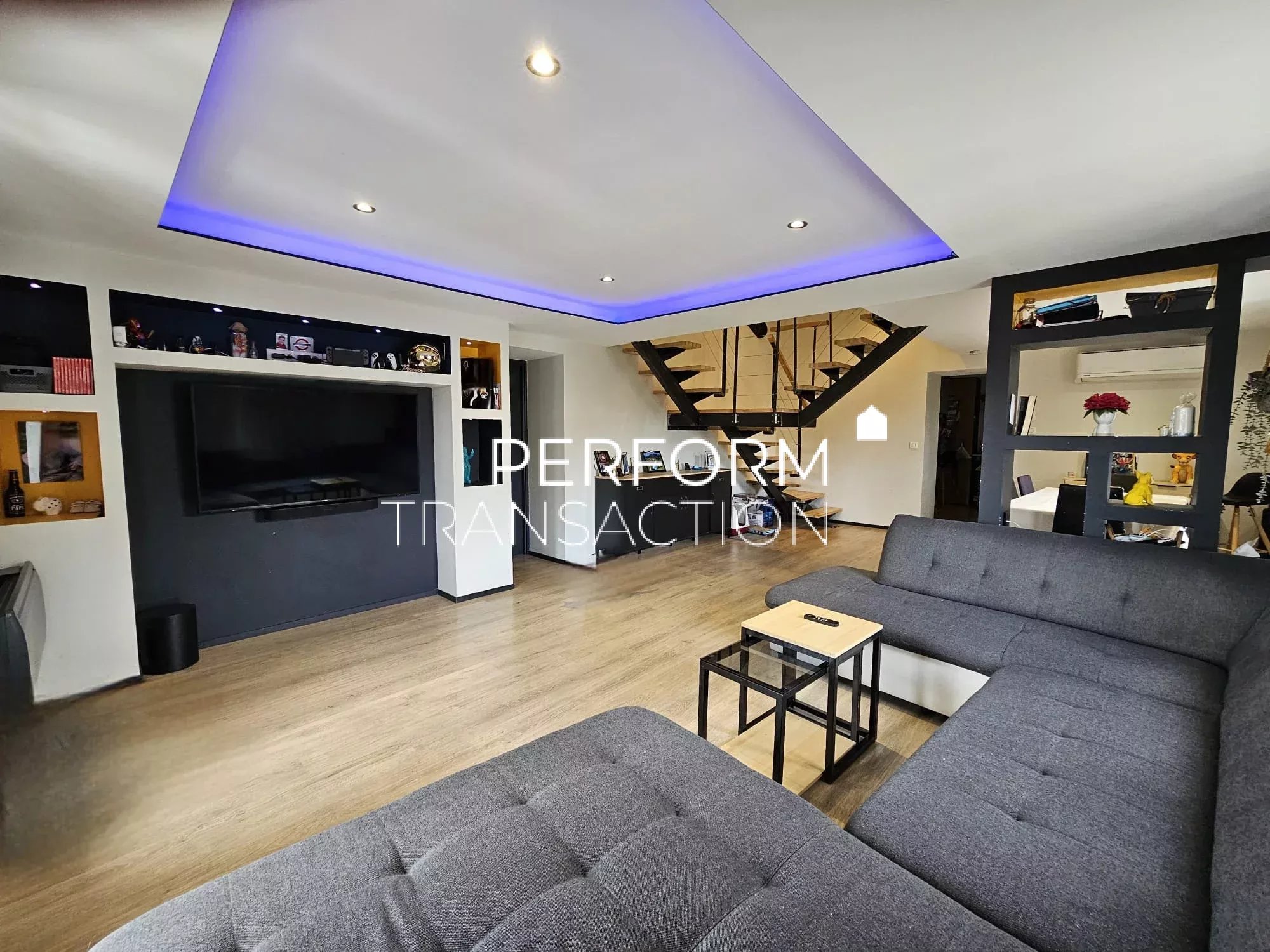 A découvrir sur la commune de RENAGE, appartement en duplex d'environ 110m², situé au 1er étage d'une petite copropriété de seulement 3 logements. Au premier niveau : * Une entrée sur la cuisine * Une belle pièce de vie * Une suite parentale avec dressing et salle d'eau A l'étage : * Deux chambres dont une avec sa salle de bains * Un bureau Le bien bénéficie également d'un jardin privatif d'environ 100m². Confort : - Climatisation réversible Les + : Duplex spacieux et fonctionnel Petite copropriété Jardin extérieur Taxe F : 800€ Charges : 300€ / an