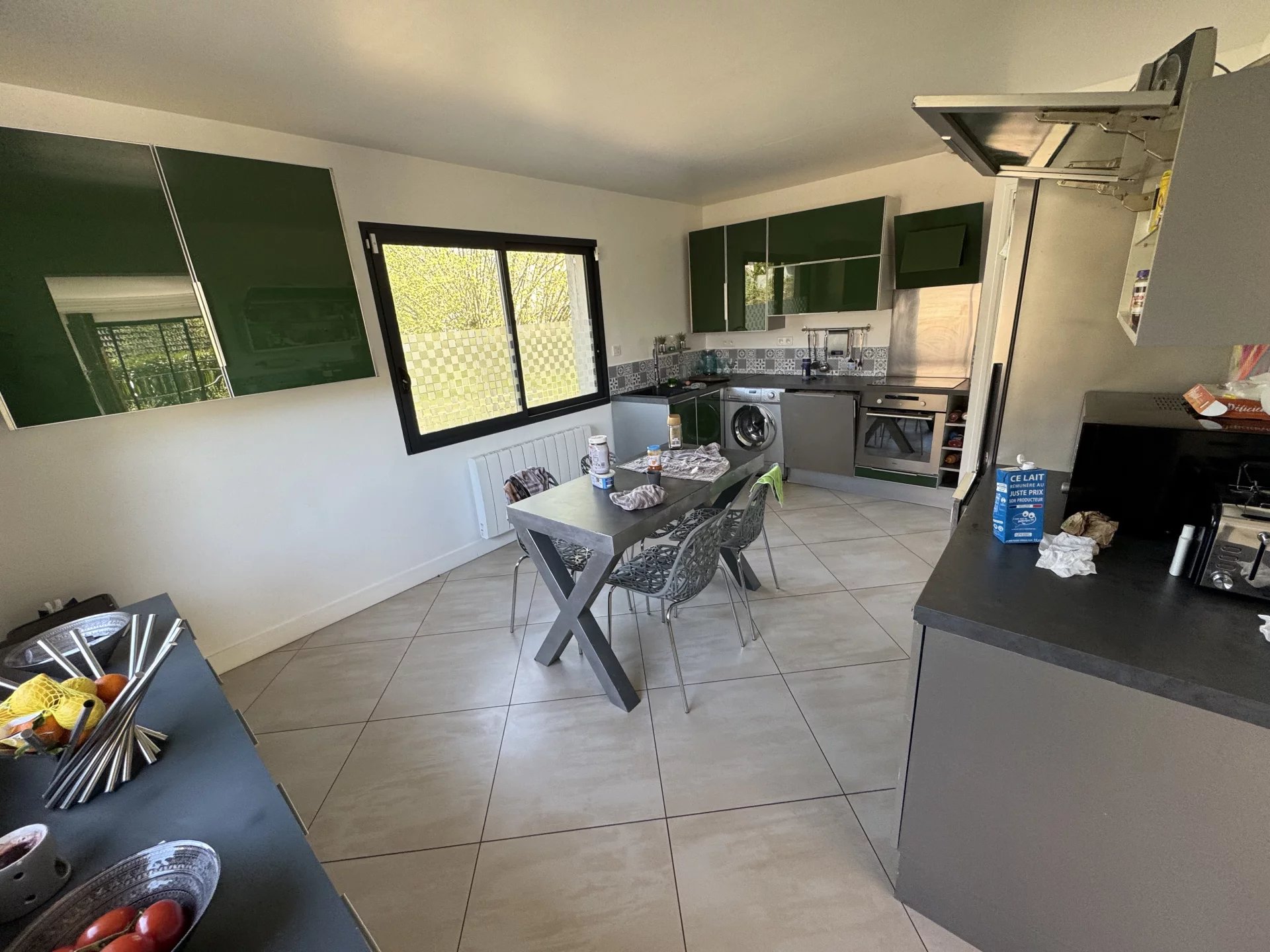 - En RDC: Une entrée, un grand séjour lumineux de 34.33m², une cuisine aménagée et équipée spacieuse de 16.76m², un toilette