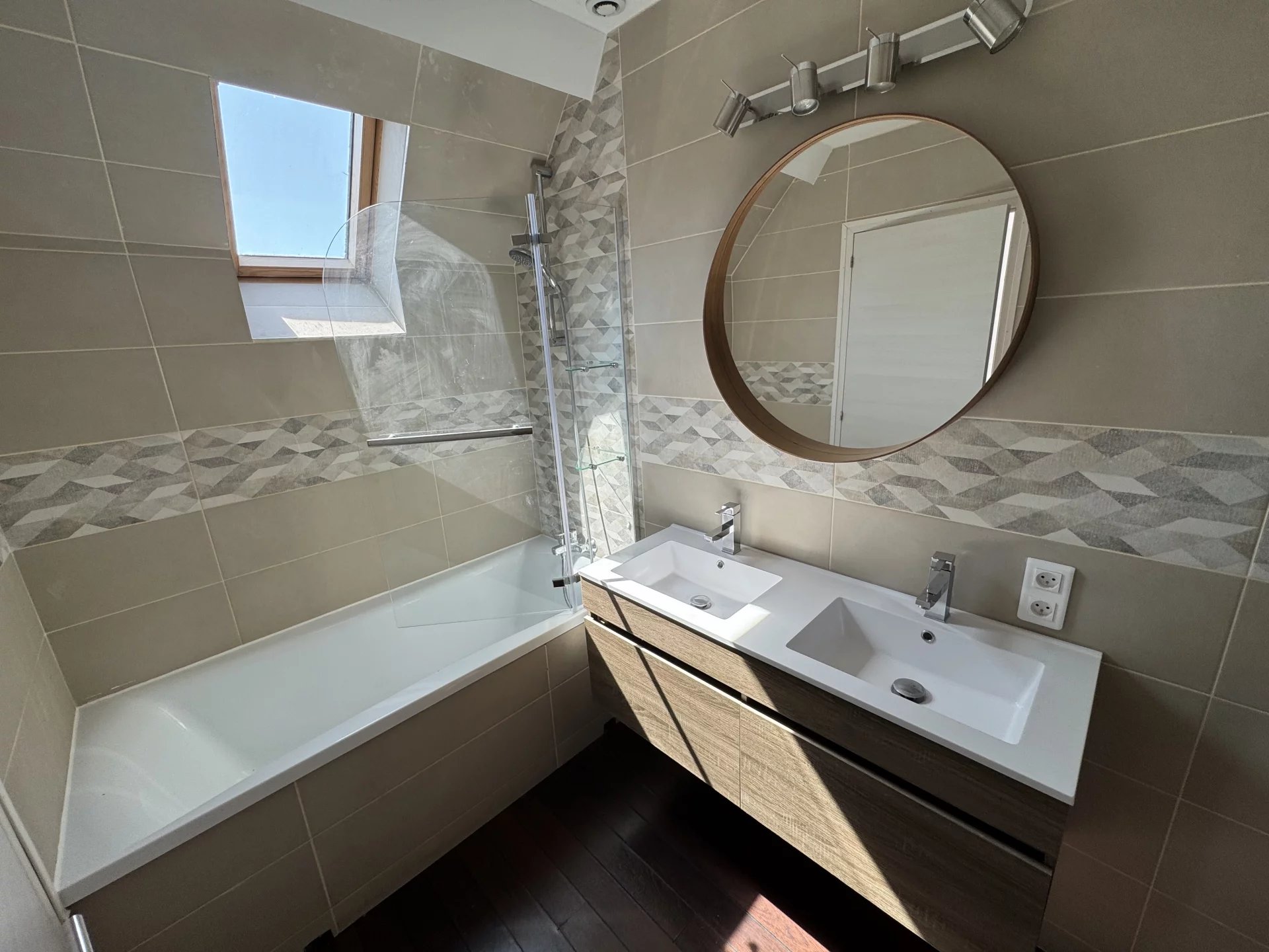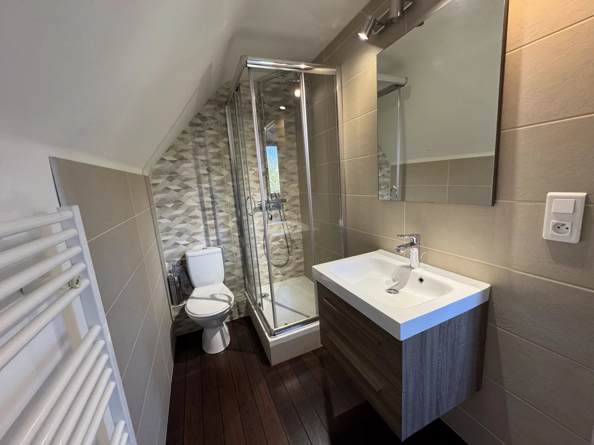 - A l'étage : Deux chambres avec chacune sa salle d'eau et WC, et deux chambres avec chacune sa salle de bains avec WC.