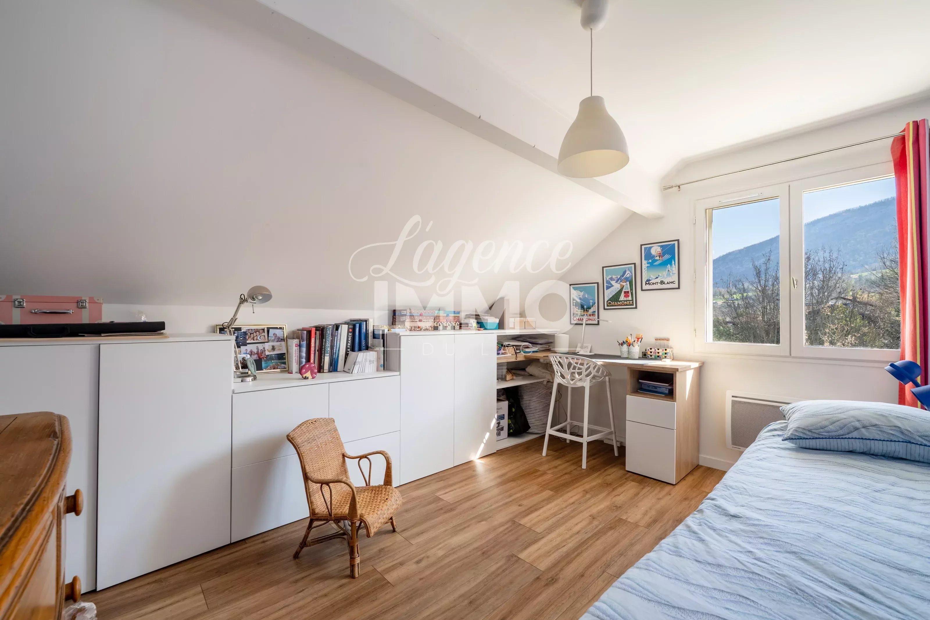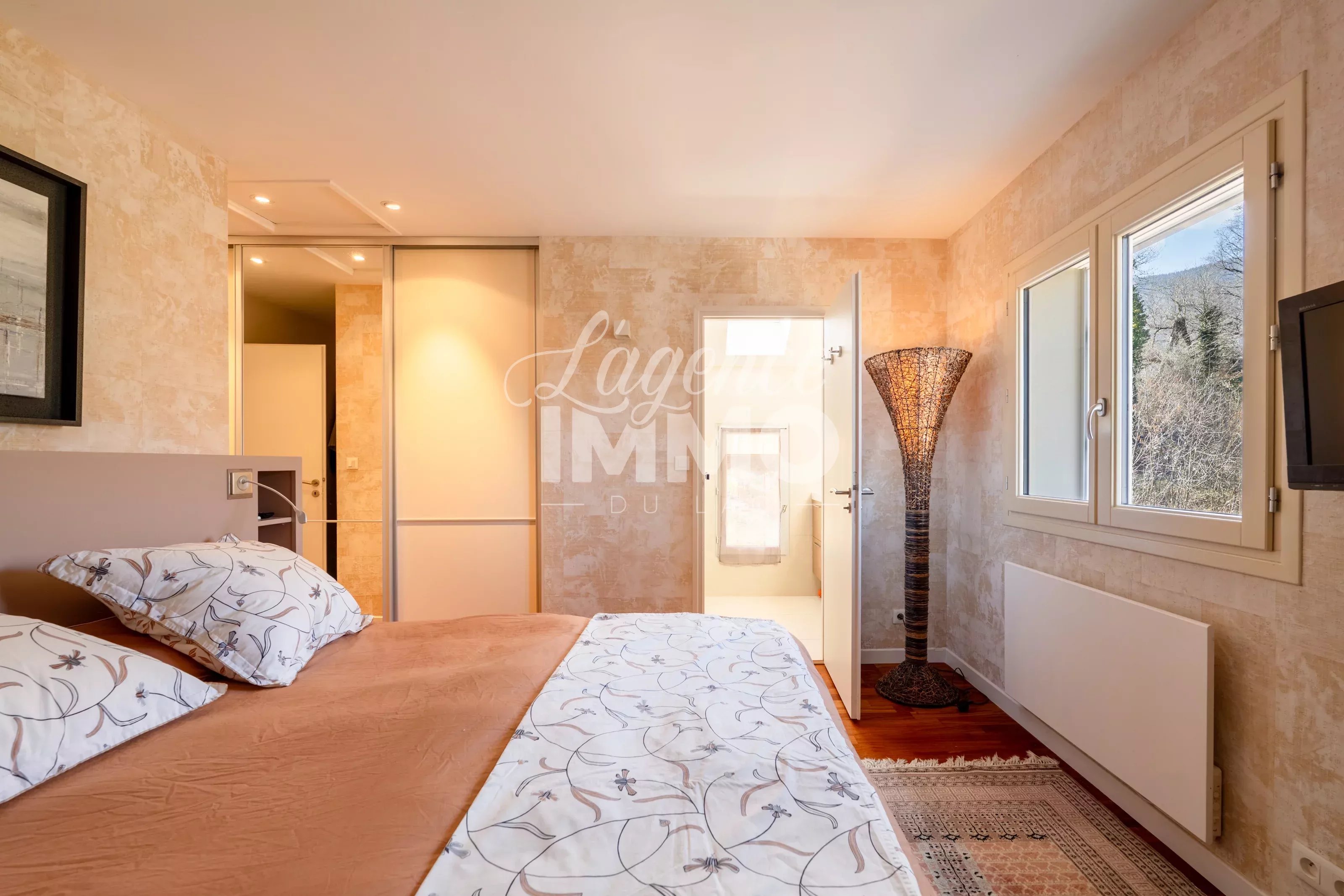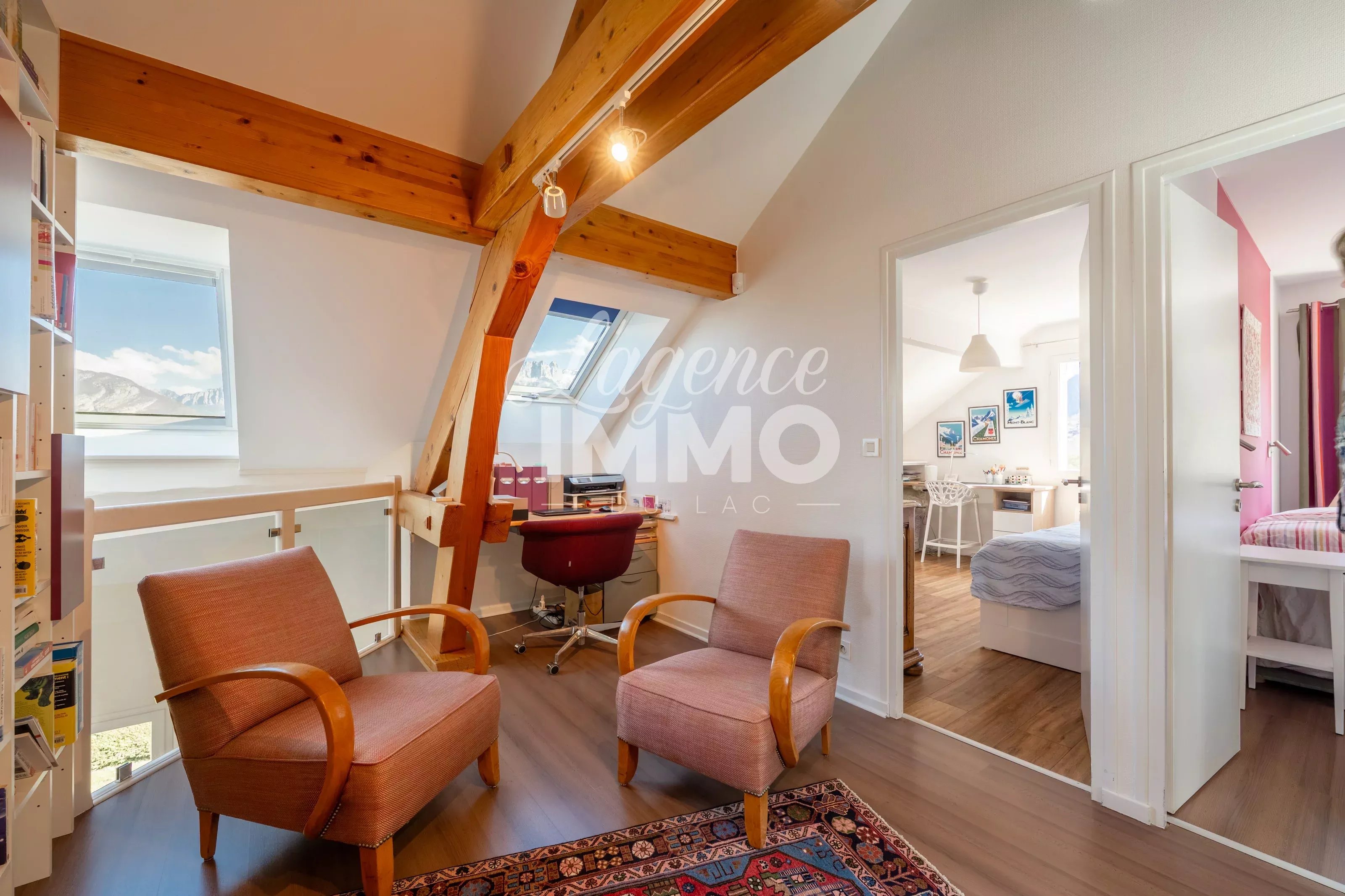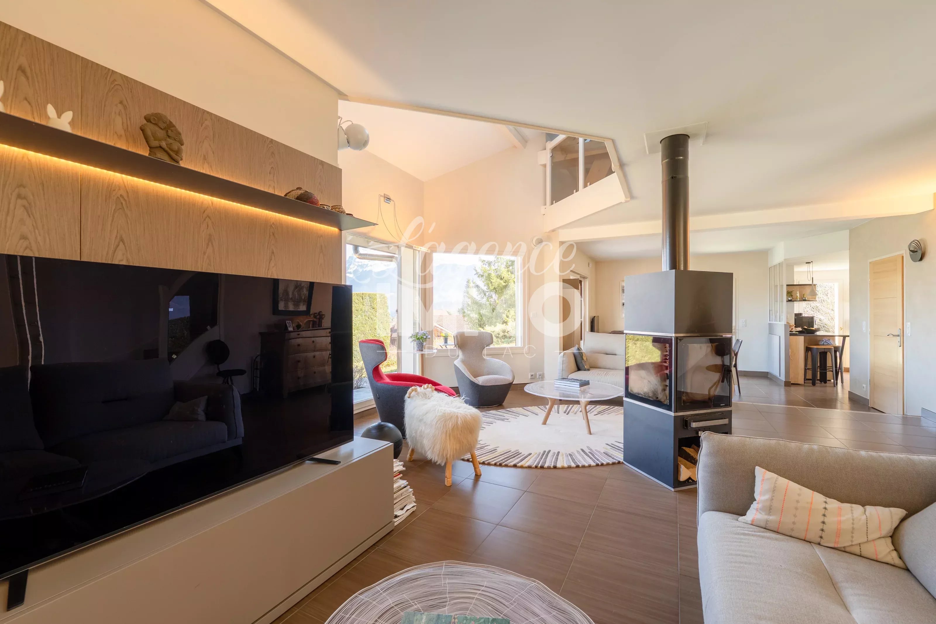 En exclusivité ! VILLA ST-JORIOZ A 5 MIN EN VELO DU CENTRE VILLE + SOUS-SOL + VUE LAC ET MONTAGNES Nichée au fond d’une impasse, dans un calme absolu, cette magnifique villa édifiée en 1992 est implantée sur un terrain arboré de 1 200 m² en position dominante. Elle surplombe le lac et les montagnes environnantes, offrant un panorama exceptionnel. Dès l’entrée, vous serez séduits par une vaste pièce de vie de 51 m², baignée de lumière grâce à sa triple exposition Est / Sud / Ouest. Les larges ouvertures dévoilent un spectacle permanent sur le lac et les montagnes. La cuisine, entièrement équipée et aménagée, est semi-ouverte sur le salon/séjour et s’ouvre directement sur la terrasse. Un poêle à bois vient parfaire l’atmosphère chaleureuse des journées d’hiver. Ce niveau accueille également une confortable suite parentale avec dressing et salle d’eau, ainsi qu’un WC indépendant. À l’étage, l’espace nuit propose : - Une belle mezzanine idéale pour un bureau ou un espace détente - Une seconde suite parentale avec dressing sur mesure et salle d’eau - Deux chambres supplémentaires avec rangements - Une salle de bains avec douche, baignoire et WC Le sous-sol complète parfaitement l’ensemble avec : - Une chambre avec salle d’eau et dressing - De nombreux rangements sur mesure - Un grand garage de 26 m² - Une cave, une buanderie et un cellier À l’extérieur, le terrain arboré agrémenté d’arbres fruitiers invite à la détente. La terrasse, bénéficiant elle aussi de la triple exposition, permet de profiter pleinement du panorama grandiose. À l’arrière de la maison, il n’est pas rare d’apercevoir des biches dans le champ voisin, ajoutant une touche bucolique et rare à ce cadre de vie. Idéalement située, vous rejoindrez le centre ville de St-Jorioz avec toutes ses commodités à 5 minutes en vélo. La piste cyclable à 1.5km et le lac avec la plage de St-Jorioz à 3km. Pour les amoureux de la nature et les plus sportifs, des départs de randonnée se situent juste à côté. Une propriété rare, alliant calme absolu, lumière, nature et vue panoramique, idéale pour les amoureux des grands espaces. DPE : D