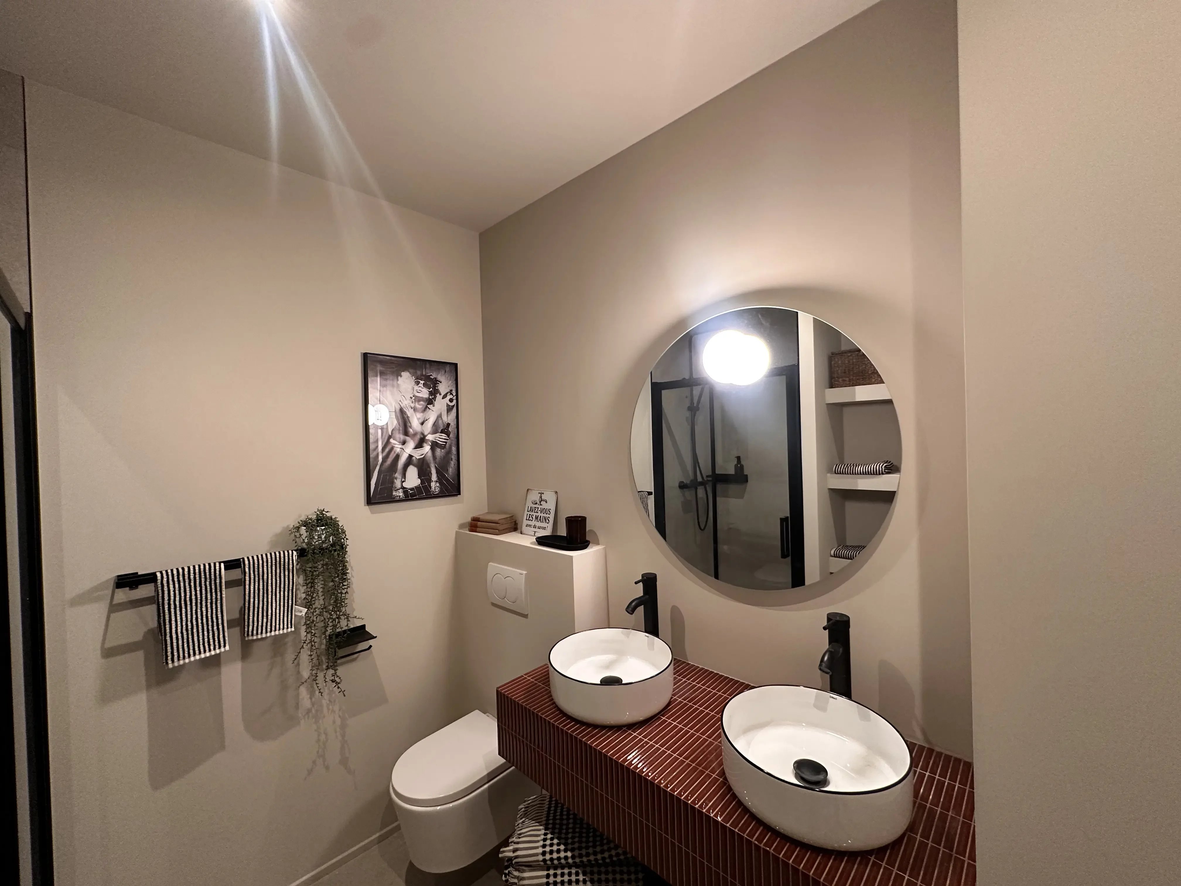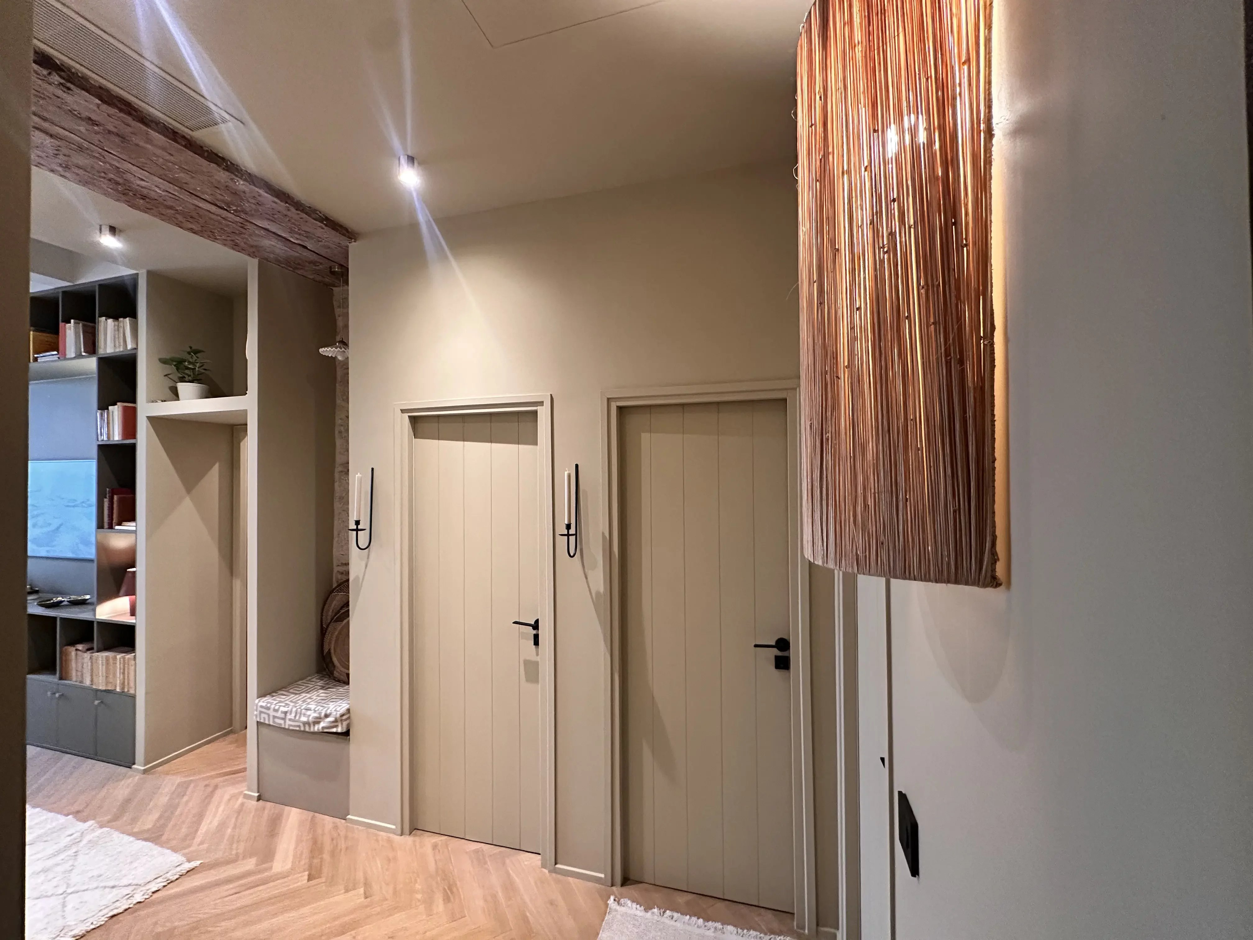 L’appartement dispose également d’une entrée fonctionnelle avec buanderie, de WC indépendants, ainsi que de nombreux rangements.