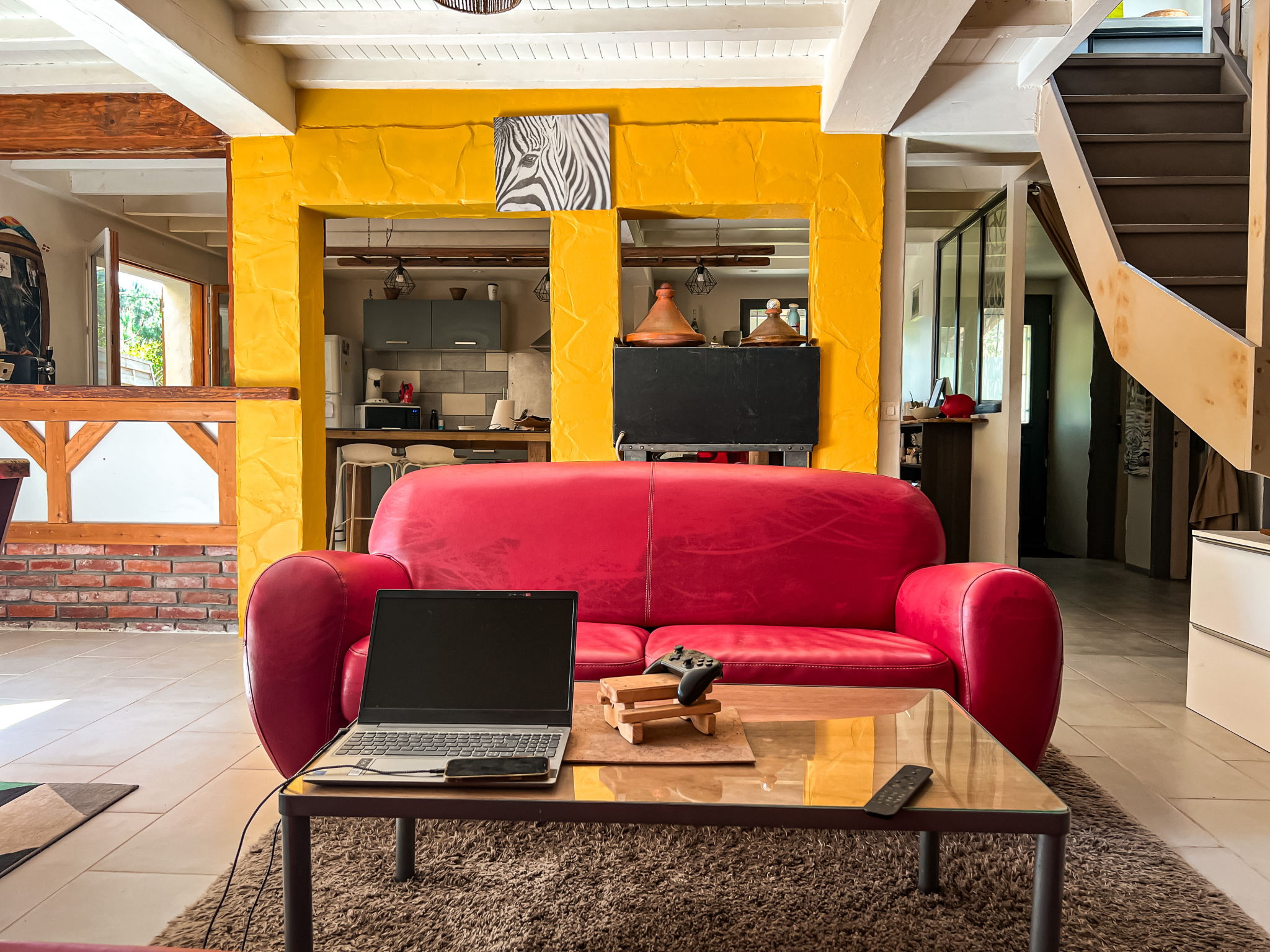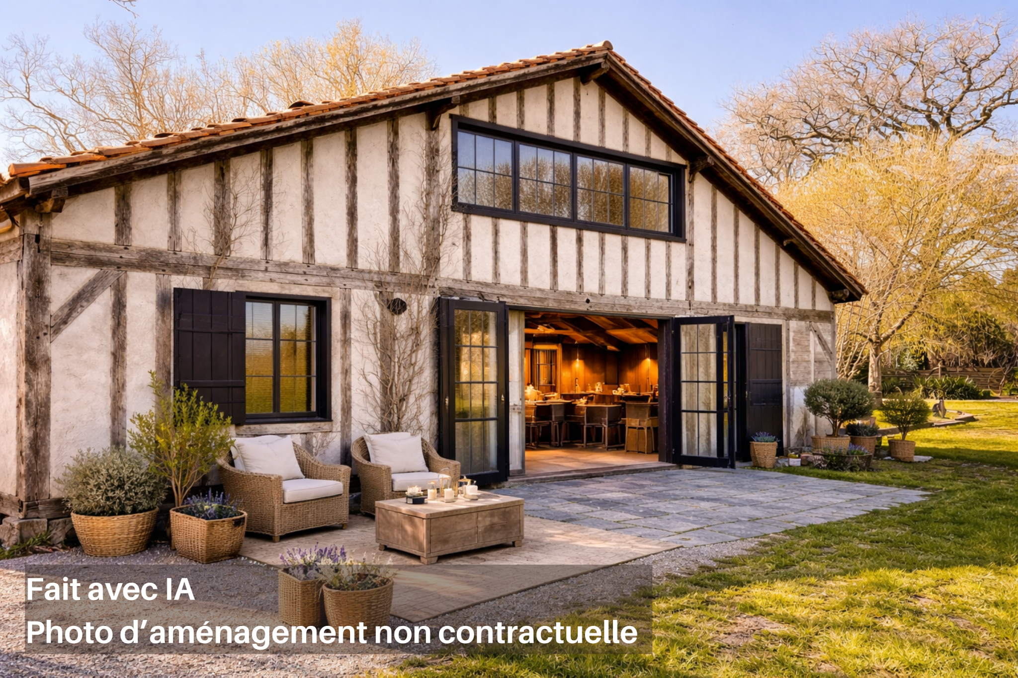 Une dépendance en bois, actuellement en cours de transformation, constitue un véritable atout. Avec ses volumes impressionnants, sa charpente apparente et sa mezzanine, elle offre un potentiel exceptionnel pour la création d'un loft indépendant, d'un gîte ou d'un espace de vie complémentaire mêlant cuisine, atelier et lieu de réception dans un esprit authentique et contemporain.