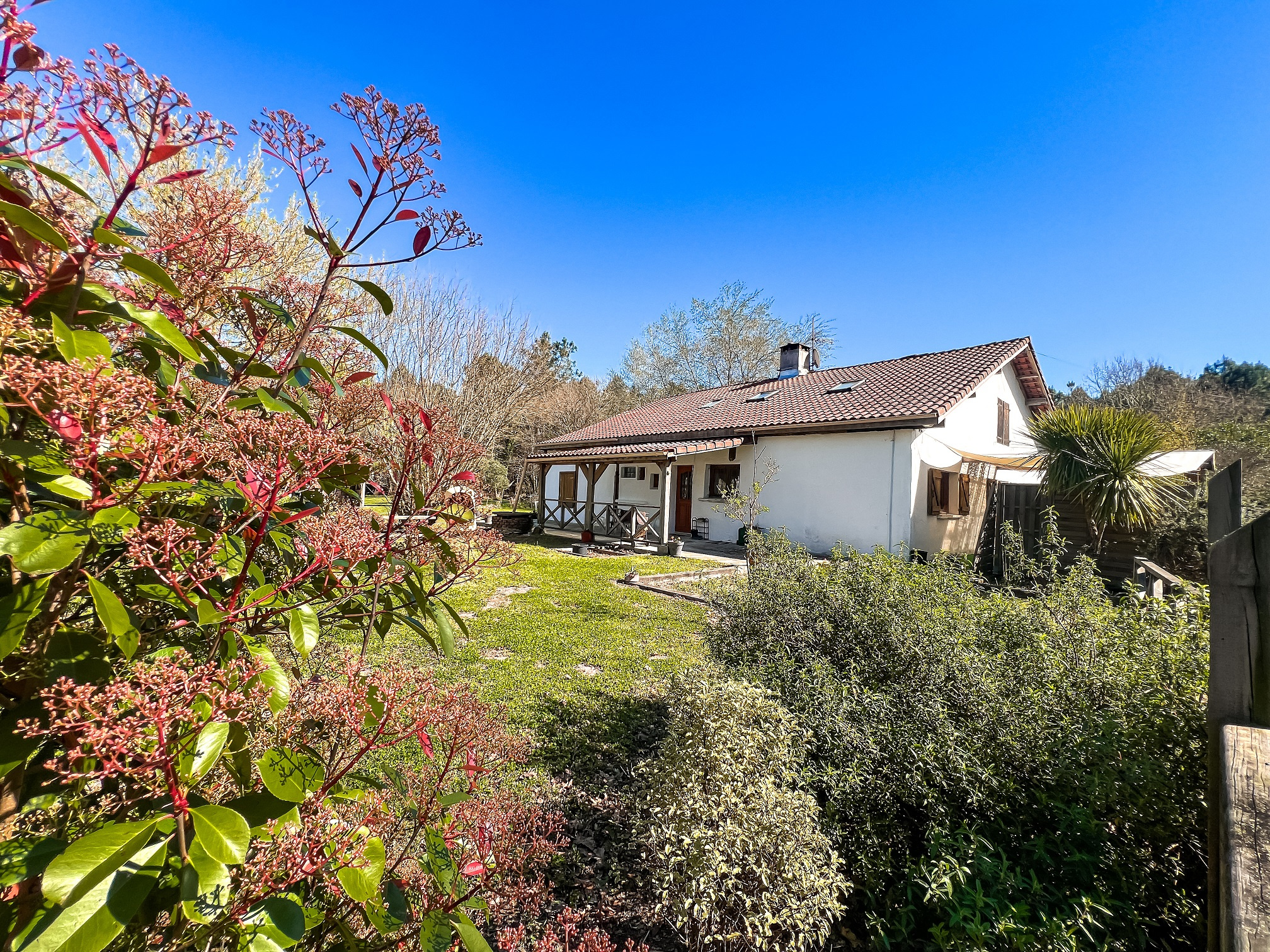 L'ensemble est implanté sur un terrain arboré d'environ 5000 m2, avec piscine hors-sol et plage aménagée, ainsi qu'un poulailler, renforçant le caractère champêtre et paisible du lieu.