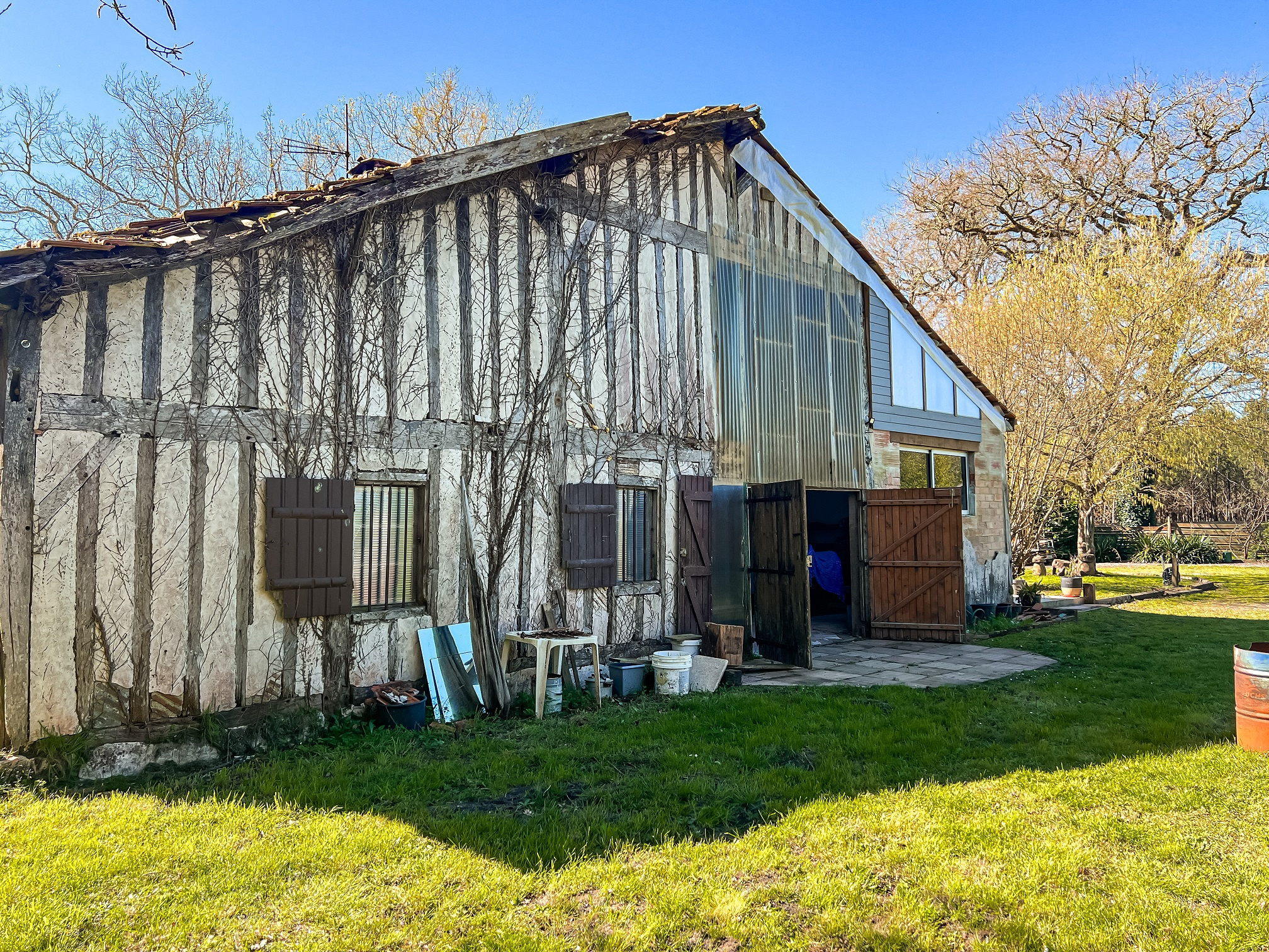 À l'arrière, une partie encore à rénover laisse libre cours à vos projets, qu'il s'agisse d'agrandissement ou de réaménagement selon vos envies.