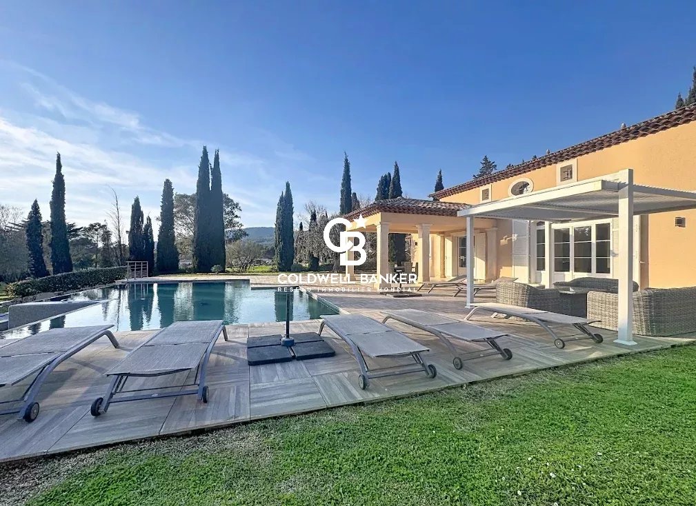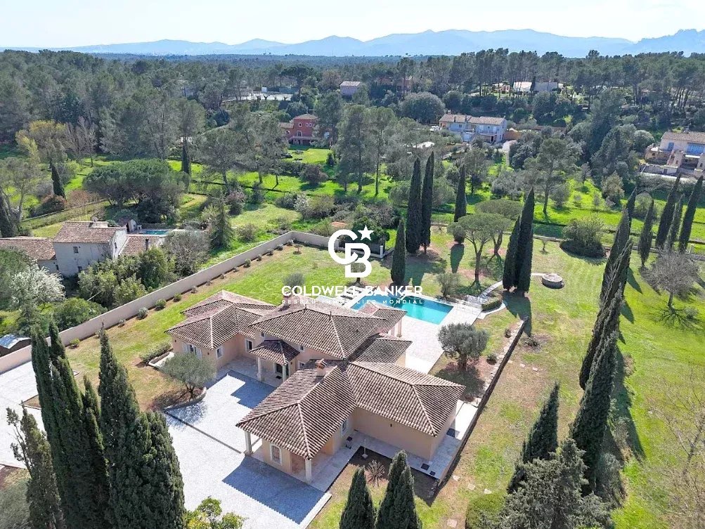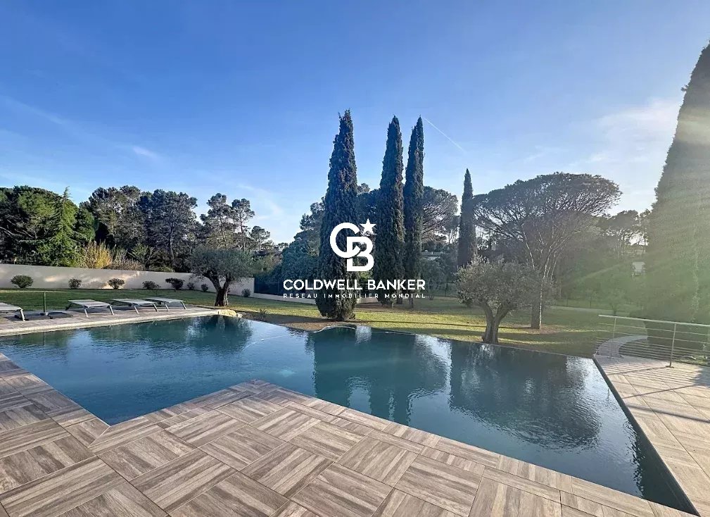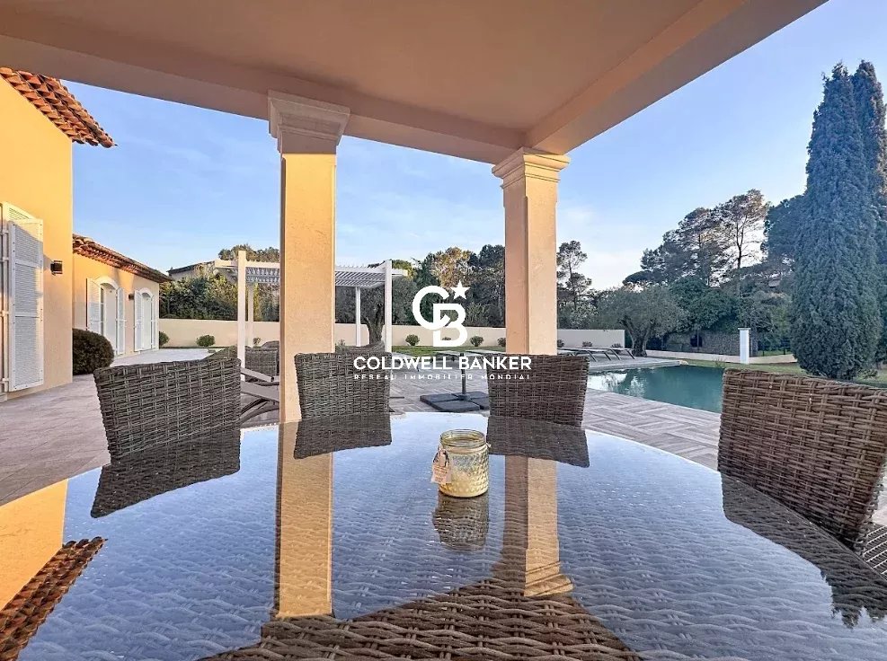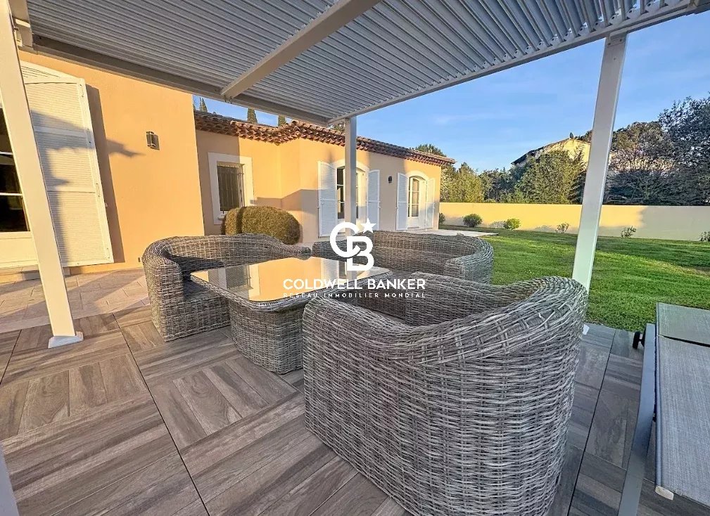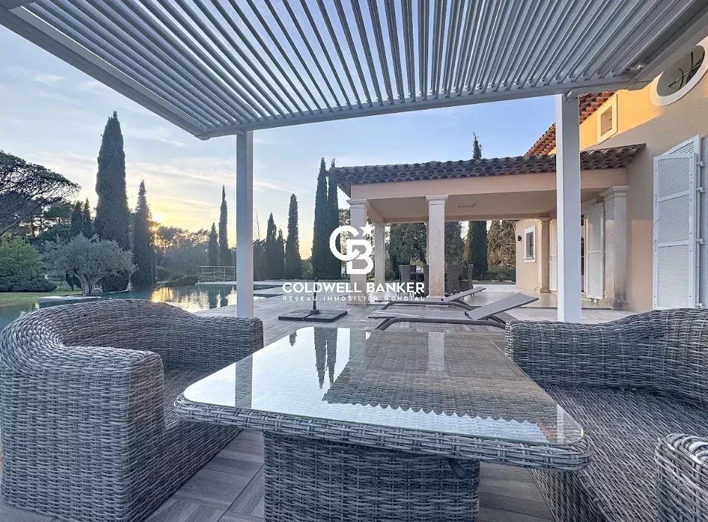 Nichée au cœur d’un environnement verdoyant et apaisant, cette superbe villa contemporaine de style néo-provençal d’environ 270 m² habitables séduit par son raffinement, son confort et la qualité de ses prestations. Construite en 2006, de plain-pied, elle s’inscrit dans un domaine privé et sécurisé offrant calme et sérénité. Dès l’entrée, un portail électrique ouvre sur une splendide allée menant à un carport, un garage spacieux et une entrée élégante. Les vastes espaces de vie, totalisant 93 m², s’étendent autour d’un séjour lumineux aux plafonds cathédrale de 3,20 m, d’une salle à manger conviviale et d’une cuisine moderne entièrement équipée, sublimée par de larges baies vitrées en aluminium double vitrage donnant accès à la terrasse plein sud et à la piscine (12 × 6 m) en béton banché finition mosaïque. L’espace nuit se compose de quatre chambres, dont une somptueuse suite parentale bénéficiant de sa propre salle de bains avec baignoire et douche. Une chambre avec sa salle d’eau privative et deux autres chambres se partagent une élégante salle de bain commune. L’ensemble est complété par trois toilettes indépendants et un cellier fonctionnel, offrant confort et praticité au quotidien. Le terrain paysager, savamment entretenu, bénéficie d’un système d’arrosage automatique alimenté par une source naturelle. Prestations haut de gamme : chauffage et rafraîchissement par le sol, pompe à chaleur, carrelage en grès pleine masse, finitions raffinées et matériaux de grande qualité. Une adresse exclusive et rare, parfaitement intégrée dans un cadre naturel privilégié, où modernité, authenticité et sérénité se conjuguent harmonieusement. Une propriété d’exception, idéale pour les amateurs d’élégance, de confort et de tranquillité. Plaquette sur demande. Vanessa SOARES - Williams AUREILLE Prestige Real Estate consultant - Global Luxury Brand Spécialist Esterel Realty Coldwell Banker - Coldwell Banker Europe +33 (0) 672 852 109 +33 (0) 682 822 539 vanessa.soares@coldwellbanker.fr williams.aureille@coldwellbanker.fr