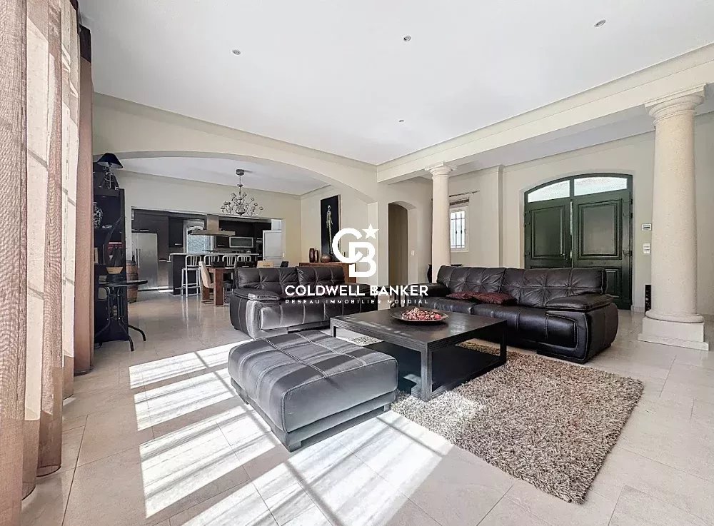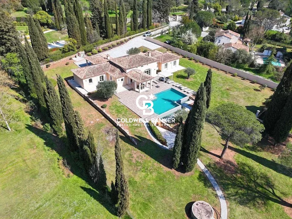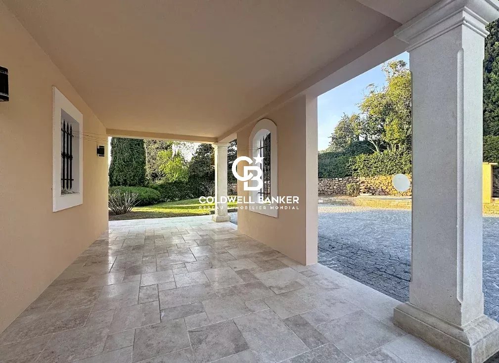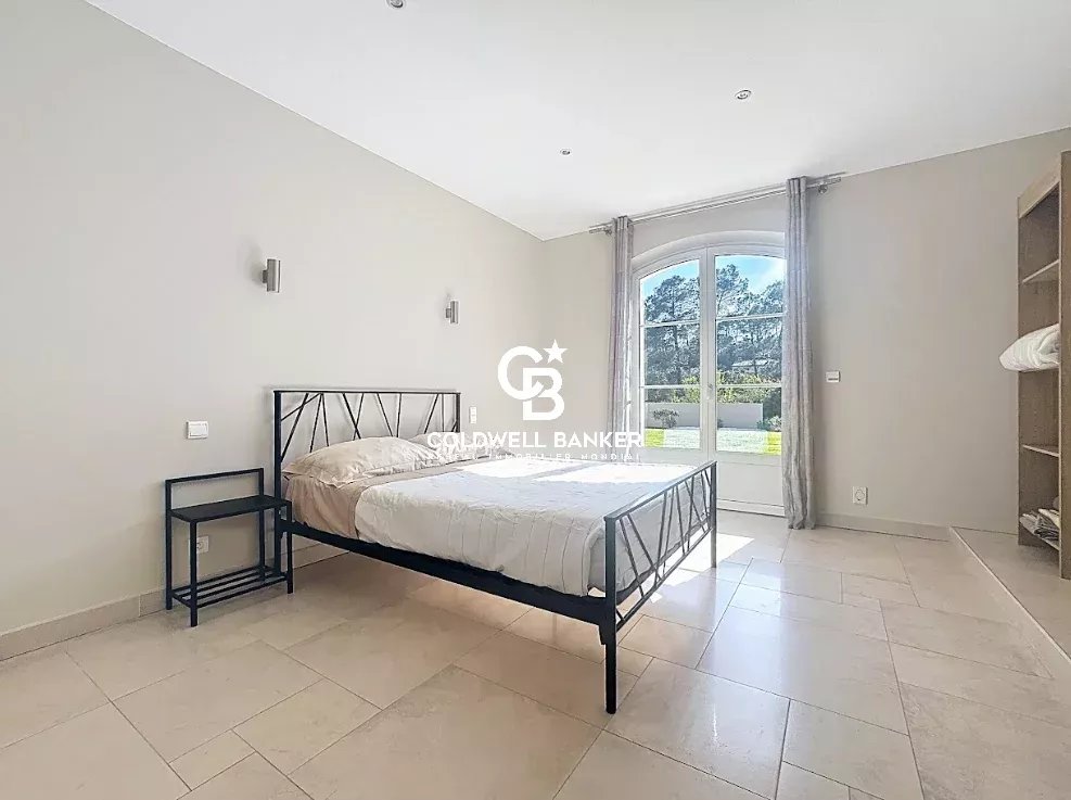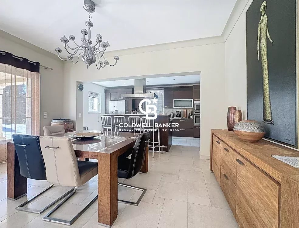 Nichée au cœur d’un environnement verdoyant et apaisant, cette superbe villa contemporaine de style néo-provençal d’environ 270 m² habitables séduit par son raffinement, son confort et la qualité de ses prestations. Construite en 2006, de plain-pied, elle s’inscrit dans un domaine privé et sécurisé offrant calme et sérénité. Dès l’entrée, un portail électrique ouvre sur une splendide allée menant à un carport, un garage spacieux et une entrée élégante. Les vastes espaces de vie, totalisant 93 m², s’étendent autour d’un séjour lumineux aux plafonds cathédrale de 3,20 m, d’une salle à manger conviviale et d’une cuisine moderne entièrement équipée, sublimée par de larges baies vitrées en aluminium double vitrage donnant accès à la terrasse plein sud et à la piscine (12 × 6 m) en béton banché finition mosaïque. L’espace nuit se compose de quatre chambres, dont une somptueuse suite parentale bénéficiant de sa propre salle de bains avec baignoire et douche. Une chambre avec sa salle d’eau privative et deux autres chambres se partagent une élégante salle de bain commune. L’ensemble est complété par trois toilettes indépendants et un cellier fonctionnel, offrant confort et praticité au quotidien. Le terrain paysager, savamment entretenu, bénéficie d’un système d’arrosage automatique alimenté par une source naturelle. Prestations haut de gamme : chauffage et rafraîchissement par le sol, pompe à chaleur, carrelage en grès pleine masse, finitions raffinées et matériaux de grande qualité. Une adresse exclusive et rare, parfaitement intégrée dans un cadre naturel privilégié, où modernité, authenticité et sérénité se conjuguent harmonieusement. Une propriété d’exception, idéale pour les amateurs d’élégance, de confort et de tranquillité. Plaquette sur demande. Vanessa SOARES - Williams AUREILLE Prestige Real Estate consultant - Global Luxury Brand Spécialist Esterel Realty Coldwell Banker - Coldwell Banker Europe +33 (0) 672 852 109 +33 (0) 682 822 539 vanessa.soares@coldwellbanker.fr williams.aureille@coldwellbanker.fr