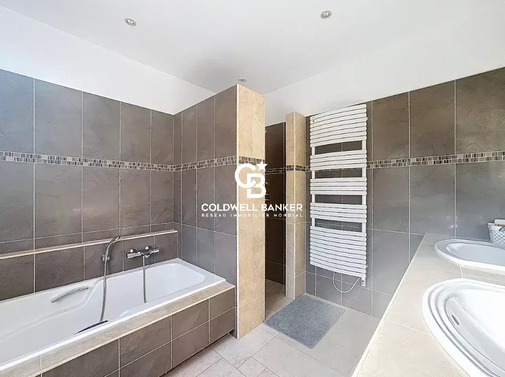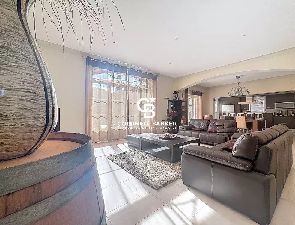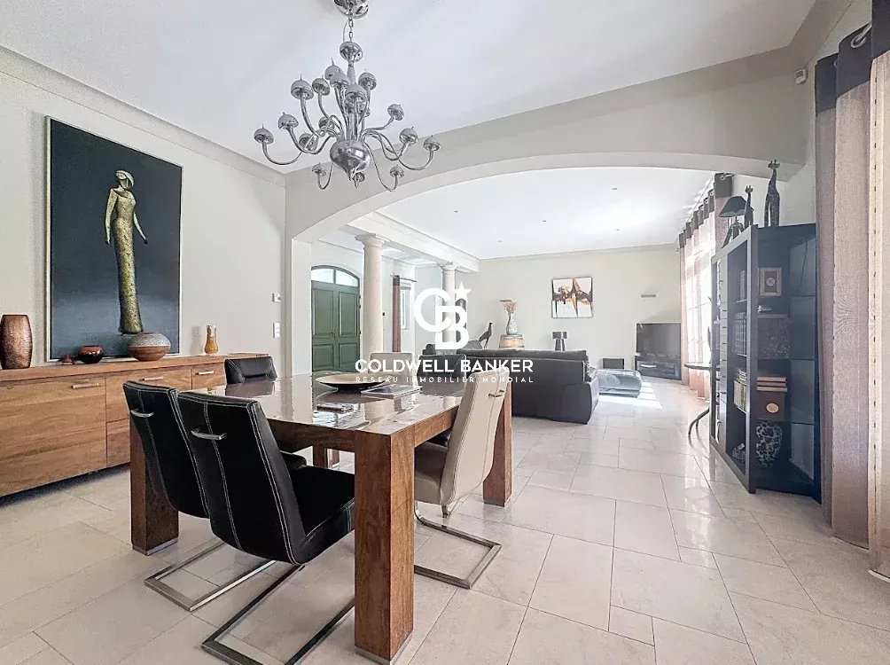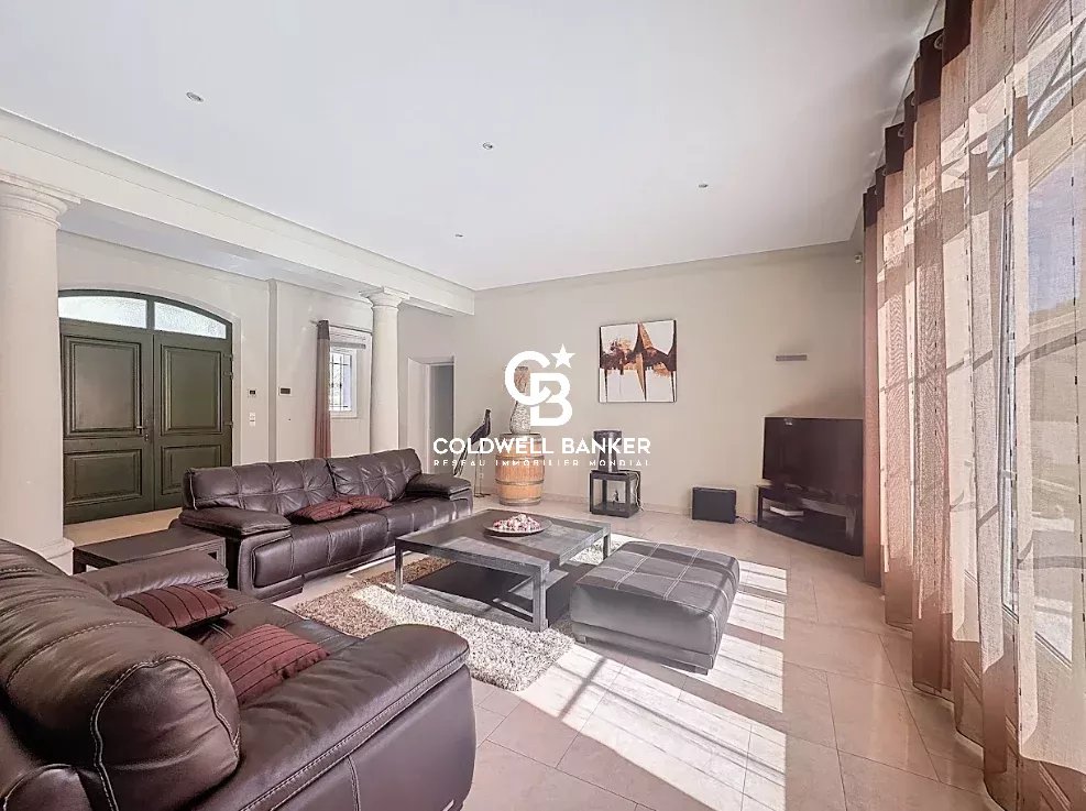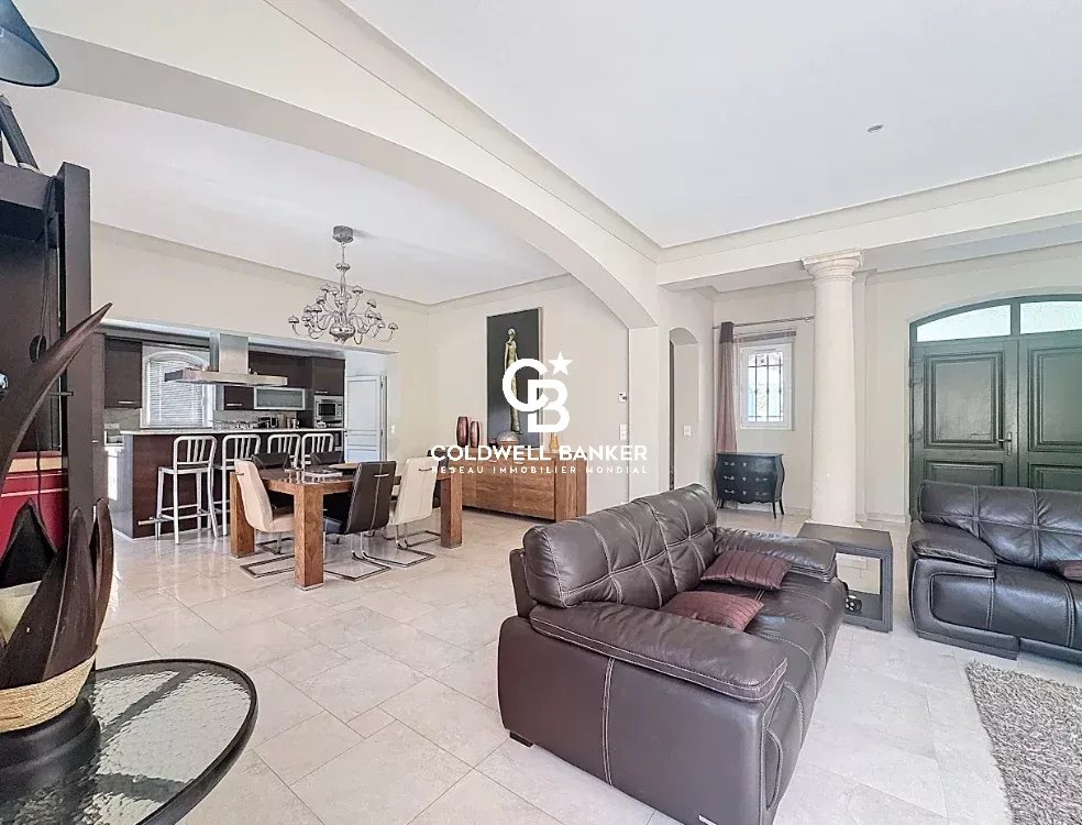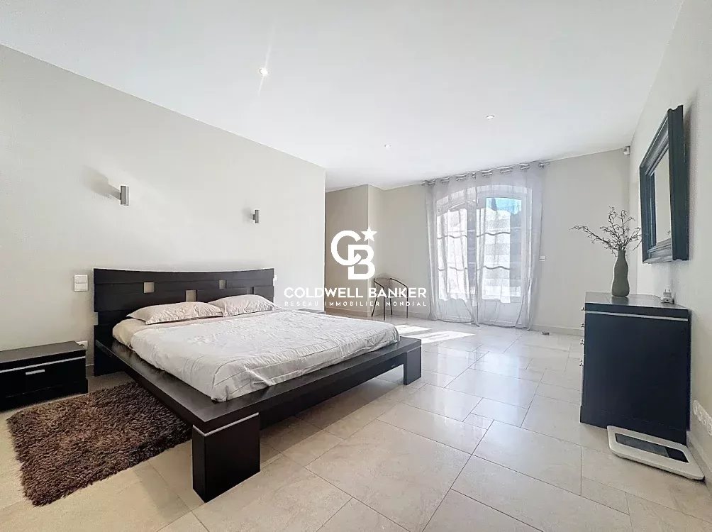 Nichée au cœur d’un environnement verdoyant et apaisant, cette superbe villa contemporaine de style néo-provençal d’environ 270 m² habitables séduit par son raffinement, son confort et la qualité de ses prestations. Construite en 2006, de plain-pied, elle s’inscrit dans un domaine privé et sécurisé offrant calme et sérénité. Dès l’entrée, un portail électrique ouvre sur une splendide allée menant à un carport, un garage spacieux et une entrée élégante. Les vastes espaces de vie, totalisant 93 m², s’étendent autour d’un séjour lumineux aux plafonds cathédrale de 3,20 m, d’une salle à manger conviviale et d’une cuisine moderne entièrement équipée, sublimée par de larges baies vitrées en aluminium double vitrage donnant accès à la terrasse plein sud et à la piscine (12 × 6 m) en béton banché finition mosaïque. L’espace nuit se compose de quatre chambres, dont une somptueuse suite parentale bénéficiant de sa propre salle de bains avec baignoire et douche. Une chambre avec sa salle d’eau privative et deux autres chambres se partagent une élégante salle de bain commune. L’ensemble est complété par trois toilettes indépendants et un cellier fonctionnel, offrant confort et praticité au quotidien. Le terrain paysager, savamment entretenu, bénéficie d’un système d’arrosage automatique alimenté par une source naturelle. Prestations haut de gamme : chauffage et rafraîchissement par le sol, pompe à chaleur, carrelage en grès pleine masse, finitions raffinées et matériaux de grande qualité. Une adresse exclusive et rare, parfaitement intégrée dans un cadre naturel privilégié, où modernité, authenticité et sérénité se conjuguent harmonieusement. Une propriété d’exception, idéale pour les amateurs d’élégance, de confort et de tranquillité. Plaquette sur demande. Vanessa SOARES - Williams AUREILLE Prestige Real Estate consultant - Global Luxury Brand Spécialist Esterel Realty Coldwell Banker - Coldwell Banker Europe +33 (0) 672 852 109 +33 (0) 682 822 539 vanessa.soares@coldwellbanker.fr williams.aureille@coldwellbanker.fr