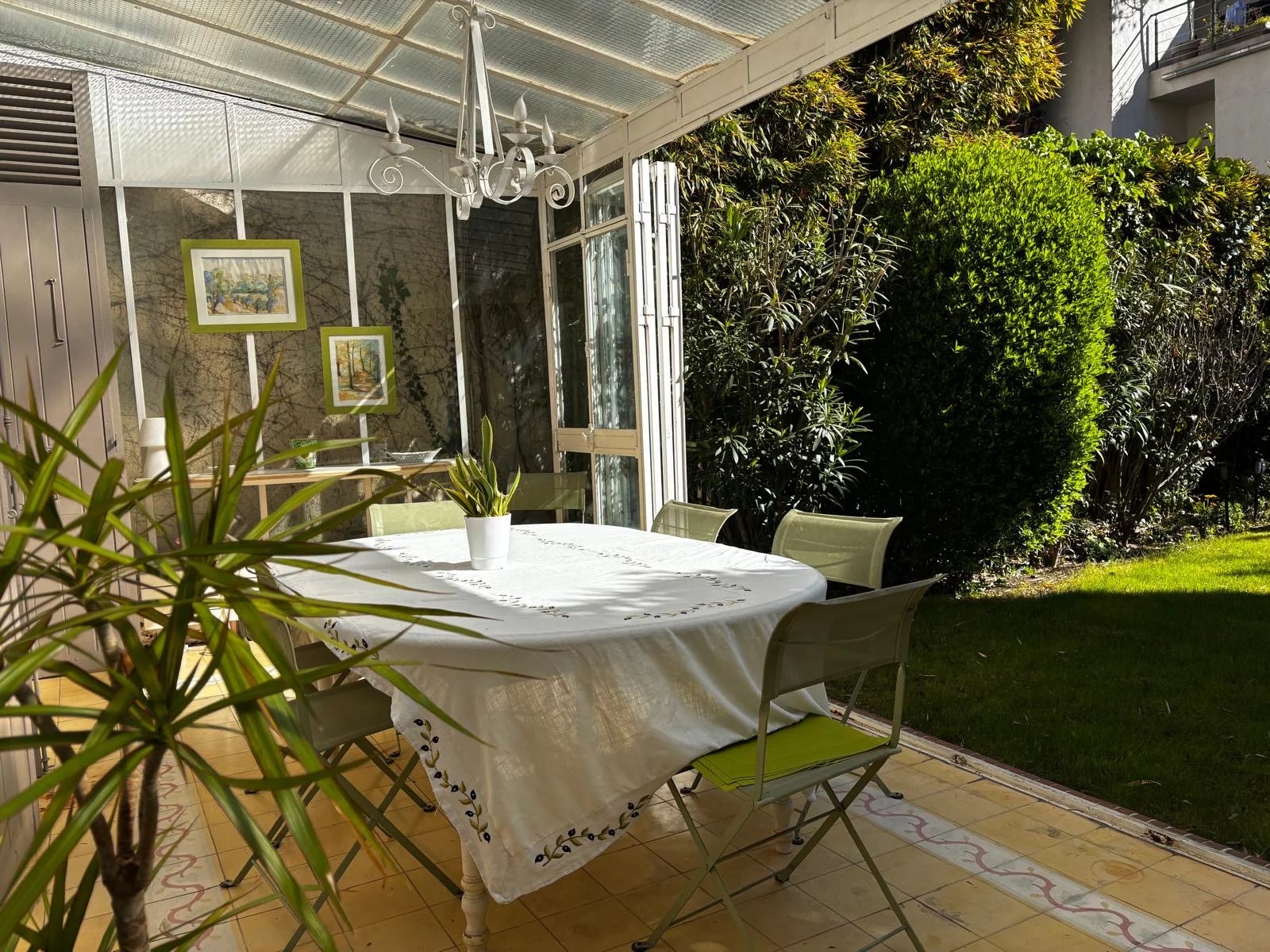 Nichée au cœur du très recherché Carré d’Or à Marseille 13008, entre Périer et Rodocanachi, cette maison de caractère du début du XXe siècle ne laisse pas indifférent. Dès les premiers instants, on ressent tout le charme de l’ancien mêlé à une atmosphère chaleureuse et élégante. Développant environ 164 m², la maison séduit par ses volumes généreux, notamment une belle hauteur sous plafond de 3 mètres, et une luminosité agréable grâce à son exposition Sud-Est. Au rez-de-chaussée, l’espace de vie s’organise autour d’un salon convivial avec cheminée, ouvert sur une cuisine moderne. Une véranda prolonge harmonieusement cet ensemble et s’ouvre entièrement sur le jardin, idéal pour recevoir ou profiter du quotidien en toute sérénité. À l’étage, deux chambres offrent une vue apaisante sur le jardin, dont une avec dressing. Une grande salle de bain avec WC ainsi qu’un WC indépendant complètent ce niveau. Sous les toits, une suite parentale pleine de charme, avec poutres apparentes, propose un espace d’environ 40 m², accompagné d’une salle d’eau et de nombreux rangements. Dans un environnement très calme et à proximité immédiate du prado, le jardin arboré d’environ 130 m² constitue un véritable havre de paix, à l’abri des regards, avec un agréable salon extérieur et une dépendance bureau. Côté entrée, un garage à moto et cave complète se bien. possibilité de louer un box tout près. Une adresse rare, à deux pas des commodités du Prado, des transports, des écoles et des commerces. Contactez David au 06/85/36/95/24 pour plus de renseignements.