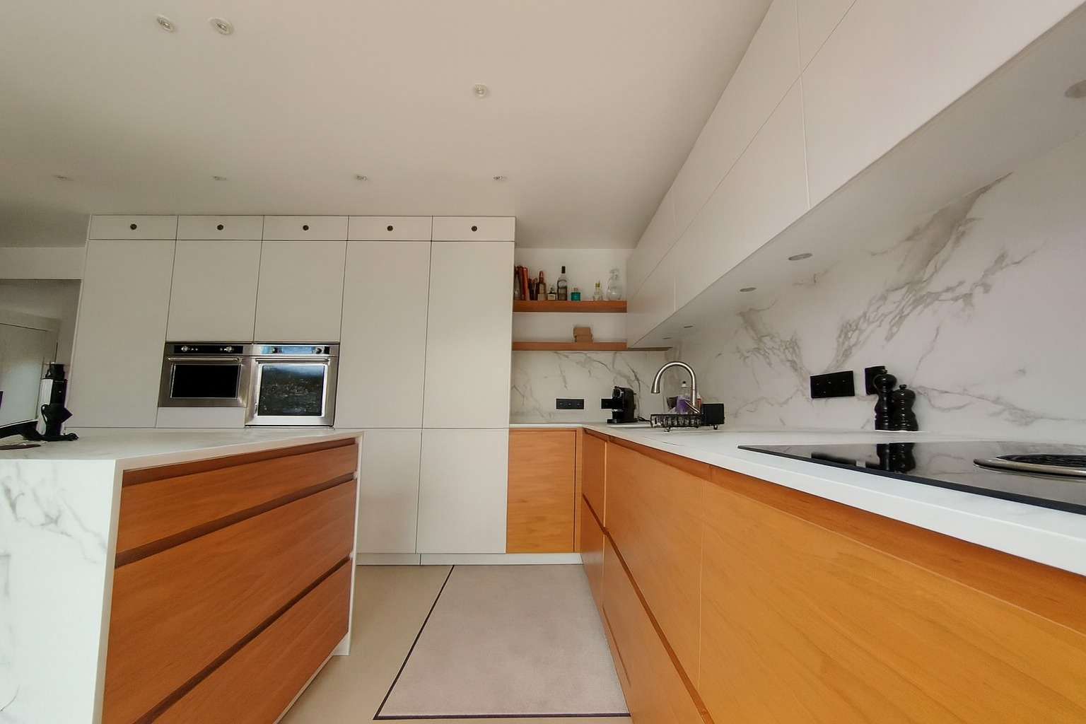 La cuisine professionnelle, conçue pour les amateurs de gastronomie, allie fonctionnalité et design contemporain, offrant un véritable lieu de partage.