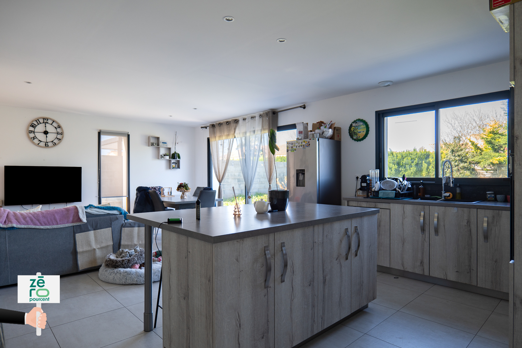 Cette maison 4 pièces d'environ 90 m2 habitables séduit par son agencement moderne, sa luminosité et ses prestations de qualité : Belle pièce de vie lumineuse de près de 40 m2 ; Cuisine aménagée et équipée ouverte sur séjour / salon ; 3 chambres spacieuses de plus de 10 m2, dont une avec dressing ; Salle d'eau moderne avec douche à l'italienne et double vasque ; WC indépendant ; Buanderie fonctionnelle ; Garage attenant