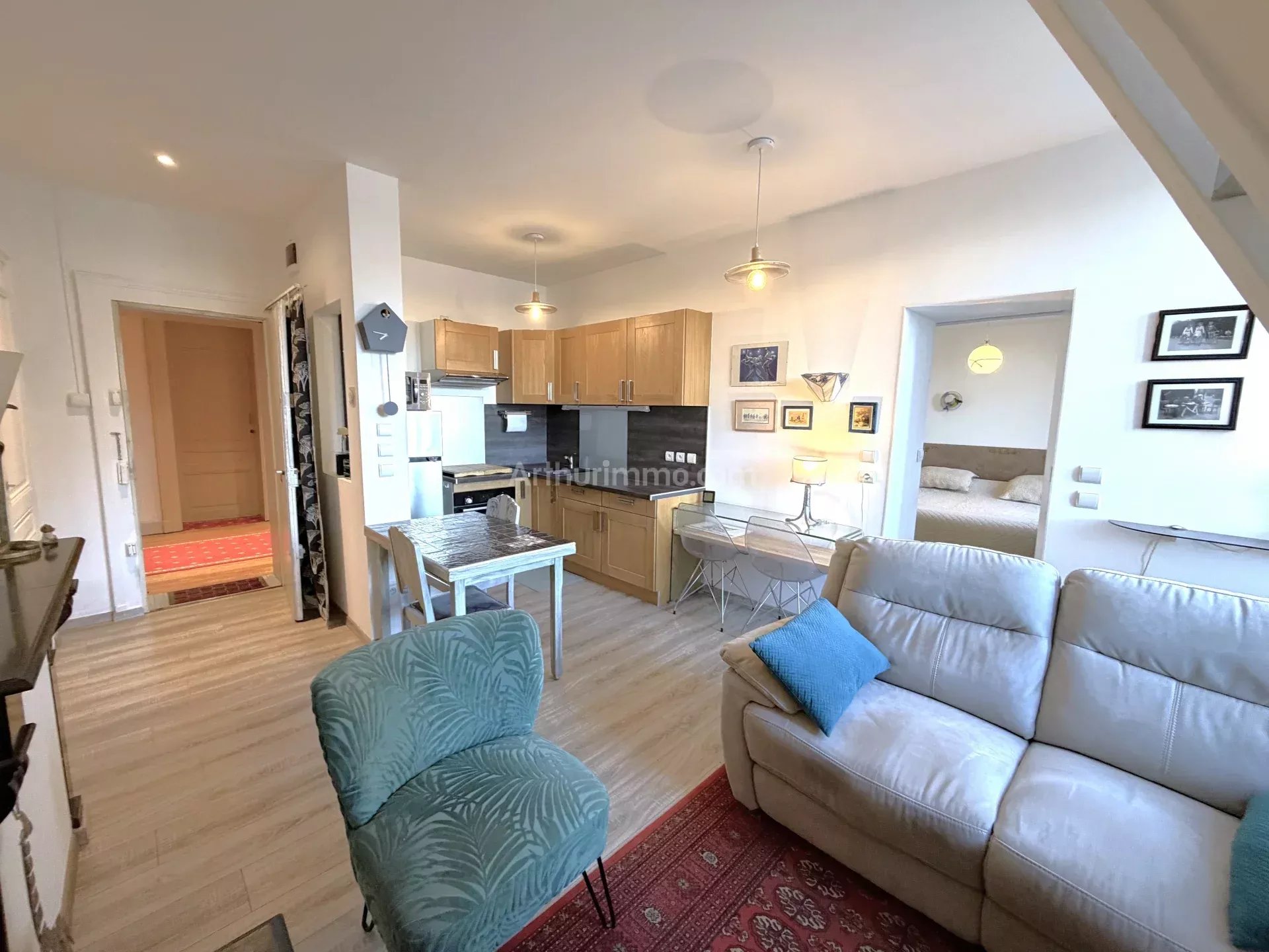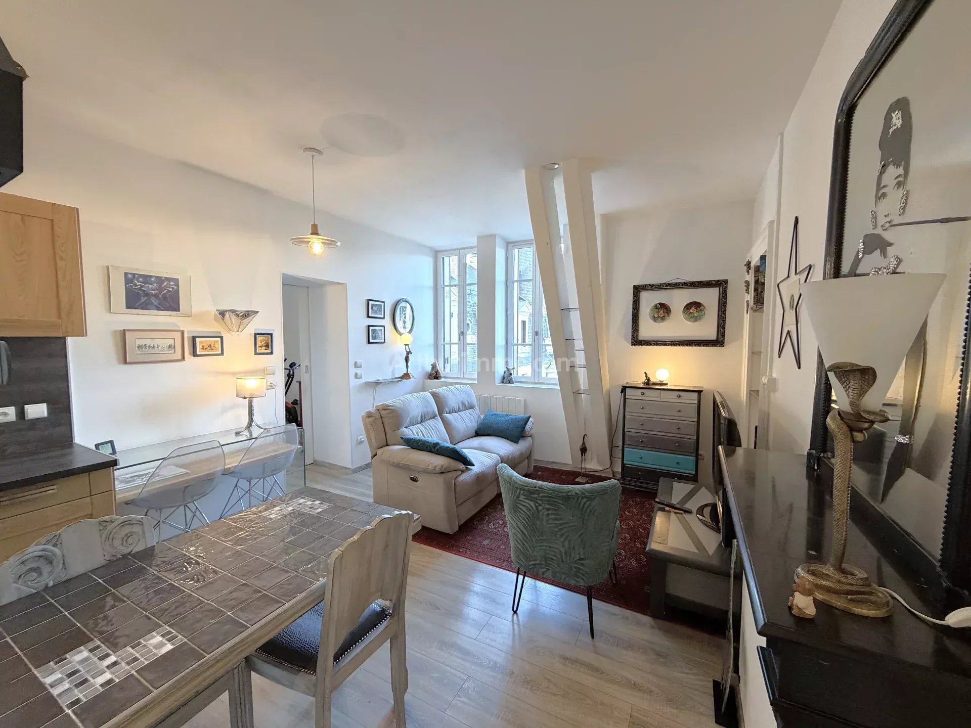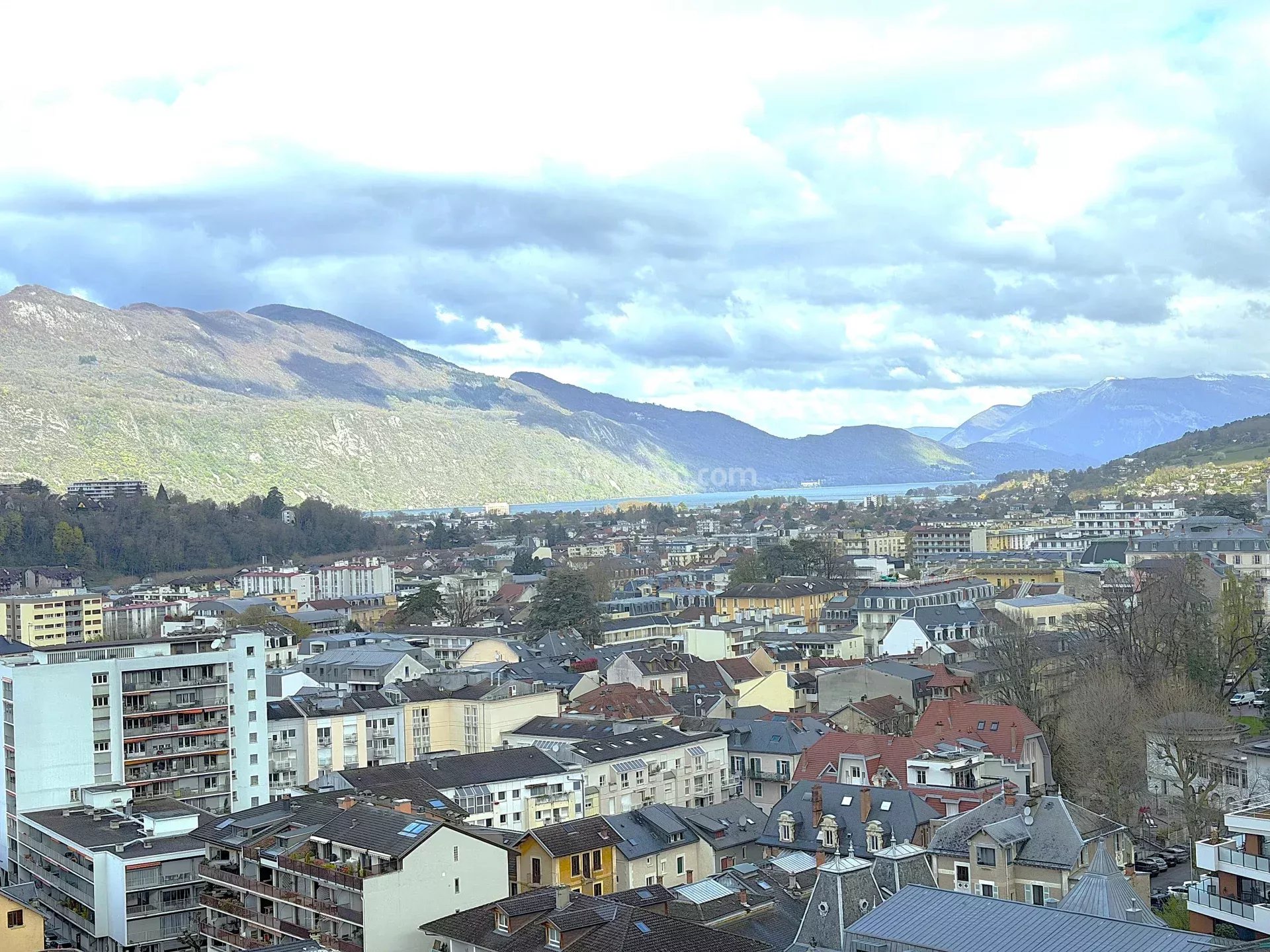 Orienté plein ouest, avec sa vue sur les magnifiques jardins à la française et la ville au premier plan, le la dent du chat et le lac en toile de fond, cet appartement T2 bis constituant la réunion de 2 lots de copropriété comprend une pièce de vie avec sam/salon cuisine de 21m² une belle chambre de 12,6m², une petite salle de bains. De l’autre côté du couloir, une pièce de 9,5m² avec l’eau et l’électricité donnant sur le Revard. (Ancien dortoir type coin montagne actuellement à usage de cellier).