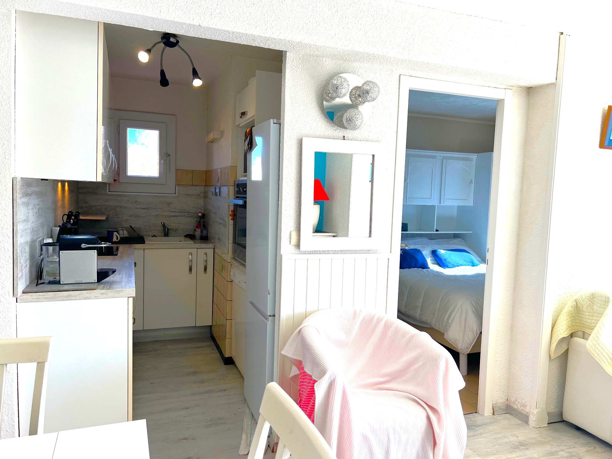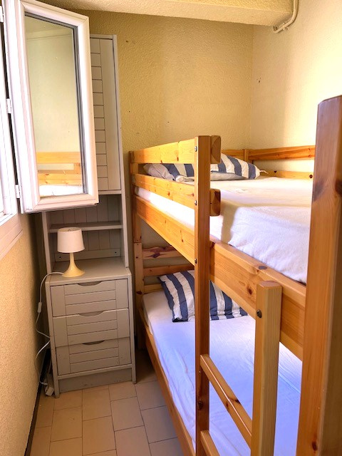 Cap d'agde - Vue canal et mer - Les Argonautes - Appartement 2 pièces cabine lumineux et entièrement rénové, exposé à l'est, d'une surface habitable de 41 m2. Situé au 2 ème étage avec ascenseur; dans une résidence avec piscine, composé d'une chambre avec 1 lit pour deux personnes , d'un coin cabine avec 2 lits superposés, d'un séjour avec un canapé et téléviseur. Salle d'eau avec douche et lave linge, wc séparés, cuisine avec lave-vaisselle, réfrigérateur compartiment congélateur, four, micro-onde, four, plaques induction. Vue port et mer. Piscine. Parking privé. Cellier. Proche de la plage des Falaises. Idéalement situé entre le port et le Vieux Port.