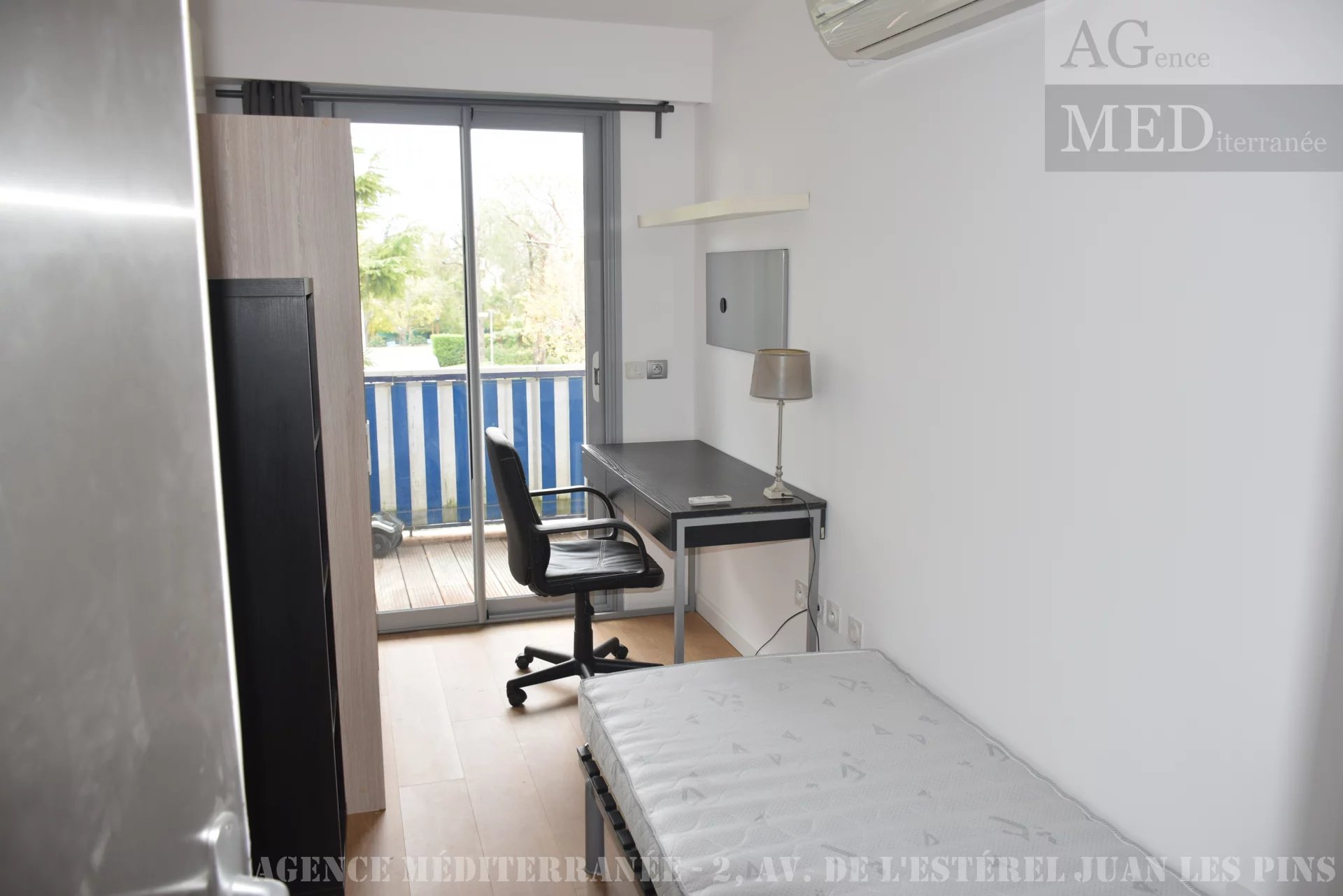 LOCATION meublée à l'année ! Antibes - les breguières - Dans une résidence sécurisée avec gardien et espaces verts , 3 pièces meublé traversant en dernier étage, comprenant un séjour avec cuisine ouverte donnant sur une terrasse ouest, 2 chambres avec placards donnant sur une terrasse Est, salle de douche avec WC. Appartement totalement climatisé. Parking + cave