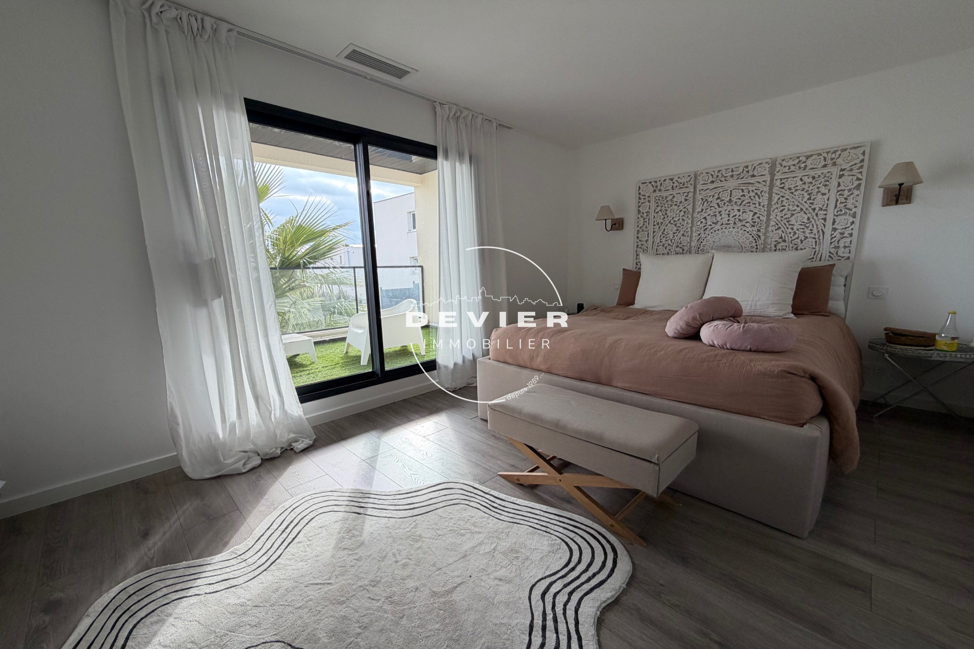 Prestations de qualité : domotique (volets...), fermeture centralisée, visiophone, climatisation gainée, ballon d'eau chaude thermodynamique, adoucisseur, vitrage double avec gaz argon...