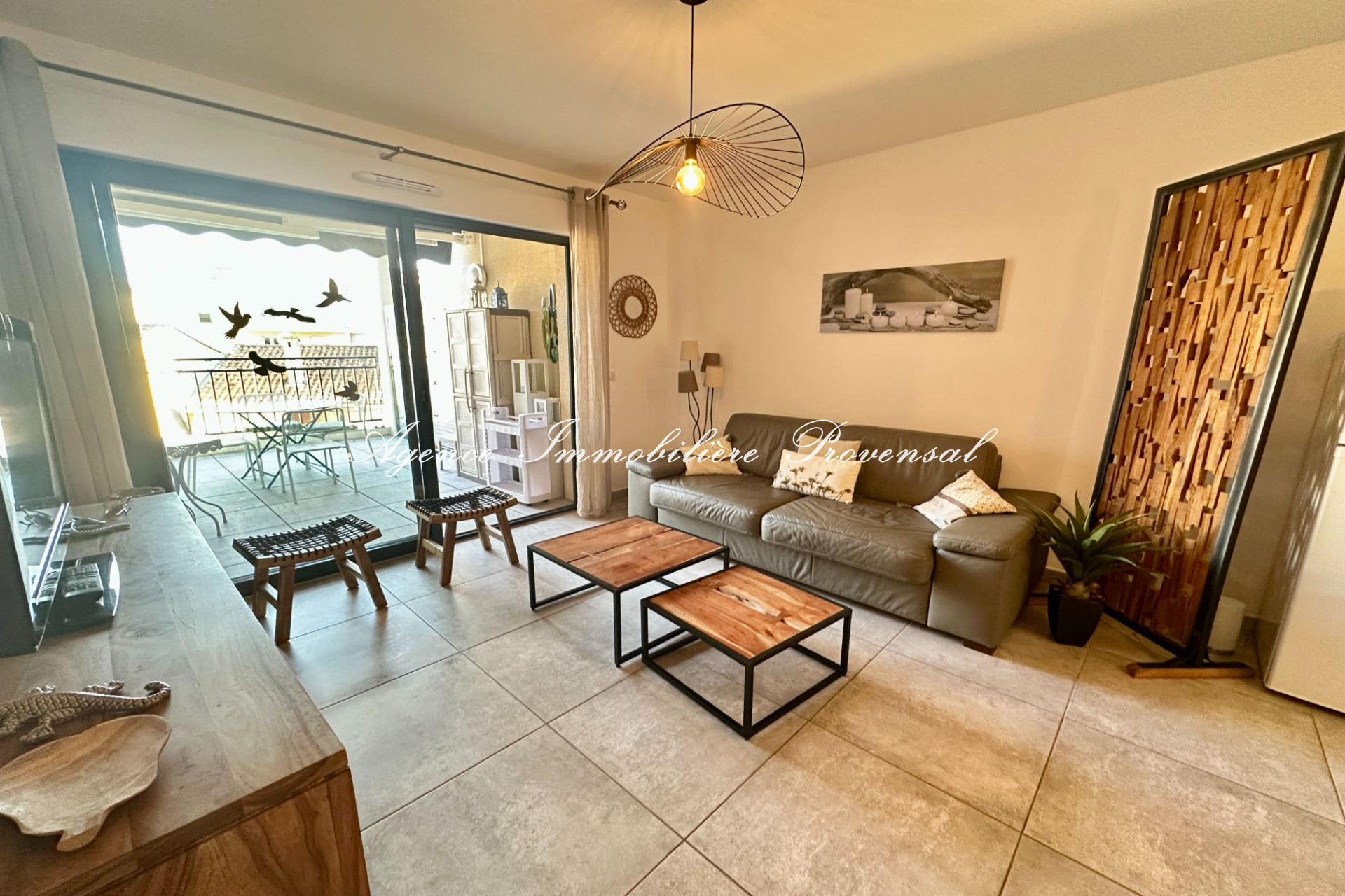 Il se compose d'une entrée, d'un séjour avec canapé lit, d'un coin cuisine équipé, d'une chambre, d'une salle de douche avec W.C et d'une belle terrasse de 11 m², avec store électrique. Situation calme. Exposition Est. Parking privé. Appartement entièrement climatisé.