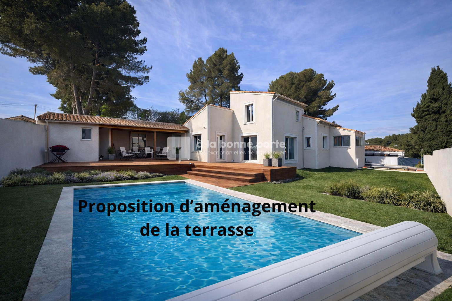 Possibilité d'aménager une terrasse couverte pour créer une continuité directe entre la maison et la piscine.