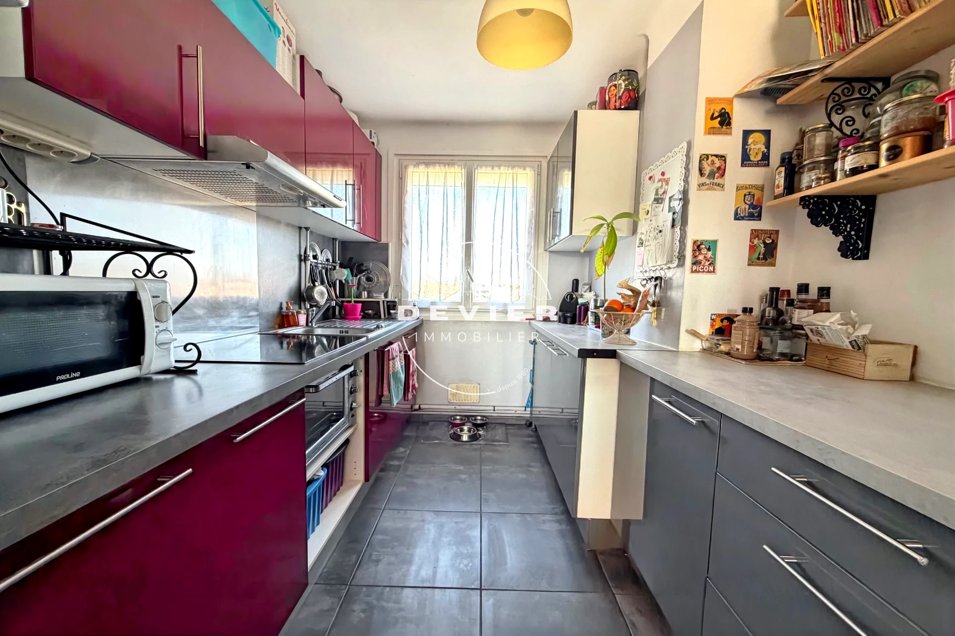 Appartement de type T3 situé au dernier étage (4/4), traversant, composé d'une pièce principale exposée Sud/ Sud-Est, avec vue sur le parc de la résidence, balcon de 4m², une cuisine aménagée, un dégagement desservant 2 chambres, un véritable dressing, une salle de bains, wc, un séchoir (actuellement compté en hors carrez, de 1.91 m²).