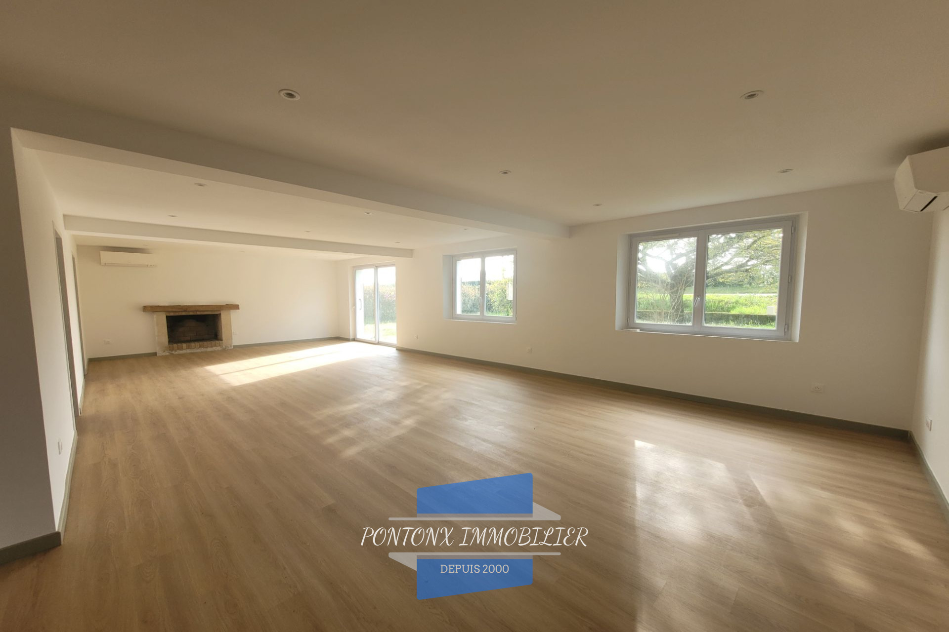 Pontonx, Charmante maison individuelle rénovée d'une surface de 136 m² sur 2 niveaux de type F5. Cette belle propriété offre un grand séjour de 60 m², une cuisine équipée avec tout le confort moderne, chauffage par climatisation réversible, 4 chambres dont 1 en rdc et 2 points d'eau. L'état intérieur est excellent, prêt à vous accueillir que ce soit pour un projet de résidence principale, investissement locatif ou pour développer votre activité professionnelle (professions libérales, artisanales, commerciales) Le terrain de 1062 m² offre beaucoup d'espace pour le jardinage ou la détente. L'assainissement est relié au tout à l'égout. DPE : B.