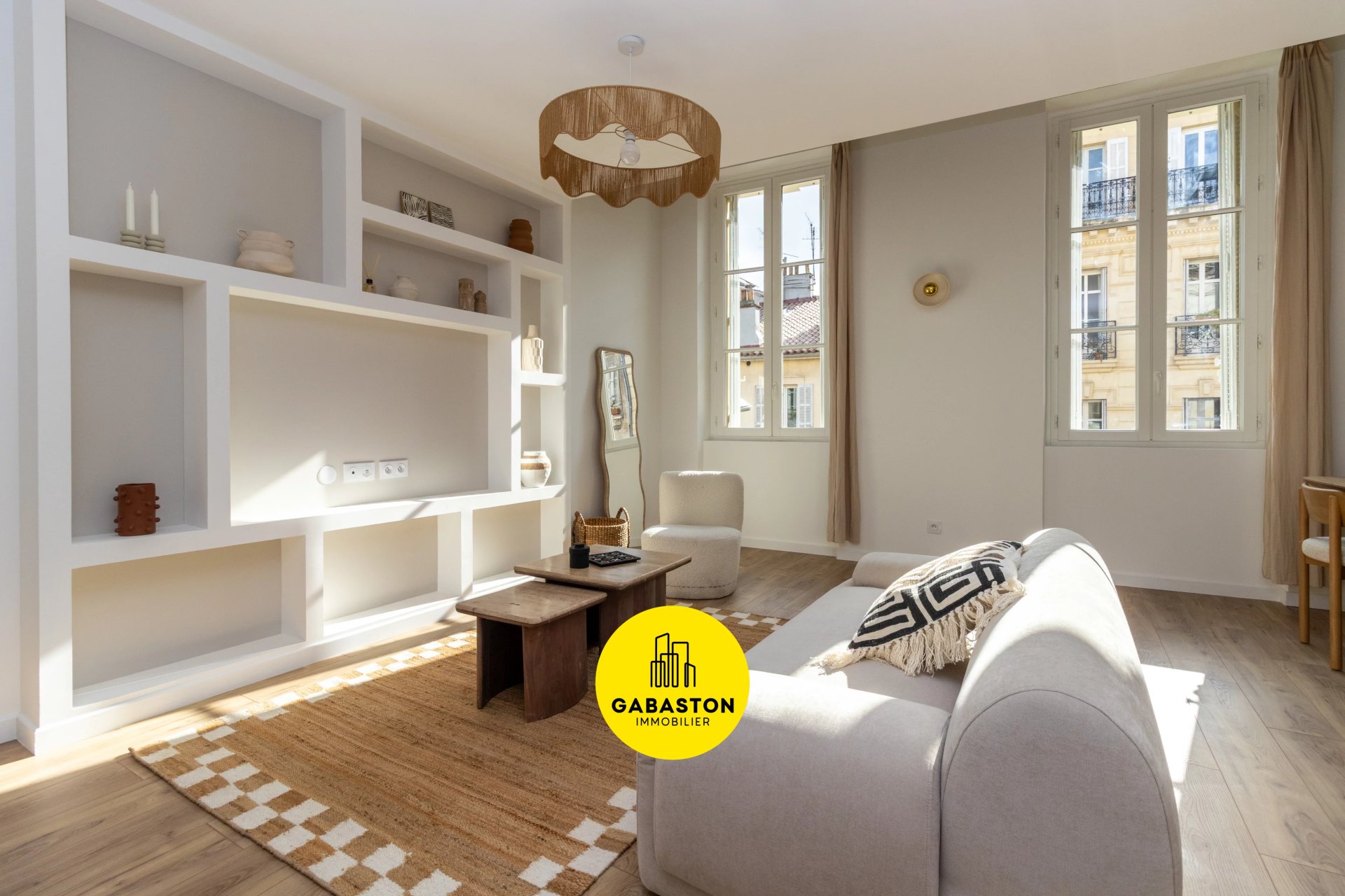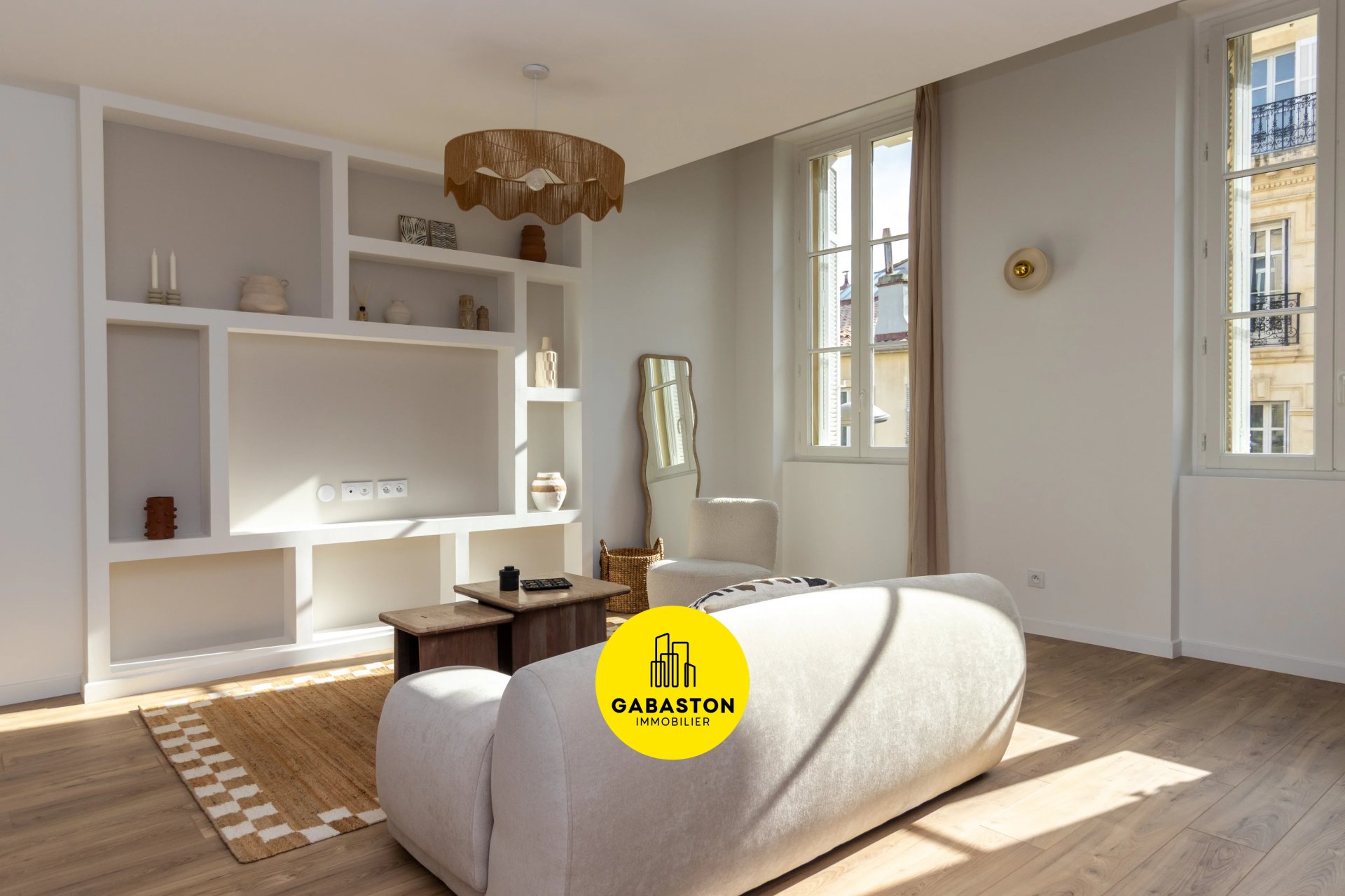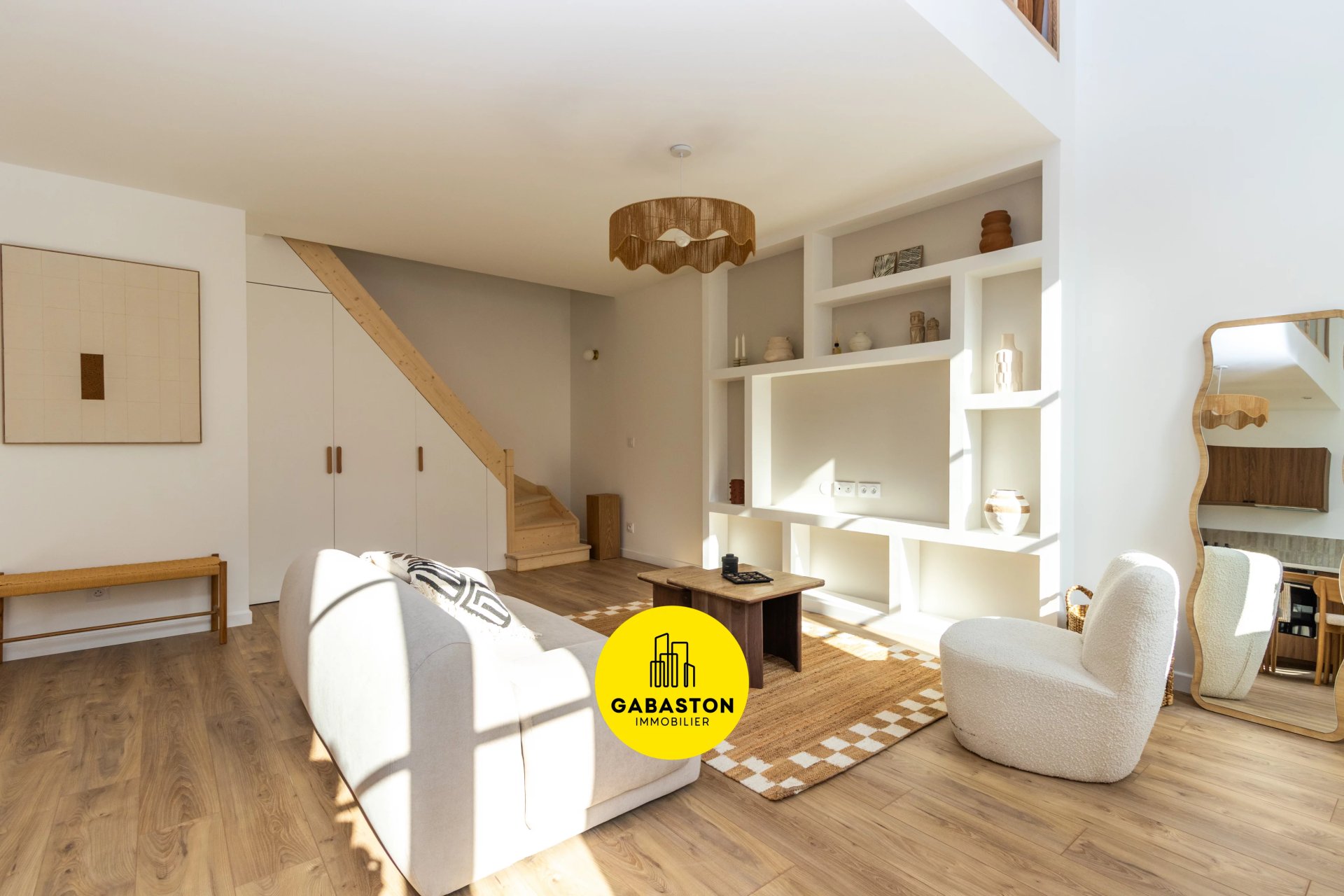 Le salon dégage une atmosphère chaleureuse et élégante. sublimée par une rénovation soignée avec des matériaux de qualité. où chaque détail a été pensé avec goût.