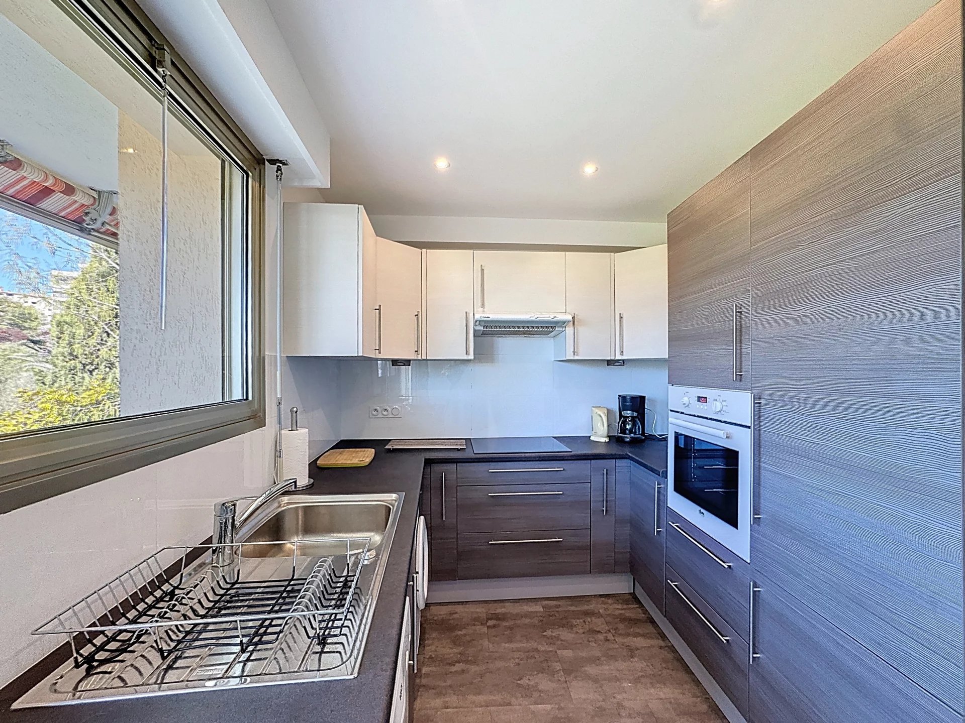 RARO IN VENDITA In un residence protetto, con servizio di portineria e giardino alberato con piscina, al 2° e ultimo piano con ascensore, splendido trilocale d'angolo con doppia esposizione, dotato di un'ampia terrazza circolare che circonda l'intero appartamento, esposto a sud e a ovest, con vista aperta sui giardini, sulla piscina e uno scorcio sul mare. Luminoso e dotato di ampi spazi, l'appartamento offre un piacevole soggiorno e due camere da letto, ciascuna con terrazza, bagno o doccia en suite. Venduto con un garage chiuso molto ampio (21,47 m²) e una grande cantina (7 m²), questo immobile raro merita una visita senza indugio. Le informazioni sui rischi a cui è esposto questo immobile sono disponibili sul sito Géorisques: georisques.gouv.fr