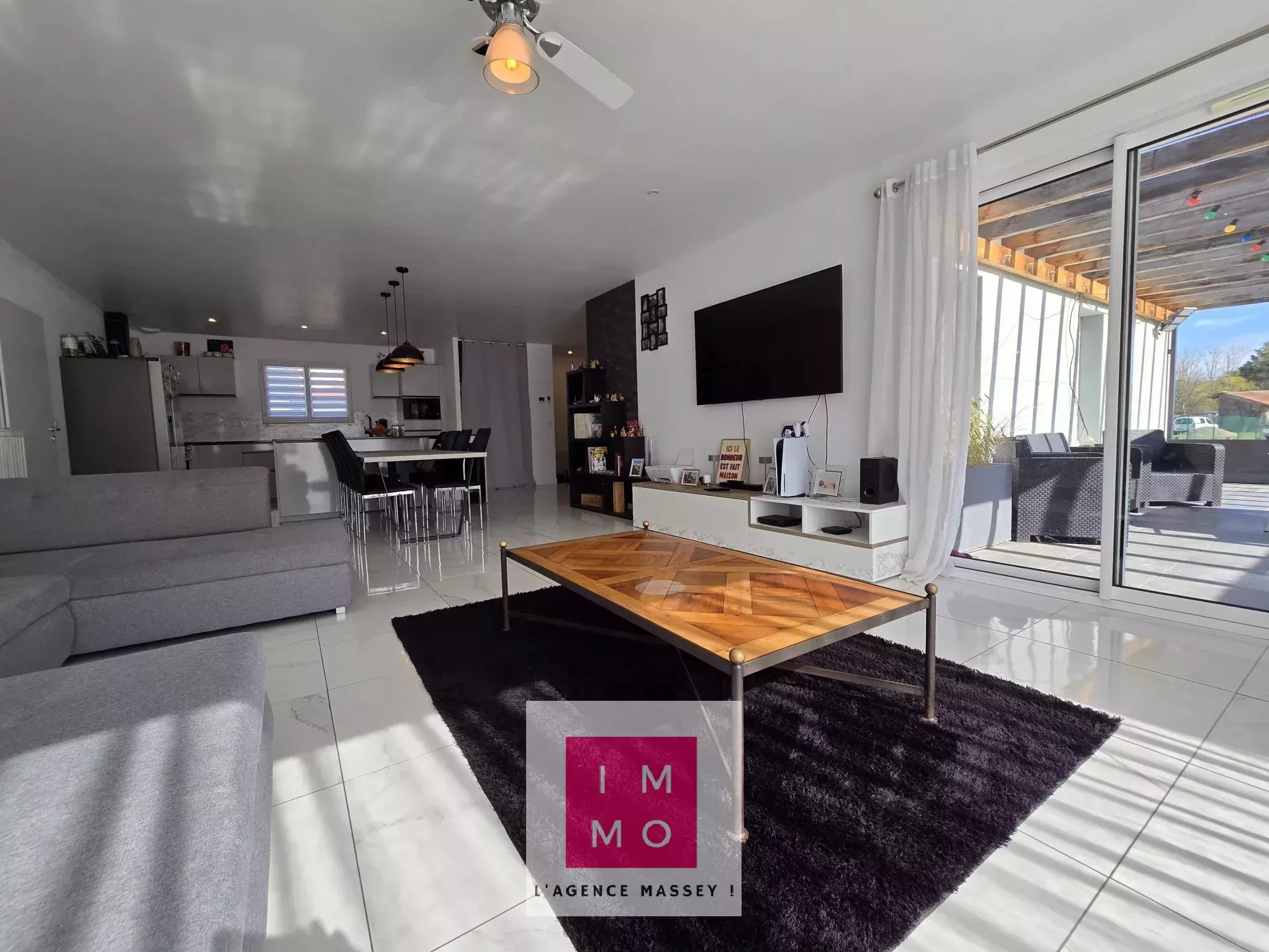- le grand salon bien éclairé par deux baies vitrées dont une donnant accès à la grande terrasse.