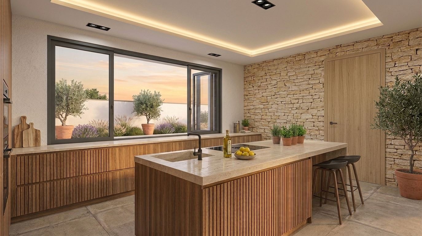 Découvrez ce projet clés en main d'une villa contemporaine de plain-pied avec toit-terrasse, conçue pour créer un véritable foyer chaleureux. Idéalement exposée au sud, elle bénéficie d'un ensoleillement optimal et d'une circulation fluide entre ses volumes intérieurs et l'extérieur. L'espace de vie s'ouvre sur une vaste terrasse de plus de 40 m² et une piscine 6x3 au sel avec régulateur pH. Côté nuit, la maison offre quatre belles chambres, dont une suite parentale. Les prestations de qualité subliment l'ensemble : carrelage grand format 1x1m, peintures achevées, un grand garage de 30 m² ainsi que des places de stationnement.