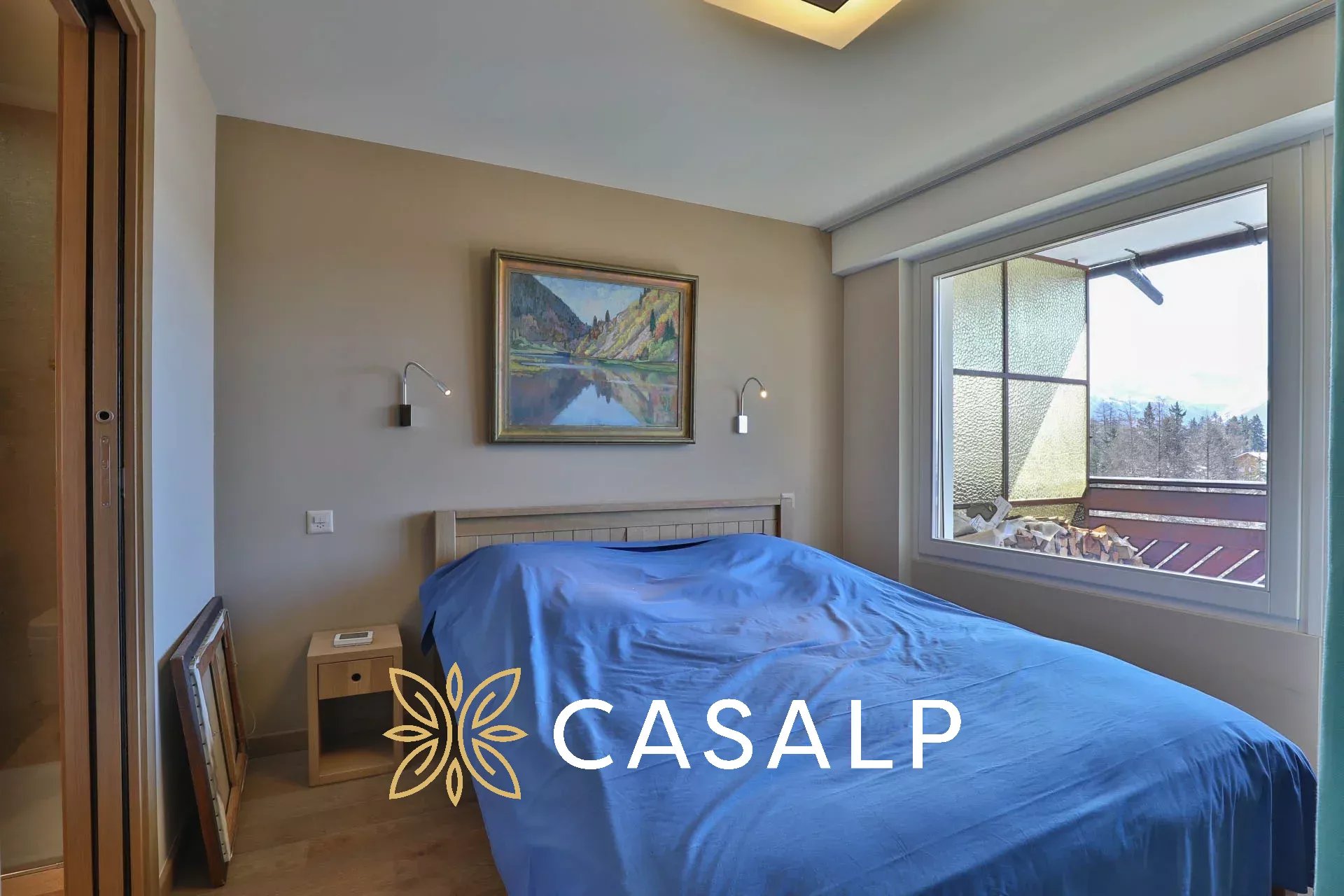Situato nel cuore di Crans, questo appartamento di 3,5 locali di 86 m2 interno beneficia di una posizione privilegiata, nelle immediate vicinanze di negozi, ristoranti, impianti di risalita e di tutti i servizi. Situato al terzo piano, questa proprietà affascina per i suoi spazi generosi, luminosità e la distribuzione particolarmente confortevole. Si compone di: Un ampio soggiorno luminoso con accesso diretto al balcone Una cucina aperta perfettamente integrata nello spazio abitativo Una camera matrimoniale molto grande con bagno adiacente con doccia, vasca, WC, bidet e lavabo Una seconda camera anch'essa en suite con bagno (doccia, WC e lavabo) Un WC per gli ospiti L'appartamento gode di un grande balcone angolare di 36 m2 esposto a sud con una parte rivolta a ovest, offrendo un'ottima esposizione al sole e uno spazio esterno piacevole. Una cantina e due locali per gli sci completano questa proprietà. Un garage box elettrificato è disponibile a un costo supplementare di CHF 60'000. Questa proprietà rappresenta una bella opportunità, sia come residenza principale, pied-à-terre o investimento in montagna. Il residence è in S.I.