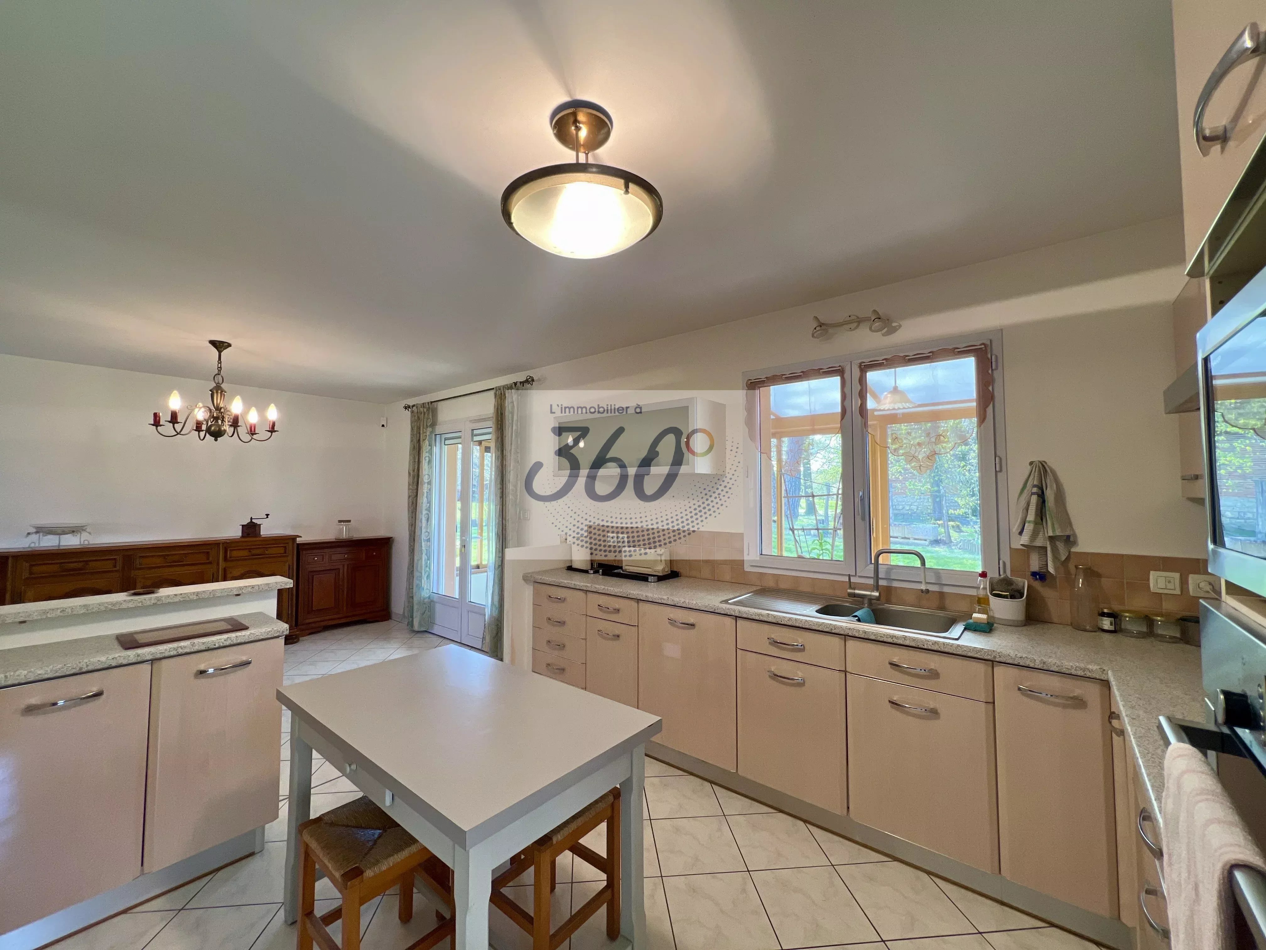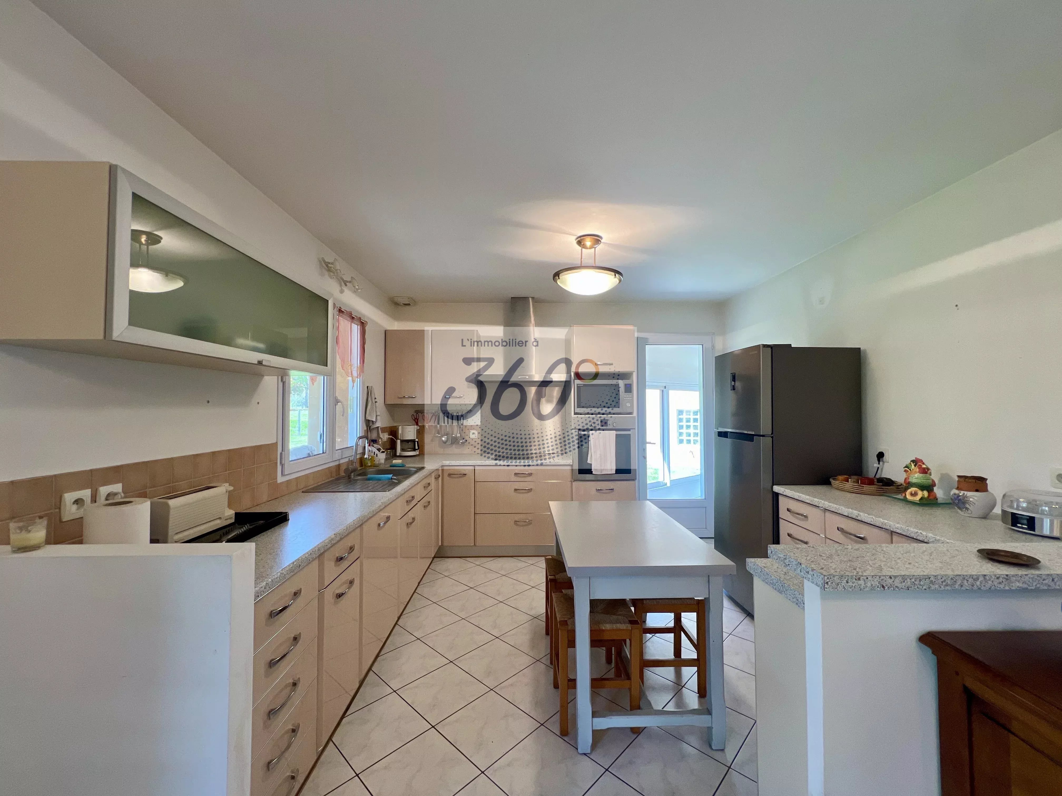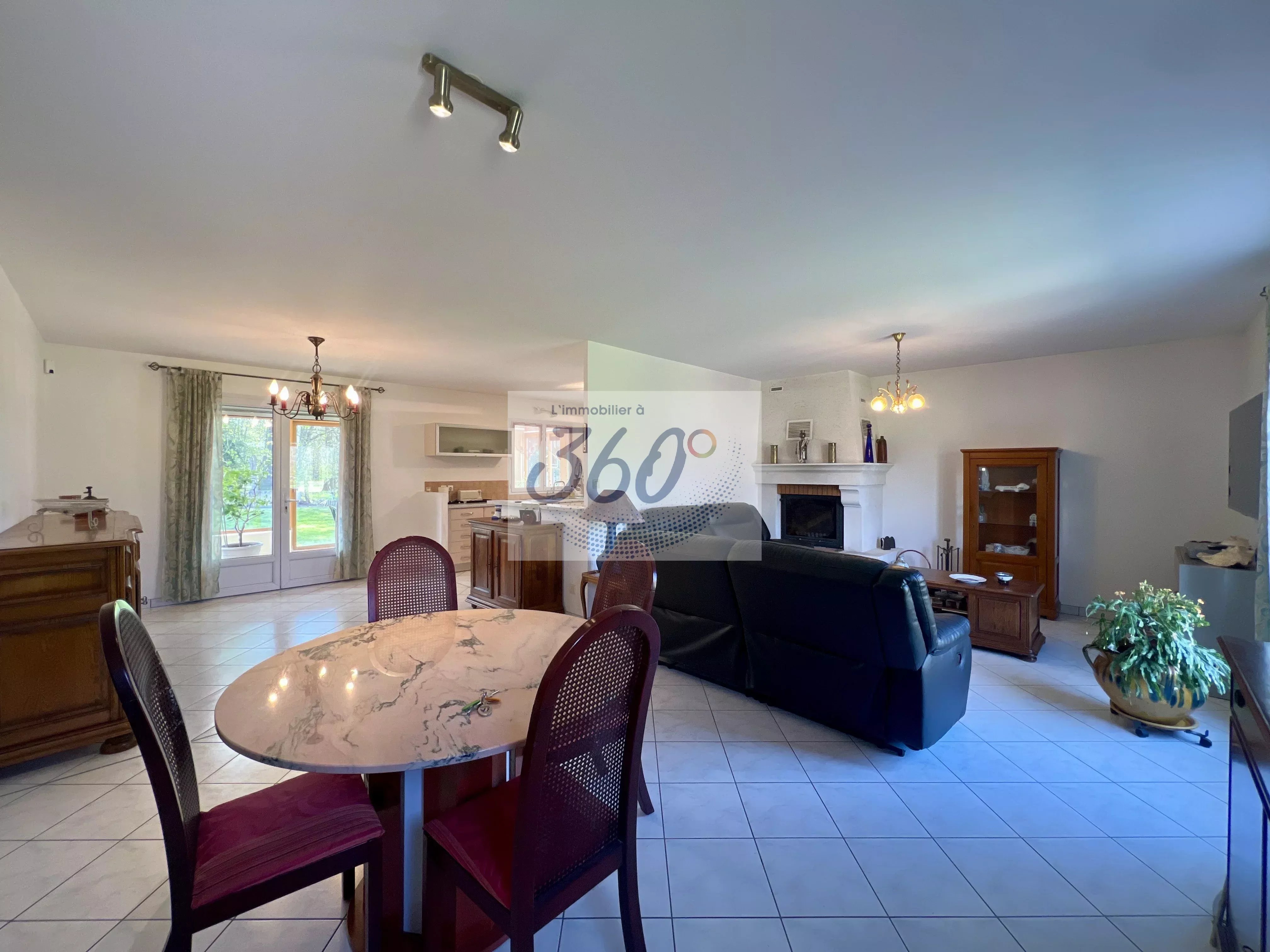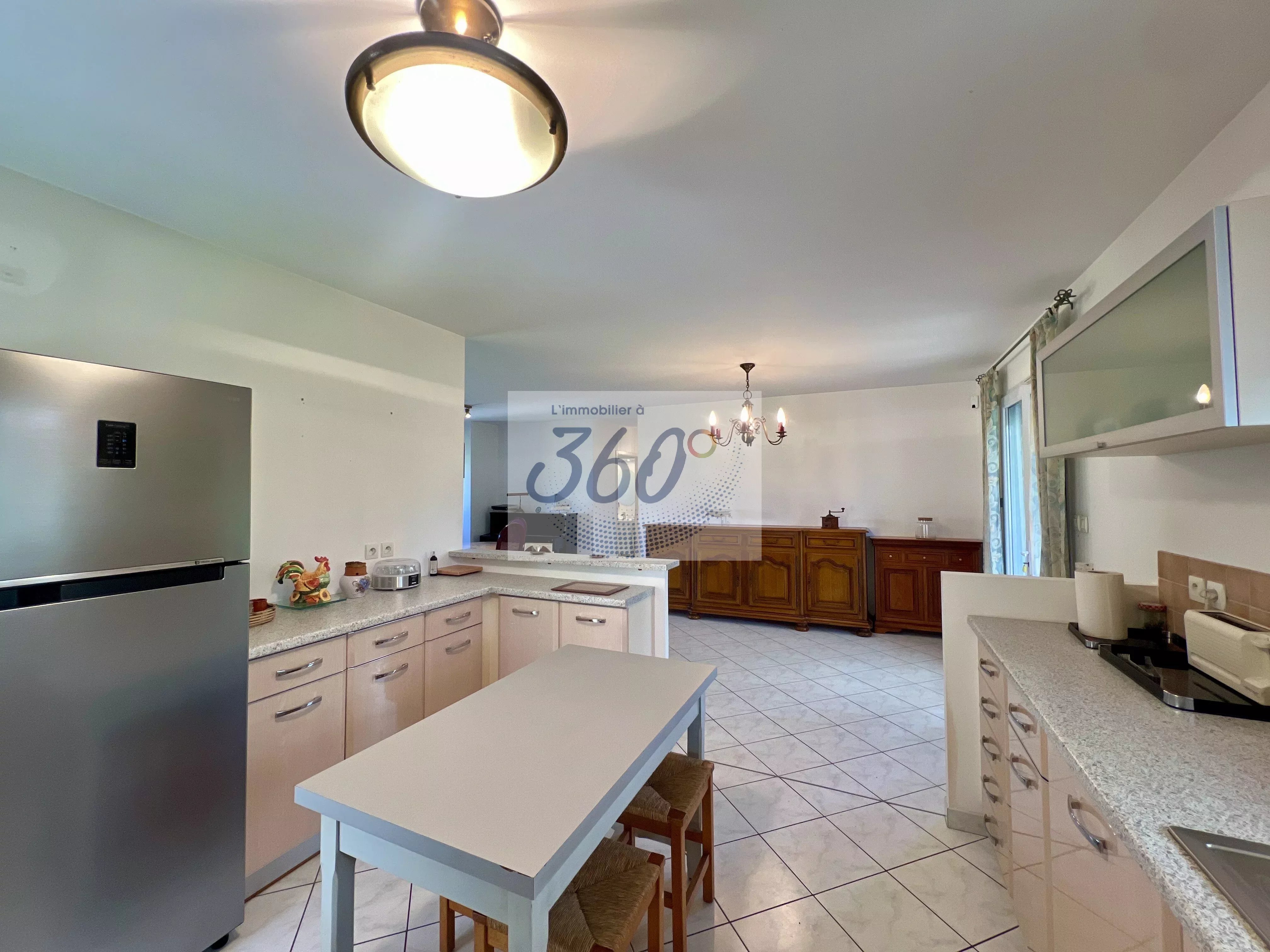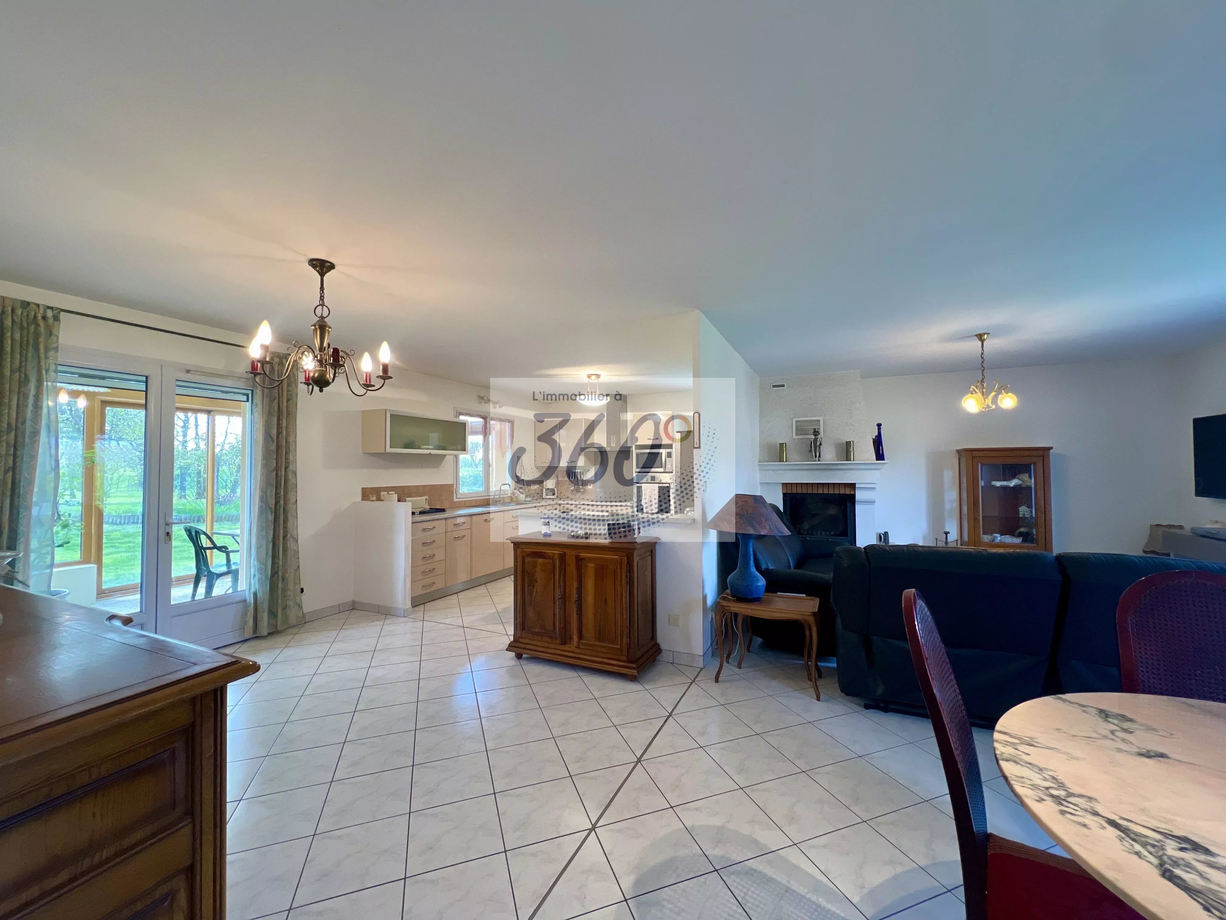 Dès l’entrée, vous découvrez une atmosphère chaleureuse portée par une belle pièce de vie semi-ouverte d’environ 55 m², réunissant cuisine équipée, espace repas et salon avec insert bois, idéale pour partager des moments conviviaux en famille ou entre amis.