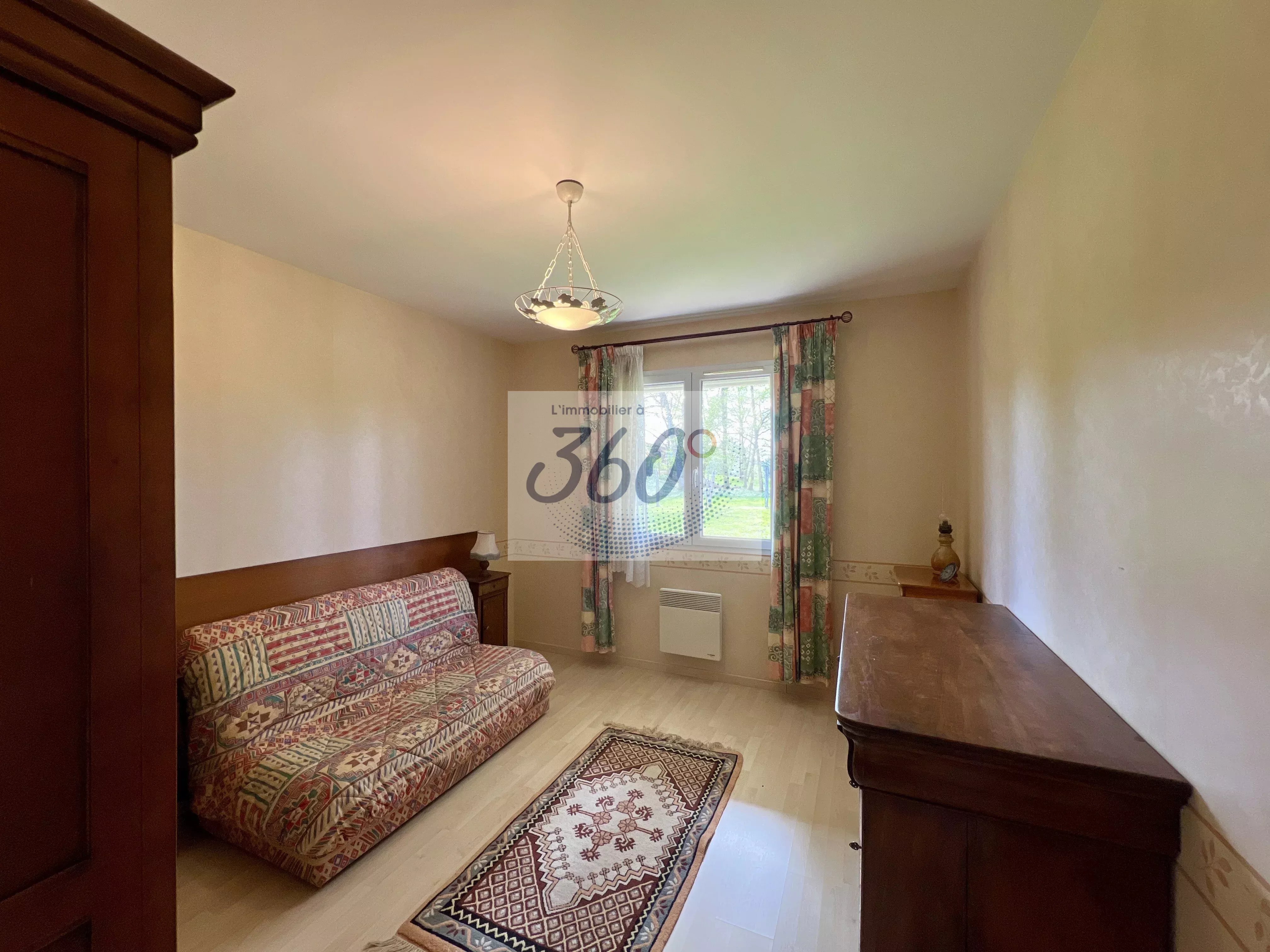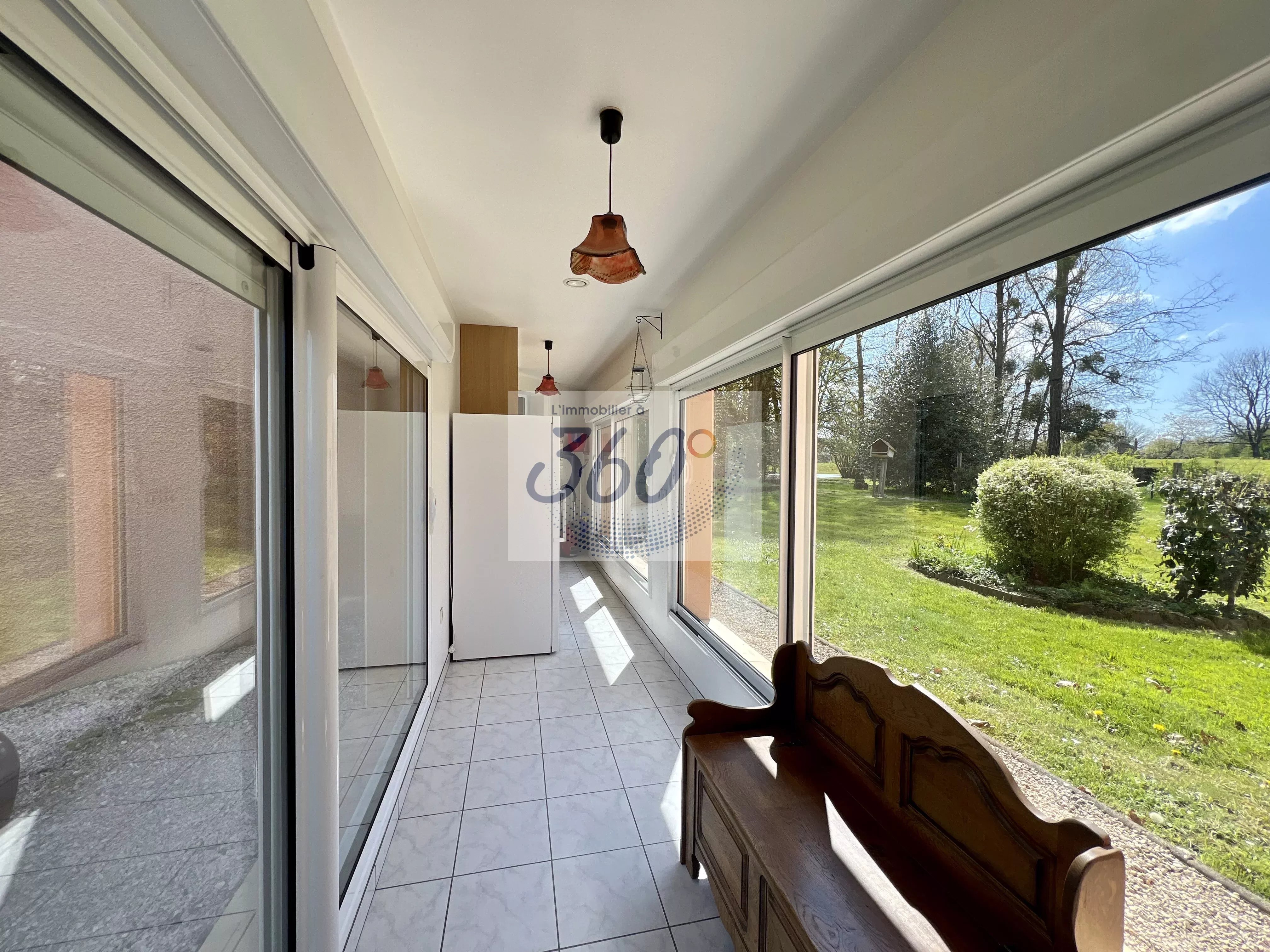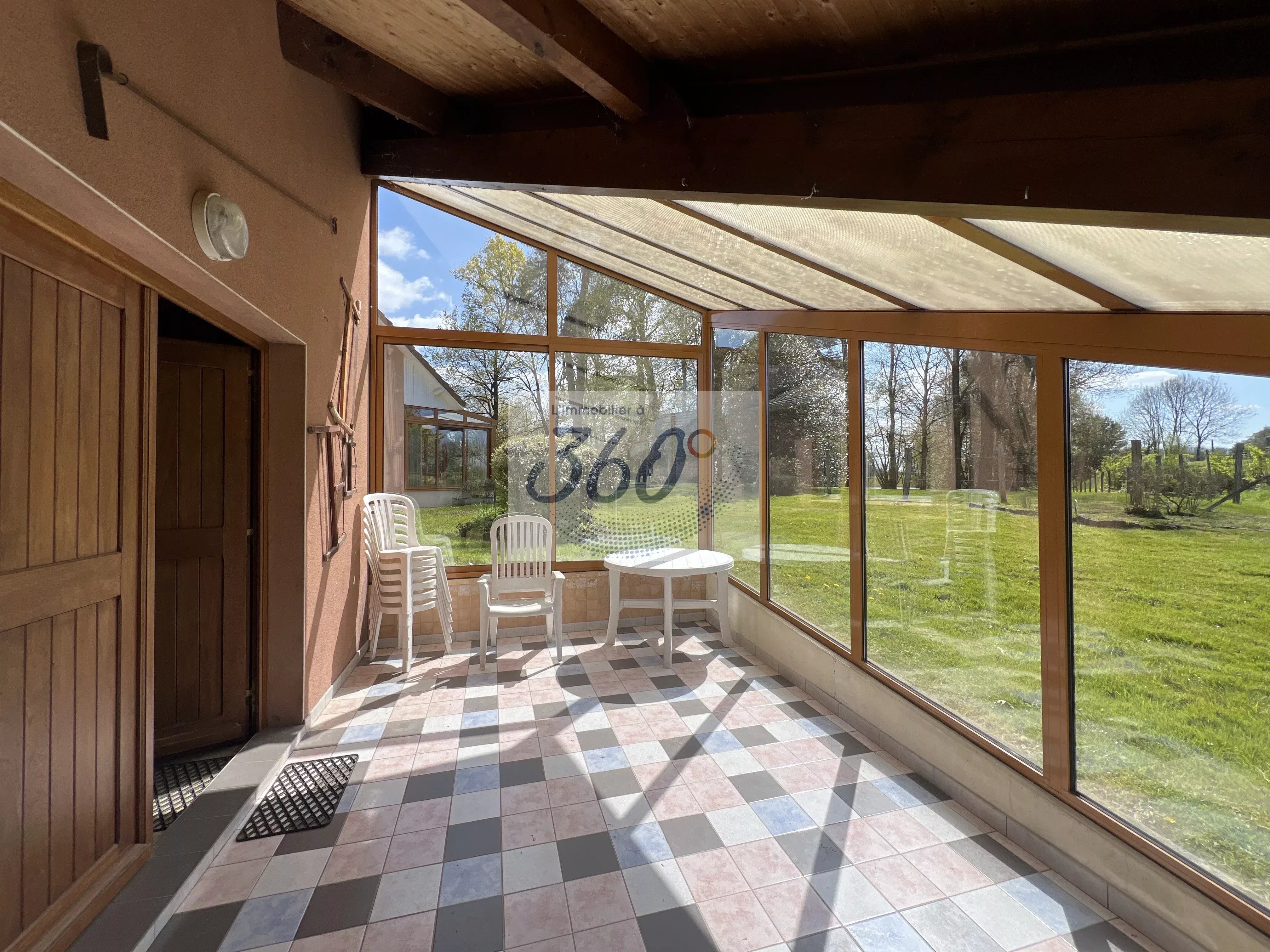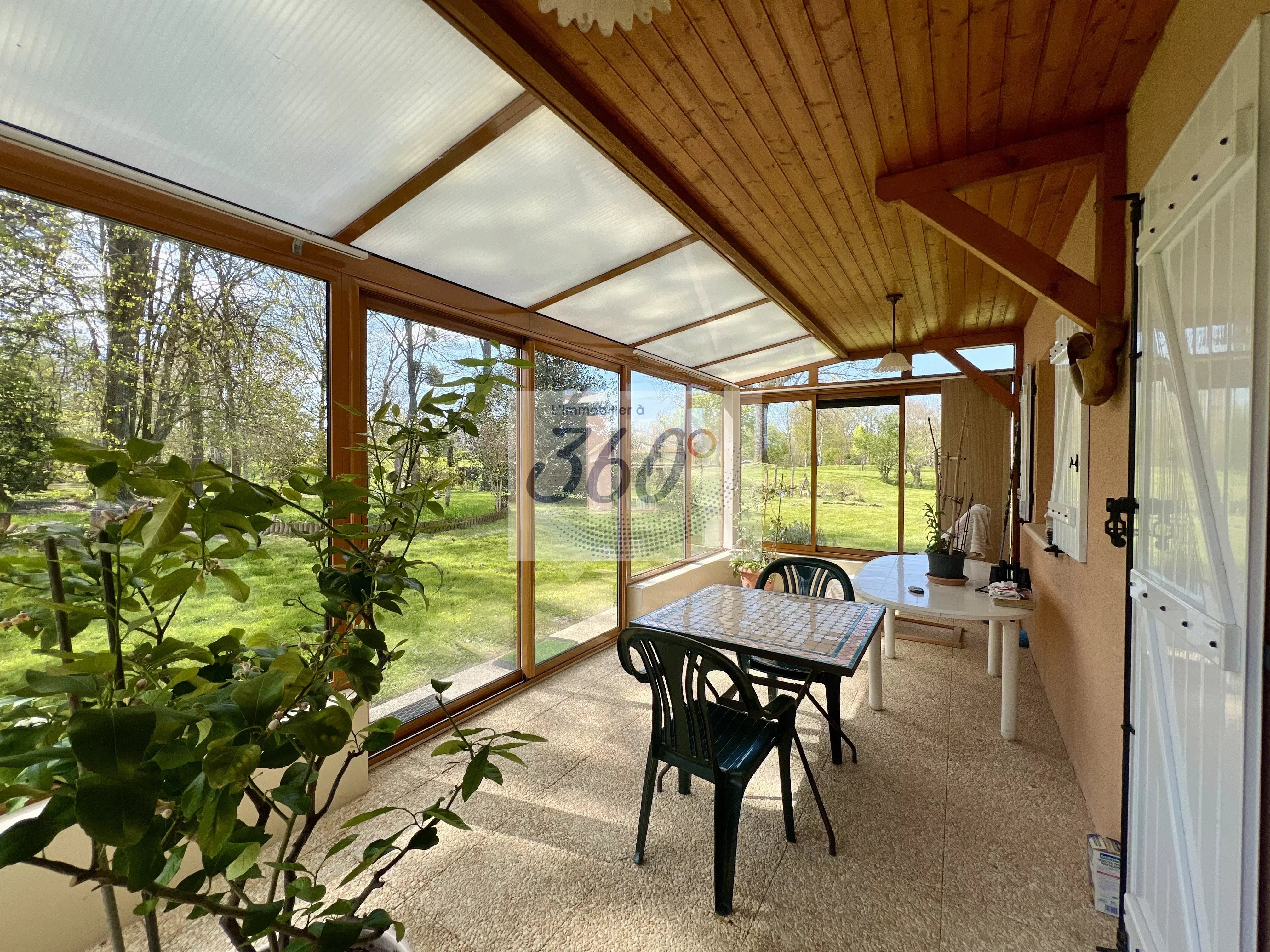 La maison se prolonge par une agréable véranda baignée de lumière, véritable pièce de vie supplémentaire, ouverte sur les bois et l’arrière du terrain, sans aucun vis-à-vis… Un cadre rare pour profiter pleinement de chaque saison.