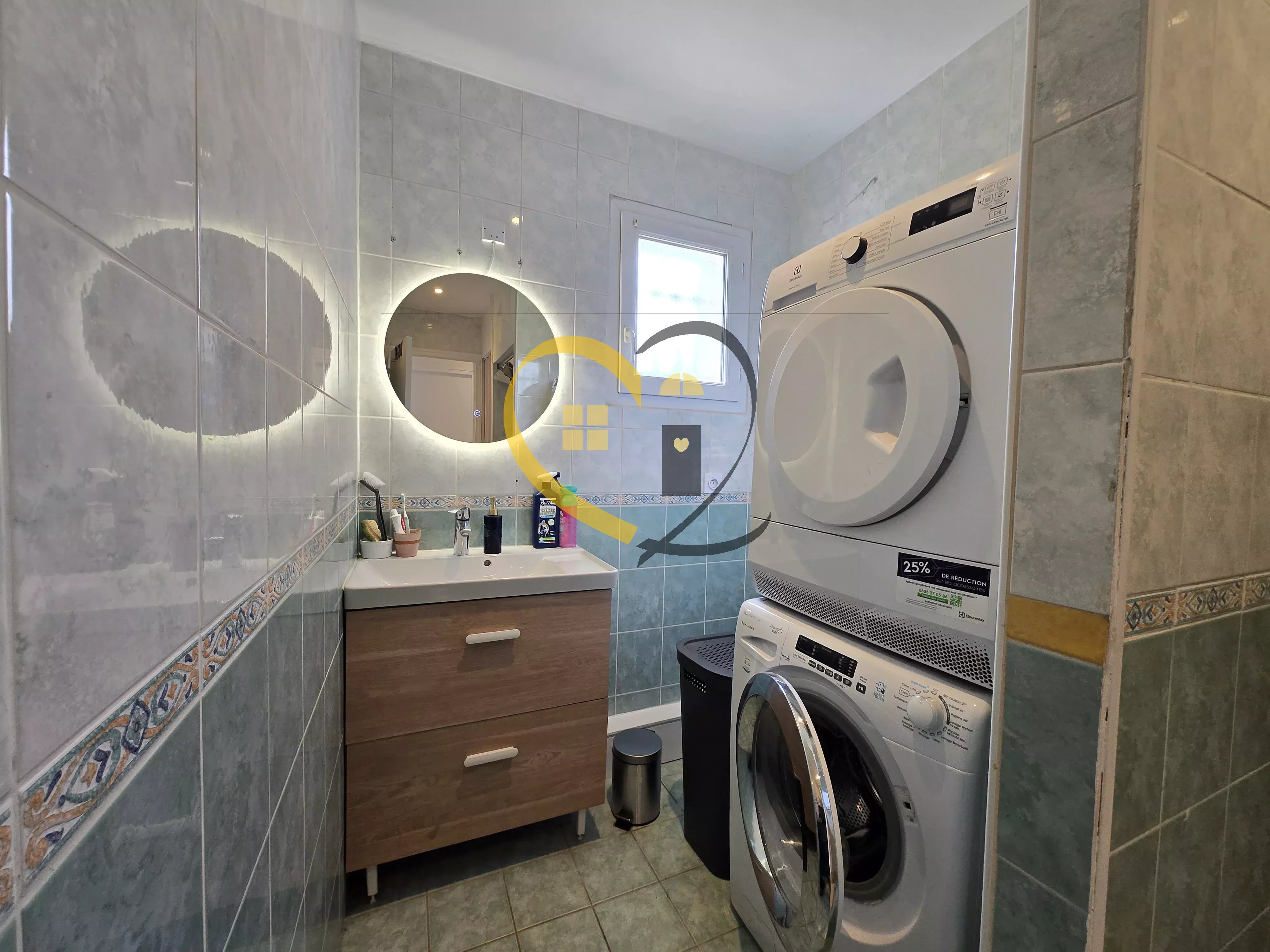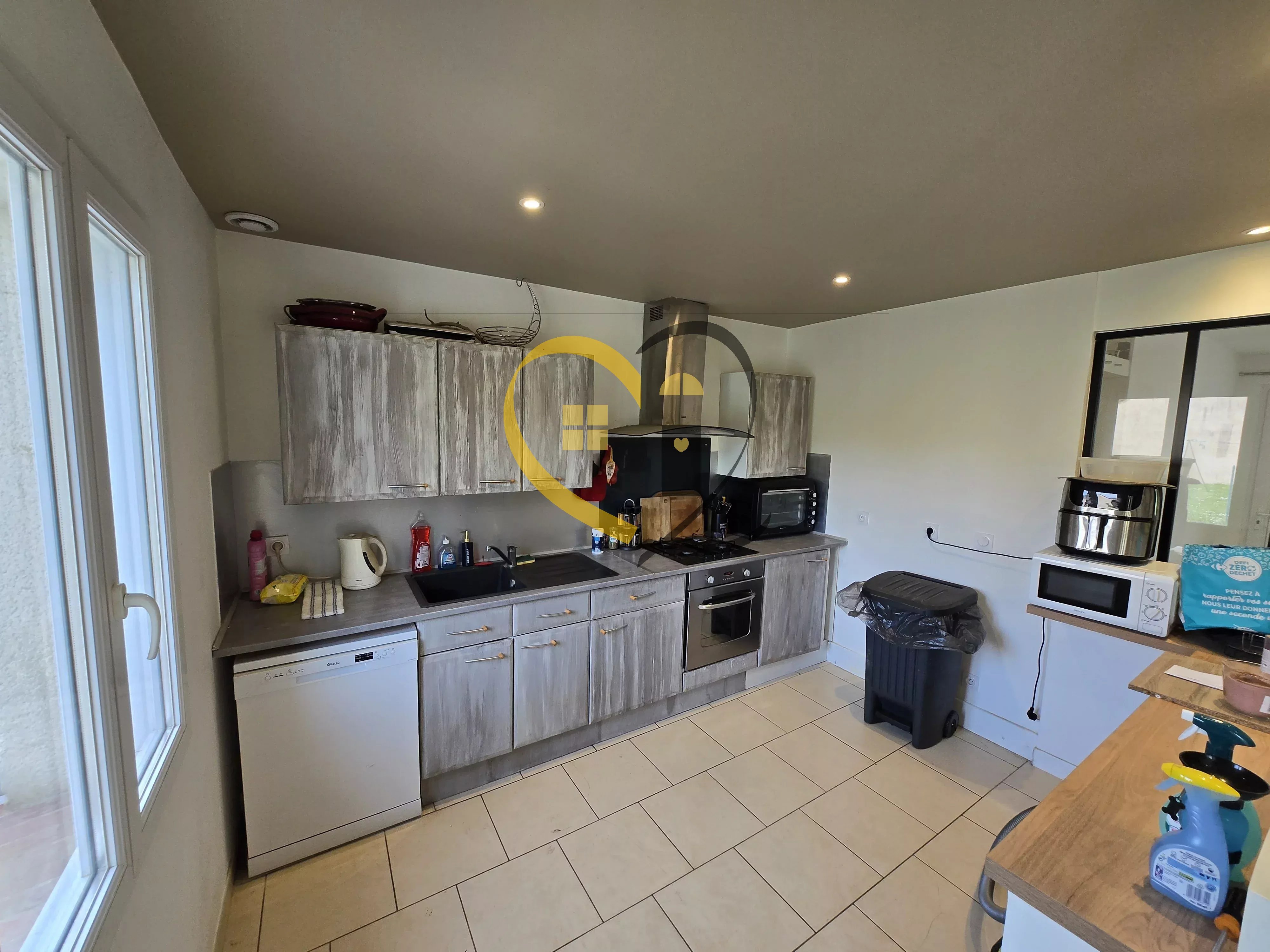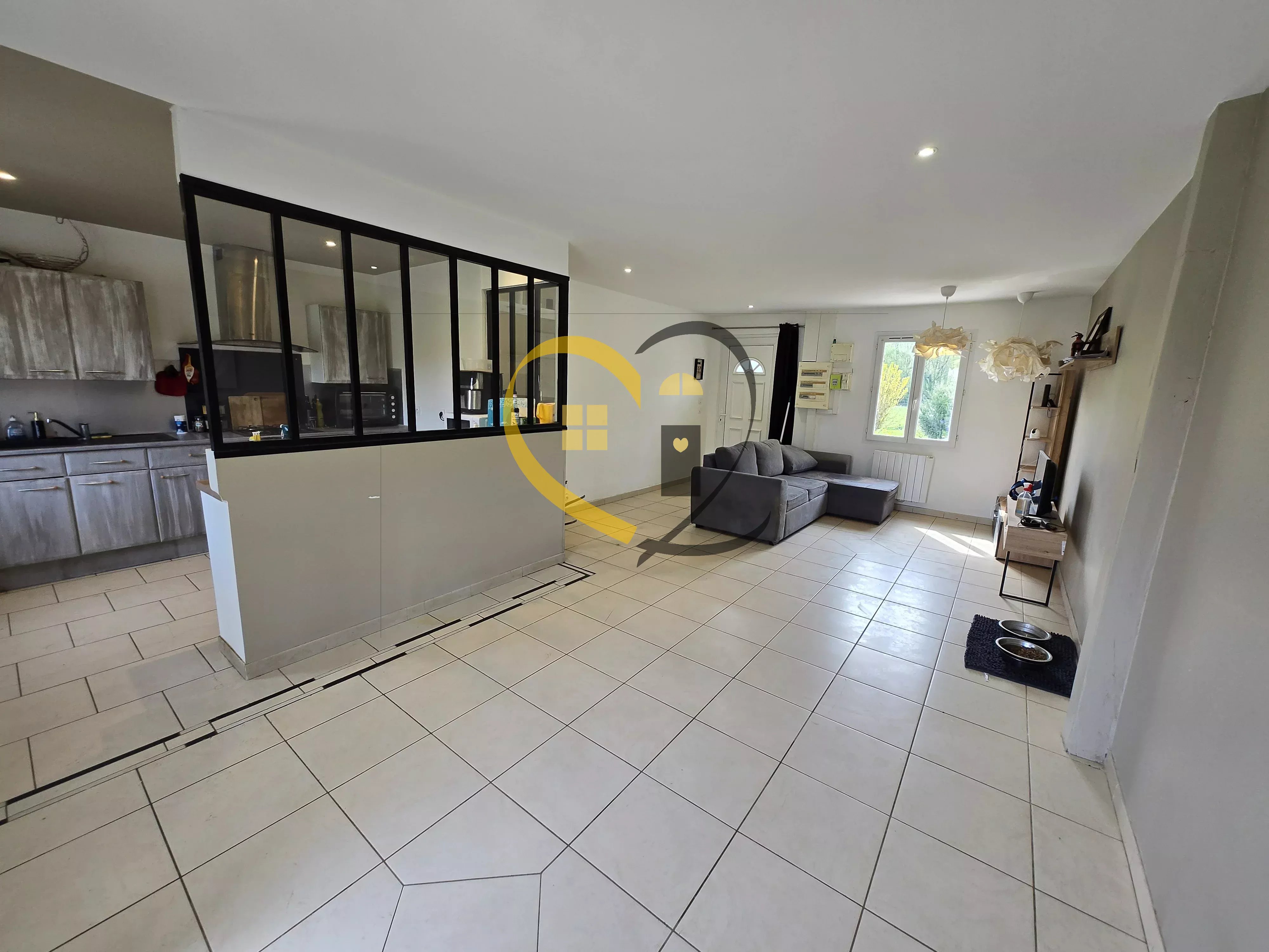L’entrée s’ouvre sur une pièce de vie lumineuse, offrant un espace convivial pour partager des moments en famille. La cuisine ouverte vient compléter cet espace de vie.