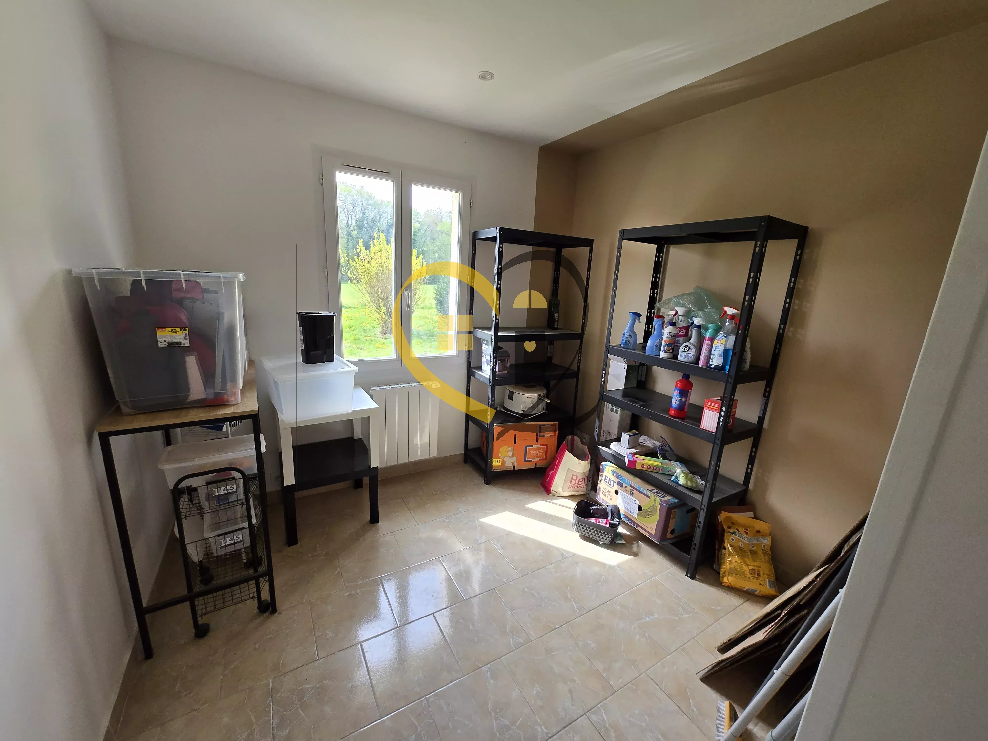 La maison bénéficie d’équipements appréciables tels que le double vitrage en PVC, une ventilation, la fibre optique et un vide sanitaire. À l’extérieur, le terrain de 1500m² est clos et dispose d’un espace barbecue, idéal pour profiter des beaux jours.