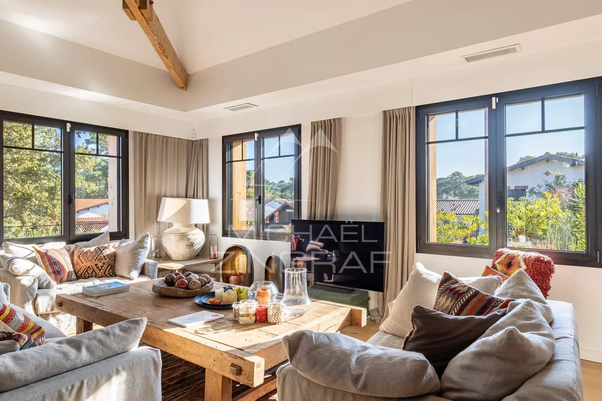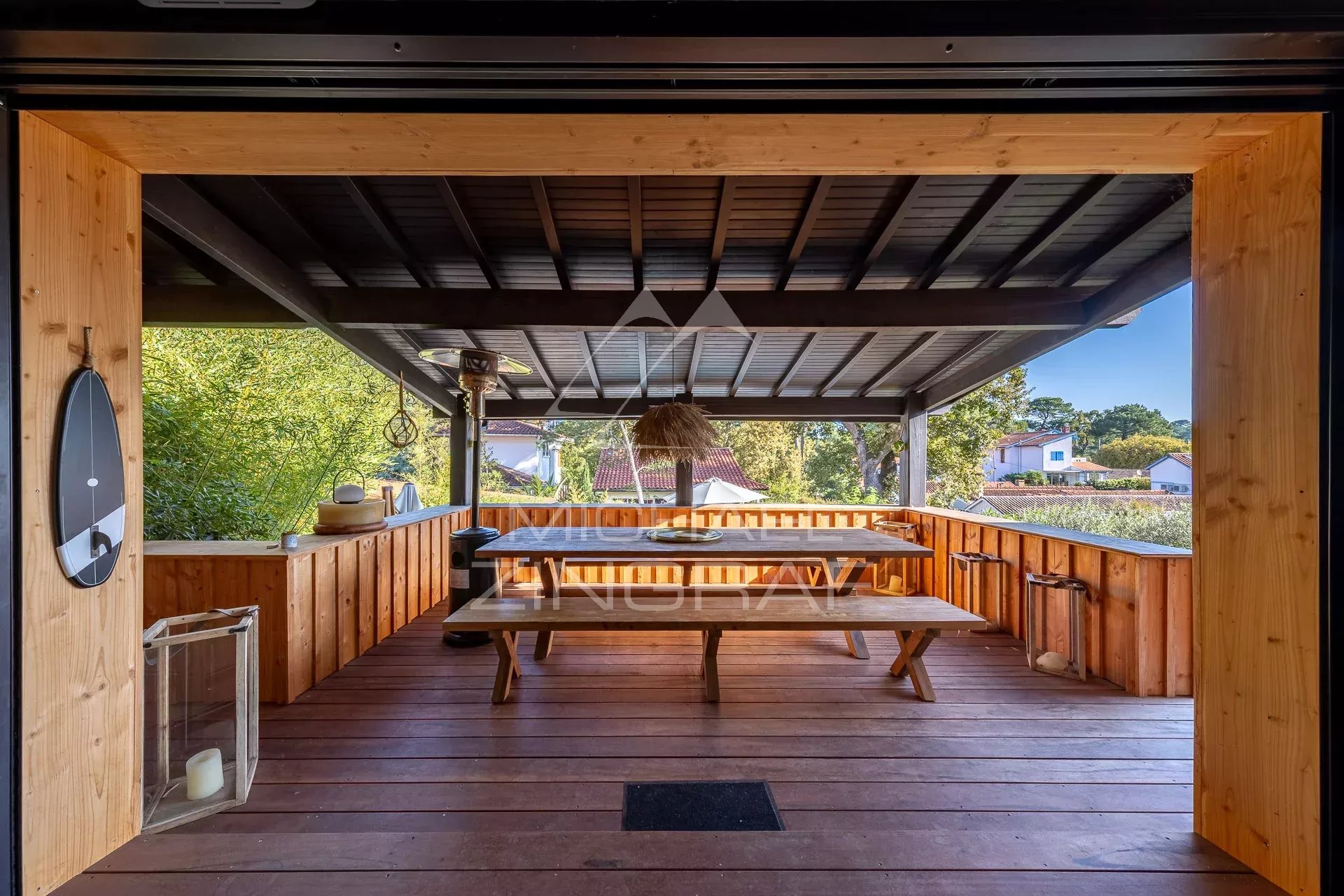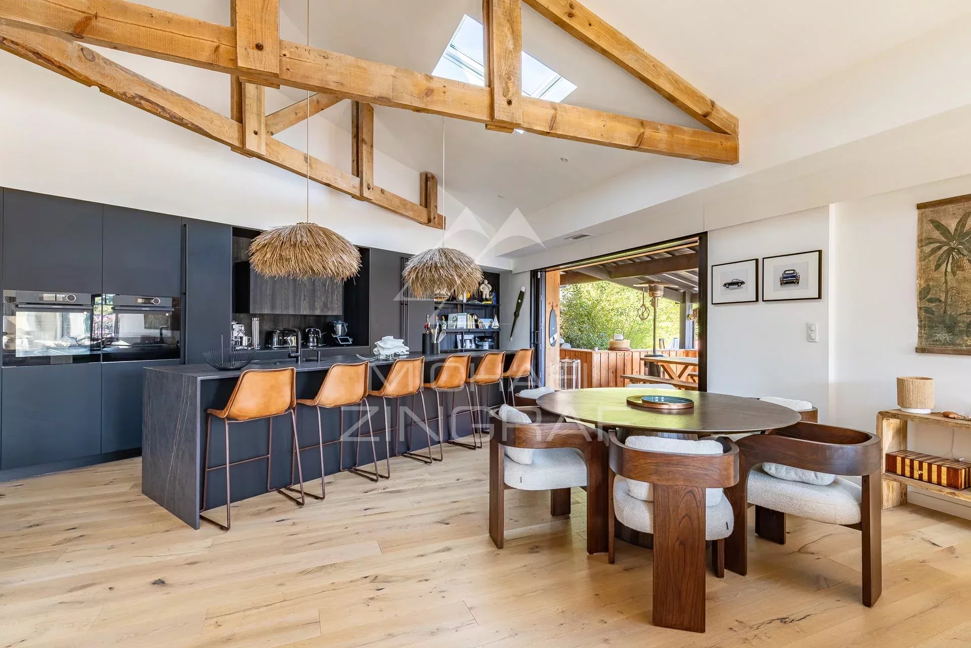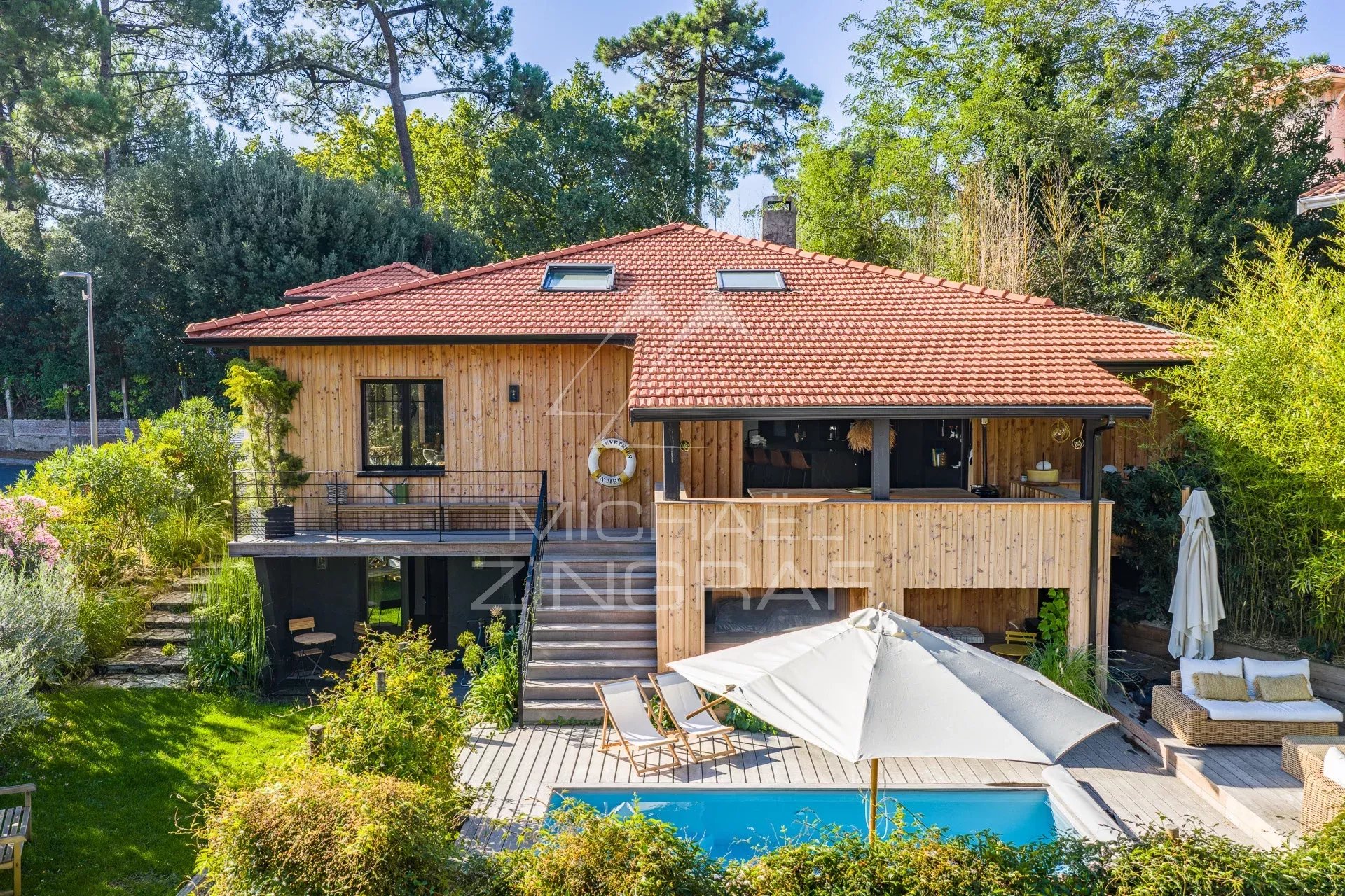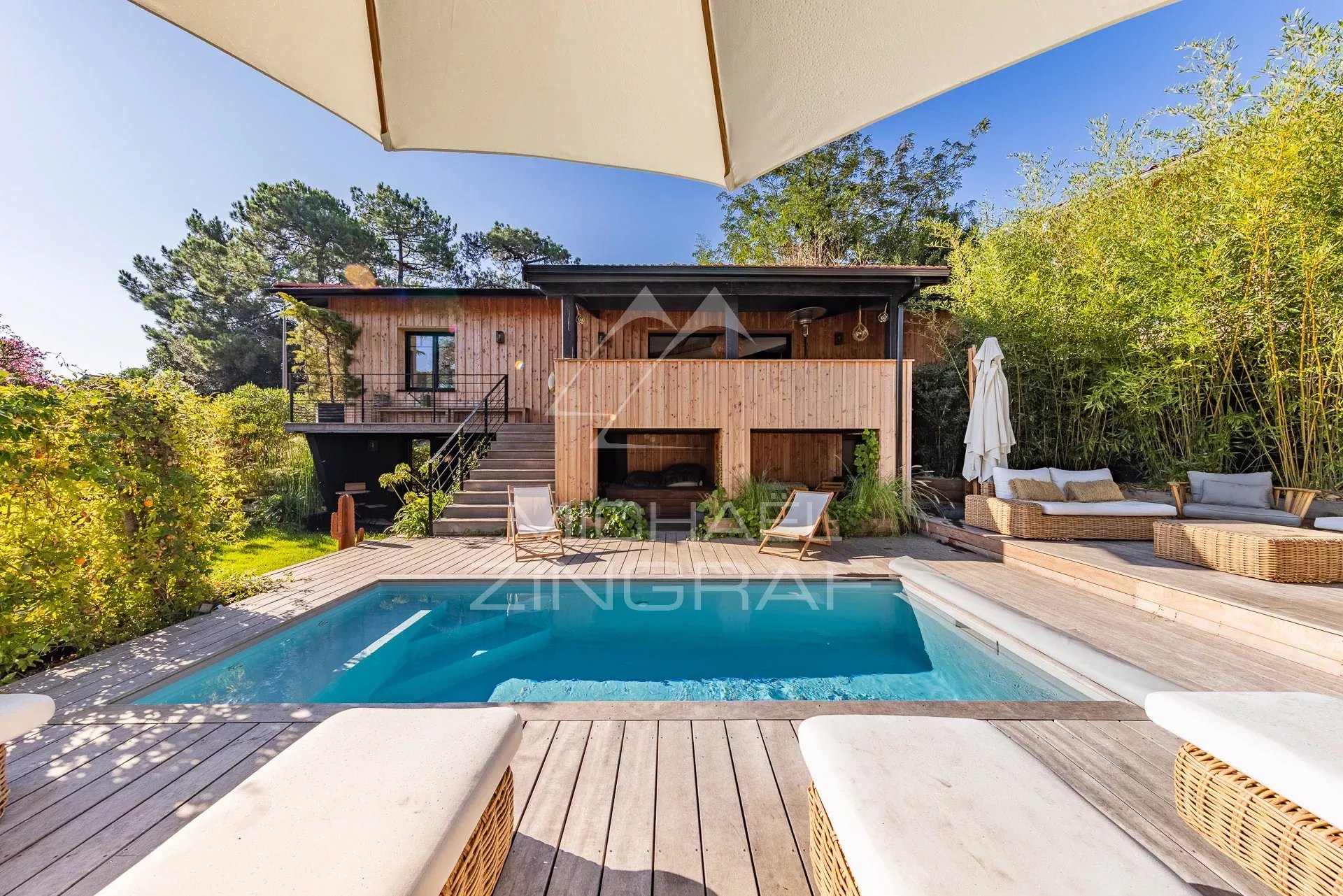 Michaël Zingraf Real Estate vous propose à la vente, au cœur du Moulleau à Pyla-sur-Mer, une villa élégante et parfaitement située. Dans un environnement calme, à seulement deux minutes à pied des commerces et de la plage, cette propriété offre un cadre de vie privilégié. La maison se distingue par sa belle distribution : Une entrée ouvrant sur une vaste pièce de vie de 65 m² avec cuisine équipée, Deux chambres et deux salles d’eau au niveau principal, Une suite parentale à l’étage, Une seconde suite en rez-de-jardin. Les extérieurs proposent une terrasse couverte, une terrasse ensoleillée avec piscine et un jardin paysager. Un garage double complète cet ensemble. Un bien rare dans l’un des quartiers les plus recherchés du Bassin d’Arcachon.