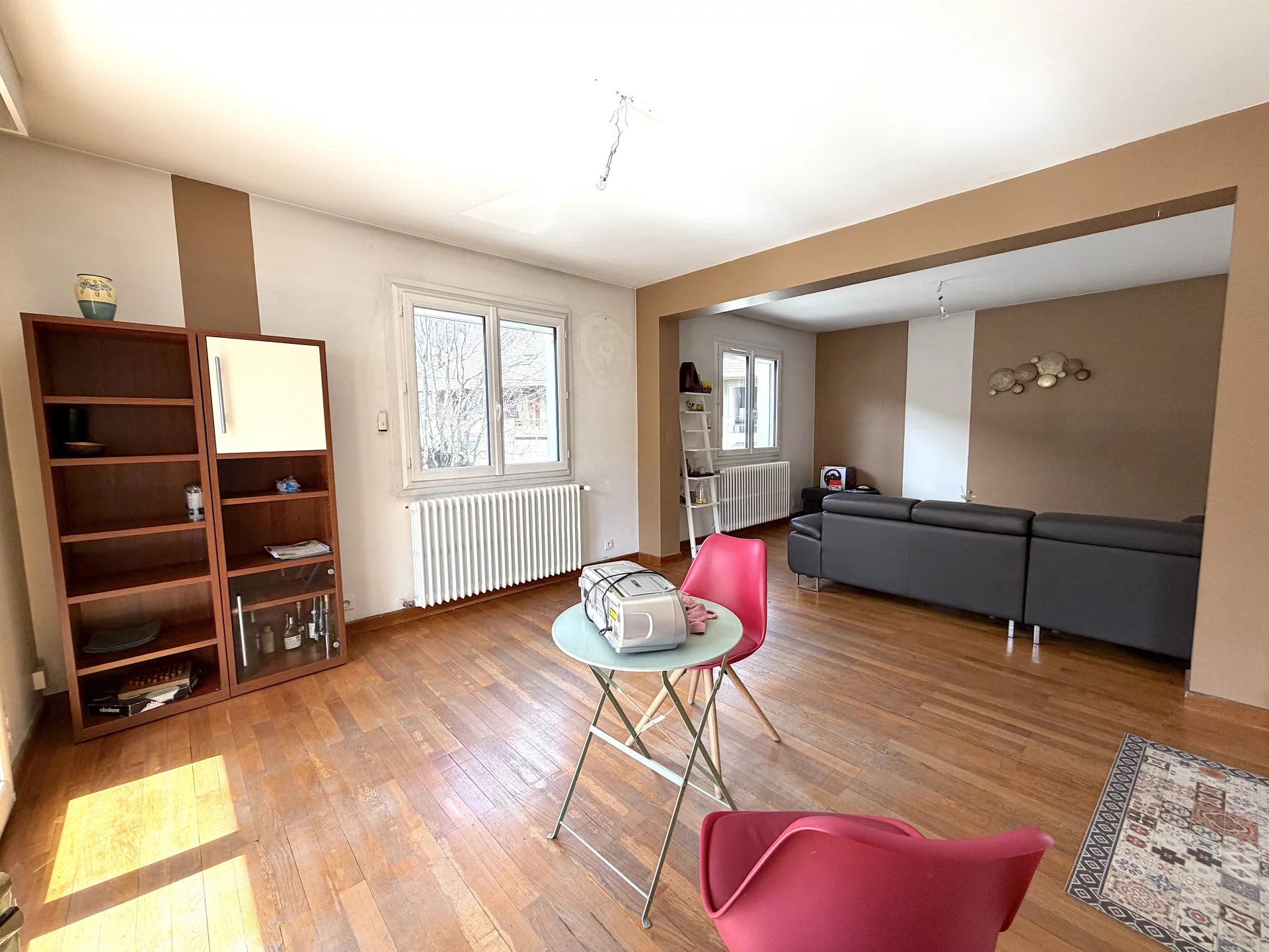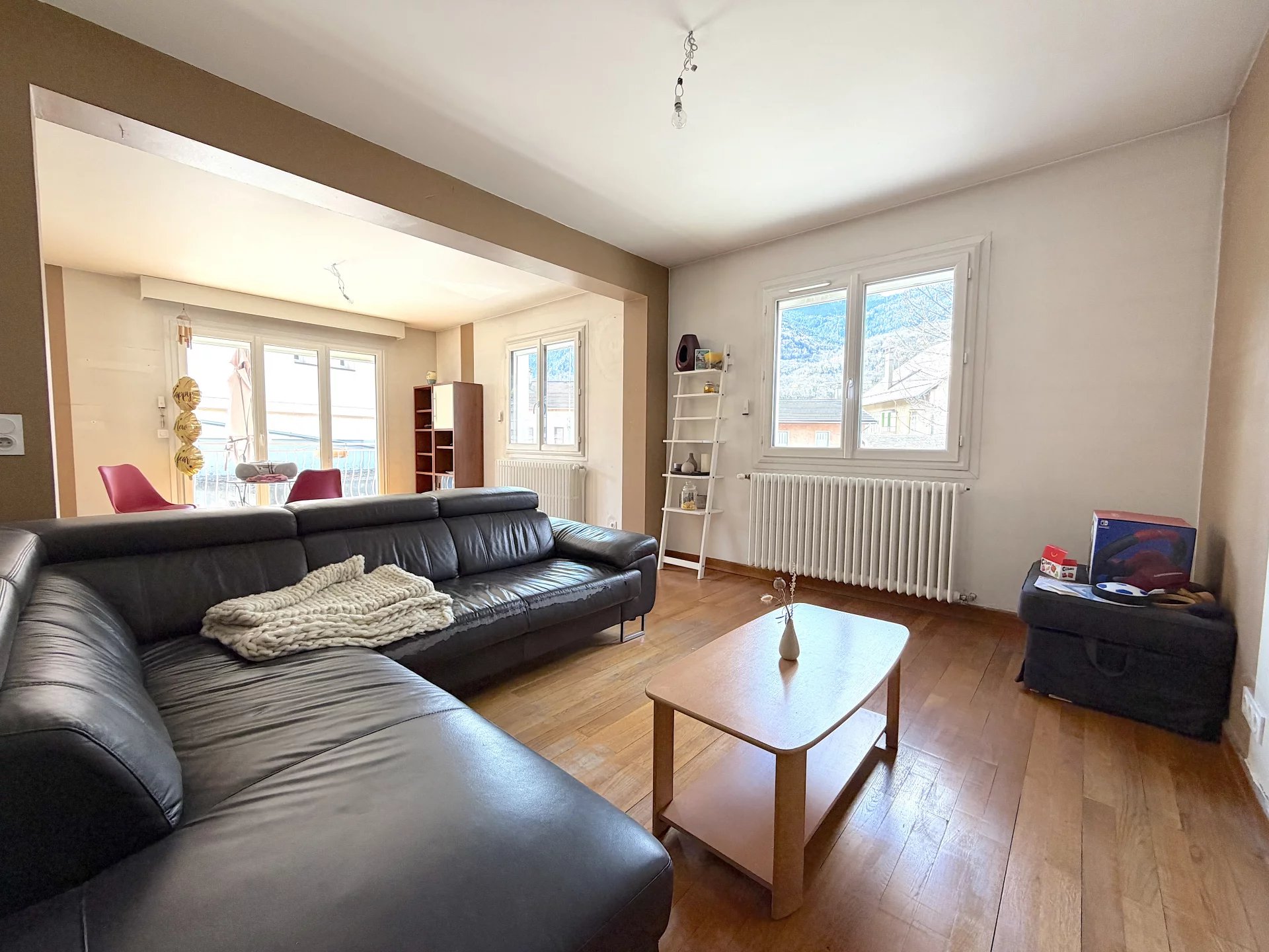Située à deux pas du centre-ville de Saint Michel de Maurienne, Grande maison individuelle bien entretenue sur trois niveaux composés comme suit : - Niveau -1 : Sous-sol complet à usage de caves et chaufferie - Niveau 0 : Un appartement T3 (2 chambres) avec balcon et un garage. - Niveau 1 : Un appartement T4 (3 chambres) avec balcon. - Niveau 2 : Combles non aménageables La maison dispose d'un terrain clos et d'une cour permettant de stationner plusieurs véhicules. Menuiseries récentes Volets roulants récents Chaudière à granulés récente